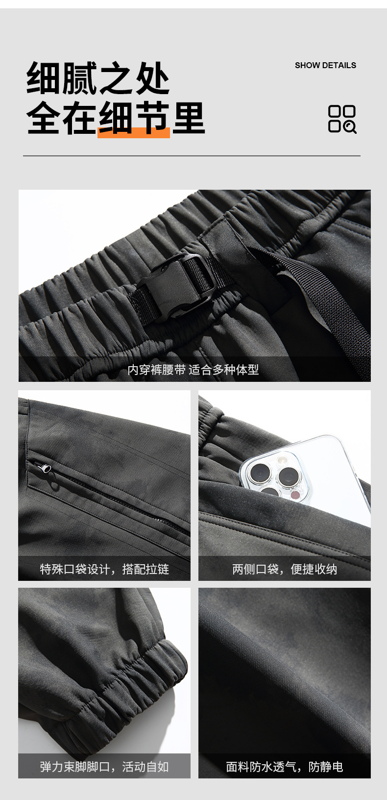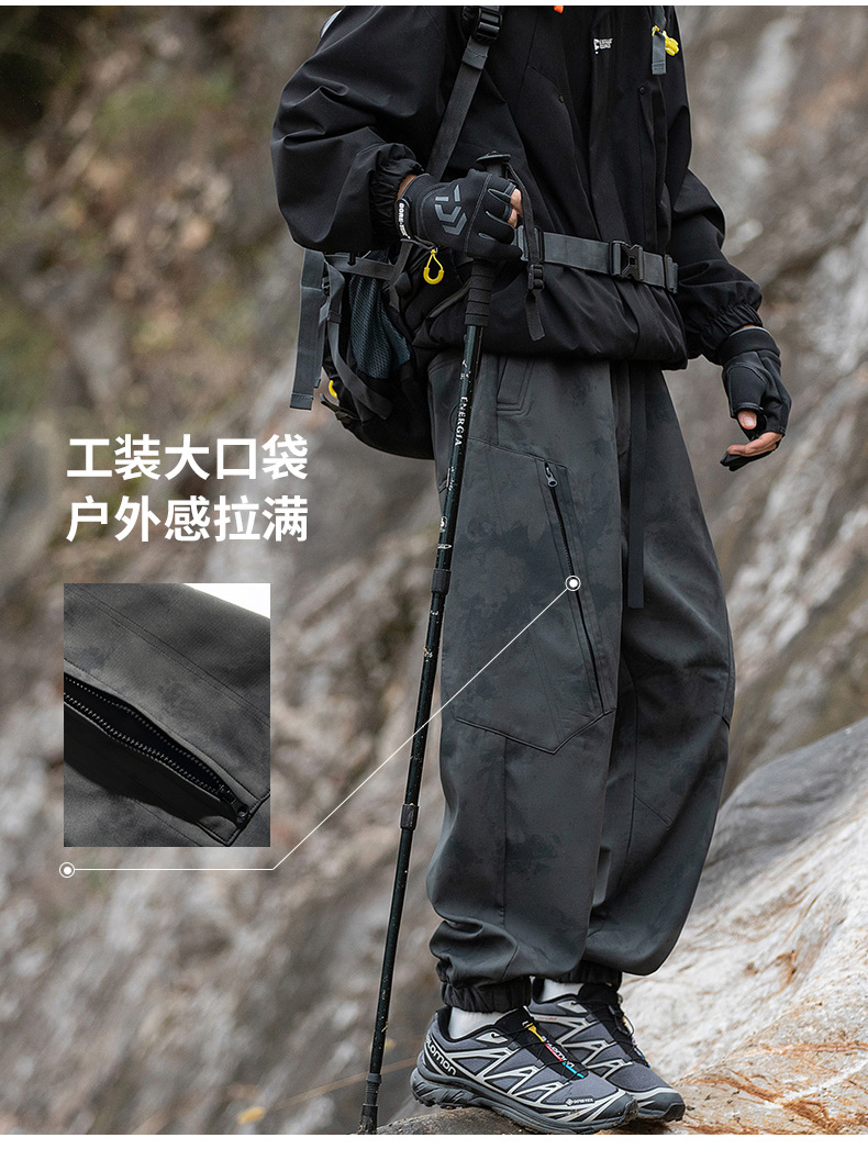 IZEXX 트렌디 브랜드 여름 아웃도어 삼중 방수 등산 바지 남성용 산악 스타일 루즈핏 하이킹 바지 작업복 스타일 캐주얼 롱 팬츠