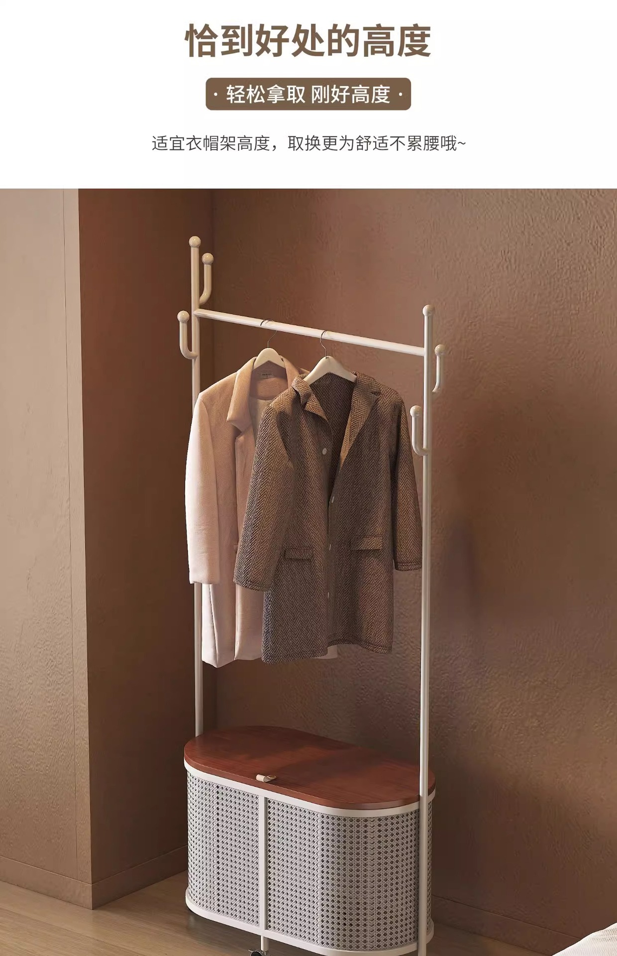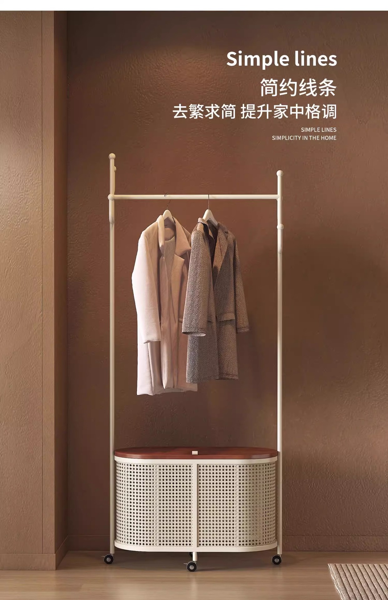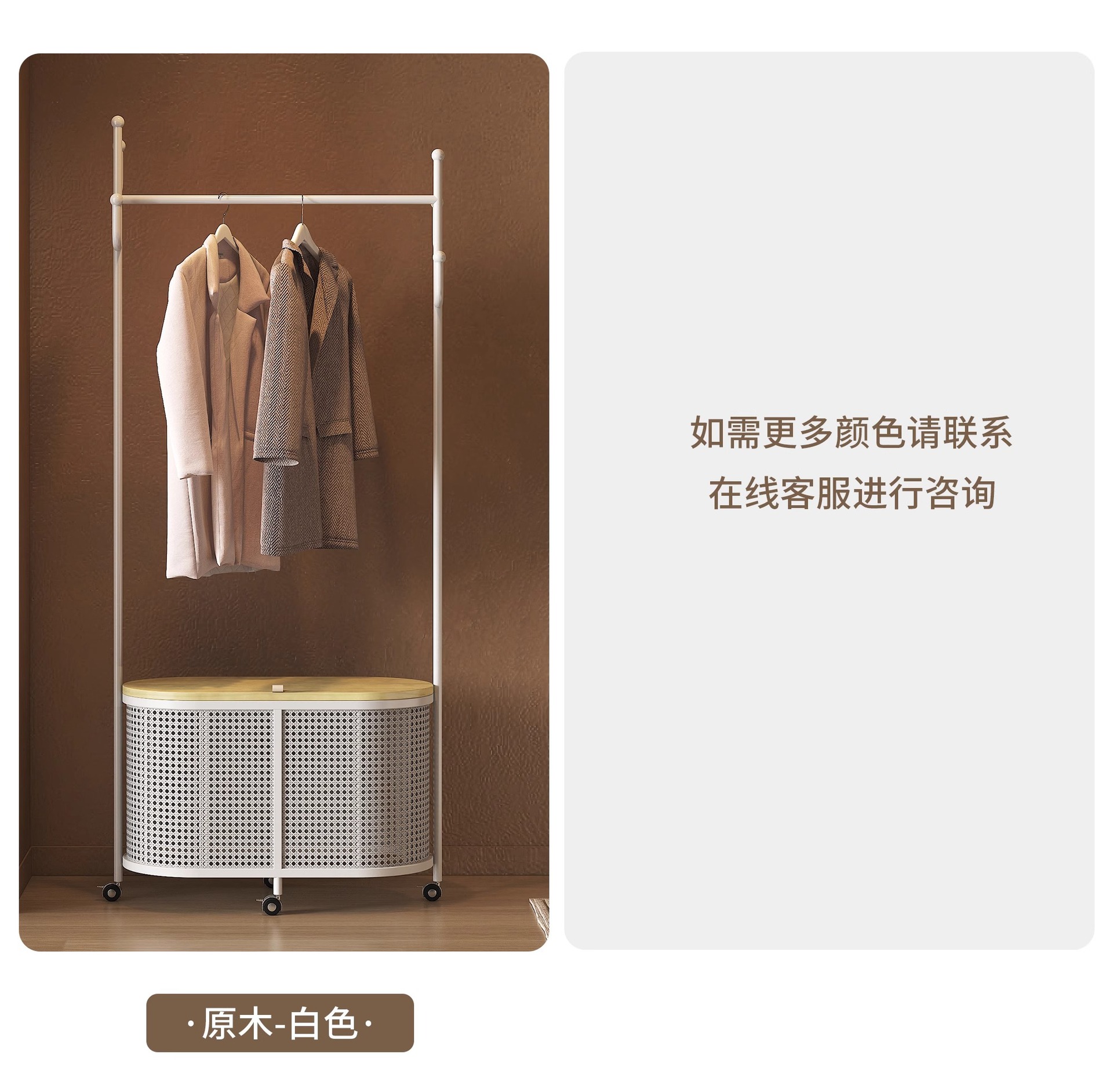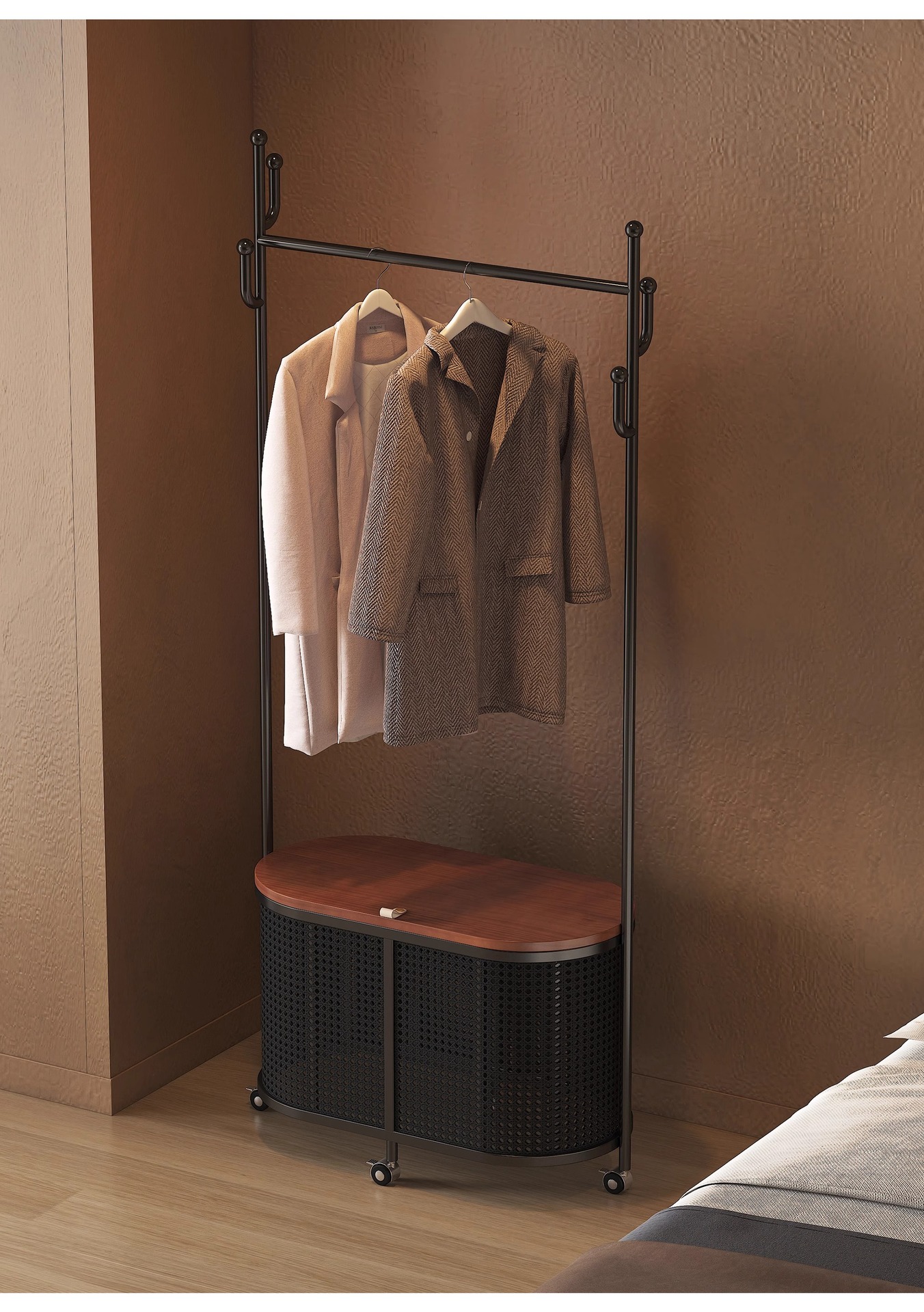 코트 랙 크림 바닥 침실 간단한 프랑스 스타일 모바일 등나무 옷 바구니 옷걸이 가정용 보관 걸이스토어 가기