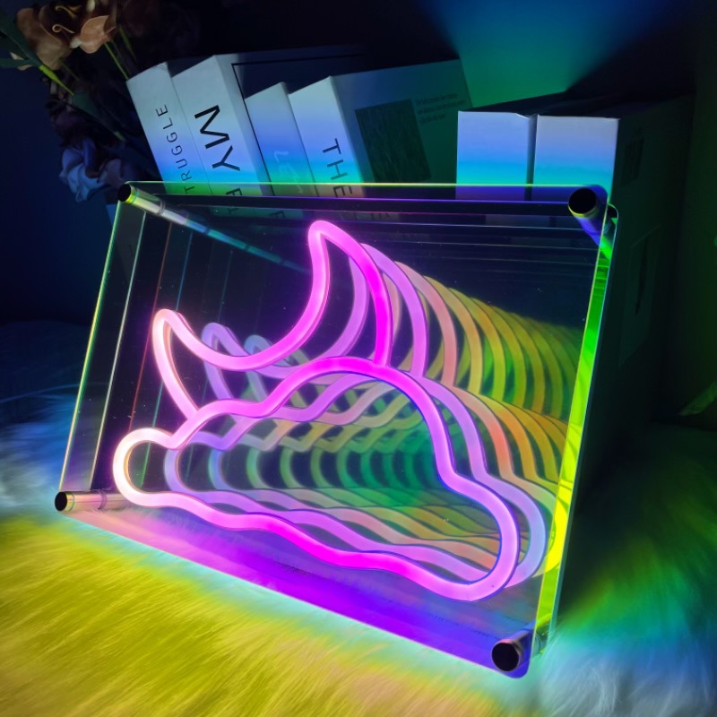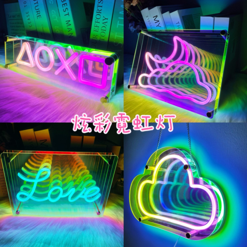 국경 간 새로운 마술 라자냐 거울 분위기 빛 밤 빛 게임 아이콘 심연 거울 데스크탑 창조적 인 네온 카드스토어 가기
