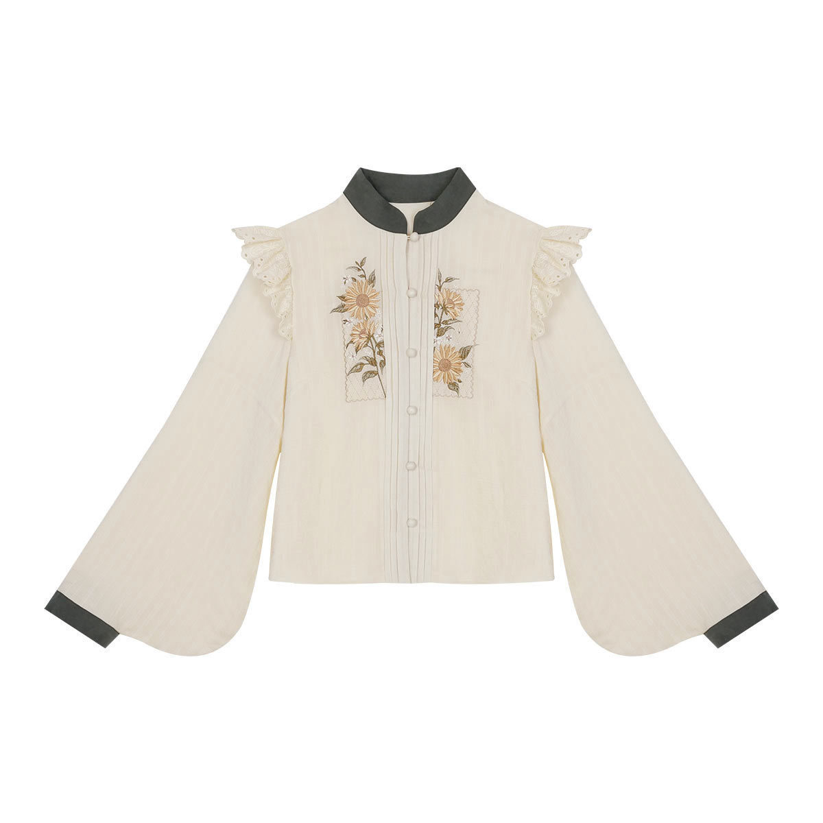 한푸 여성의 중국 스타일 개선 된 일일 중국 요소 두 조각 세트 세트 8469 에 대한 독창적 인 디자인 해바라기