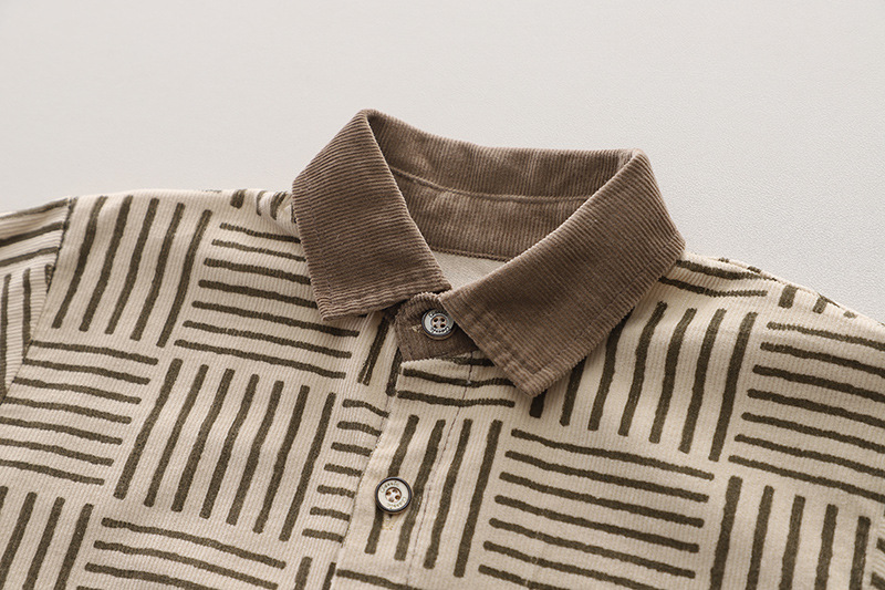 소년의 봄 세트 2024 새로운 스타일 아기 셔츠 벨벳 재킷 아기의 봄과 가을 잘 생긴 3 피스 세트