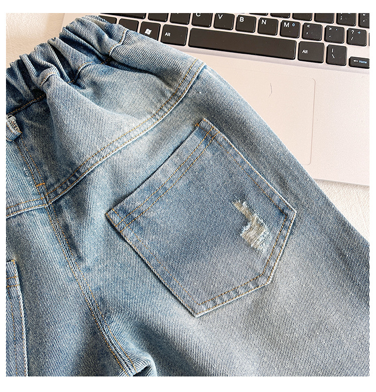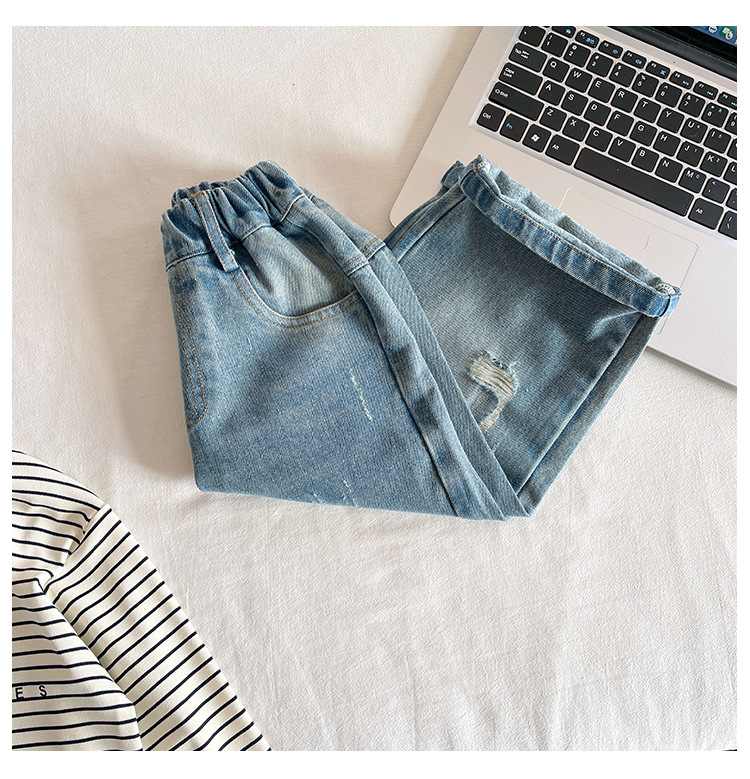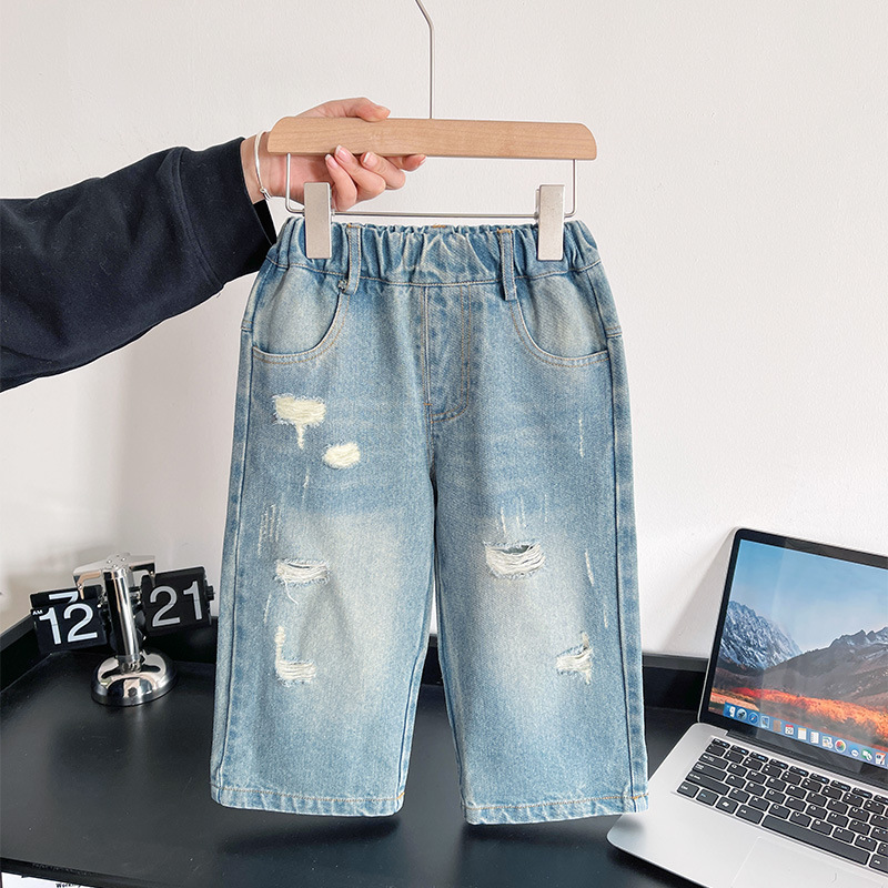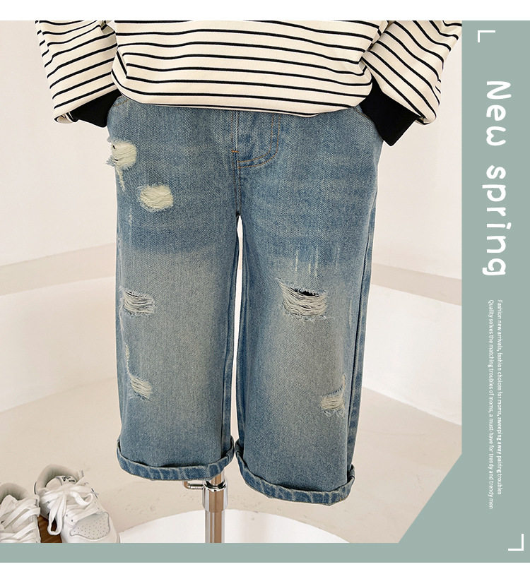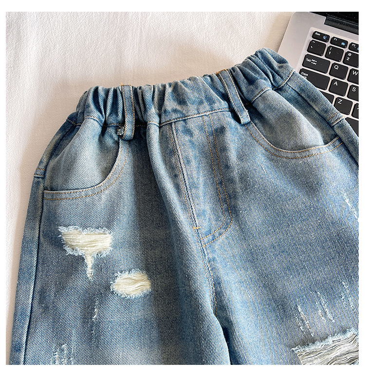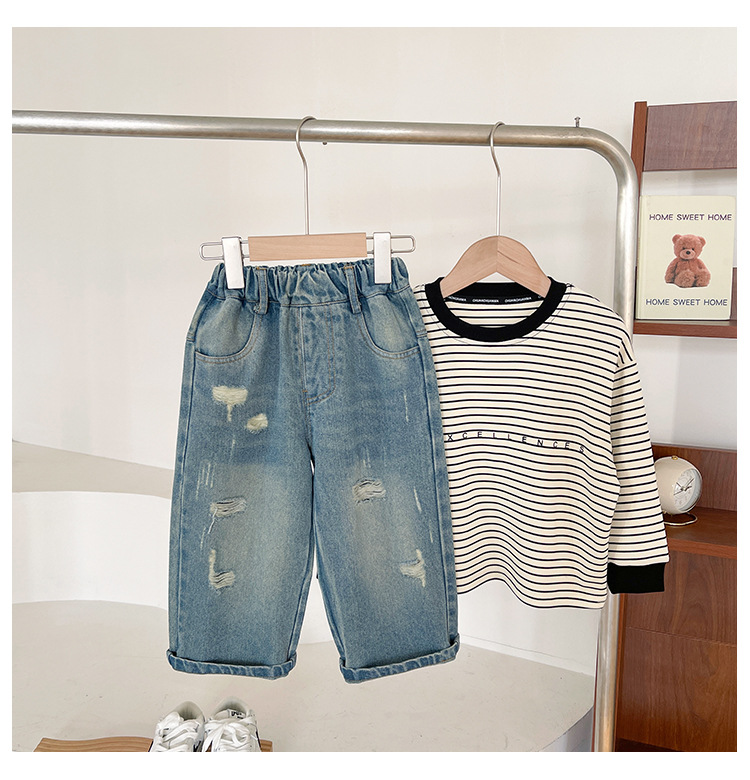 윈드 밸리 2024 가을 새 어린이 바지 한국 찢어진 청바지 소년 소녀를위한 트렌디 레트로 스트레이트 바지