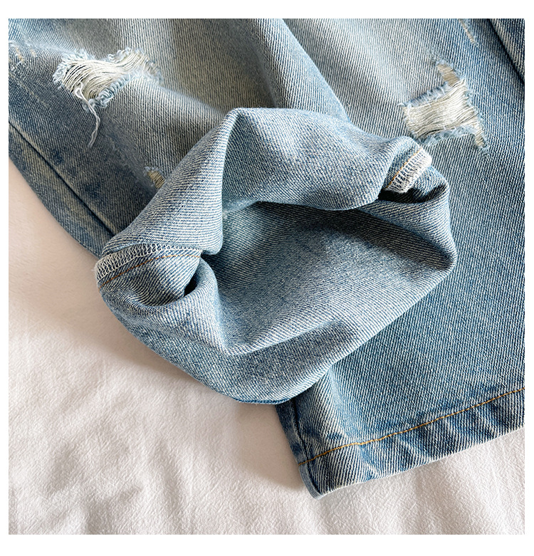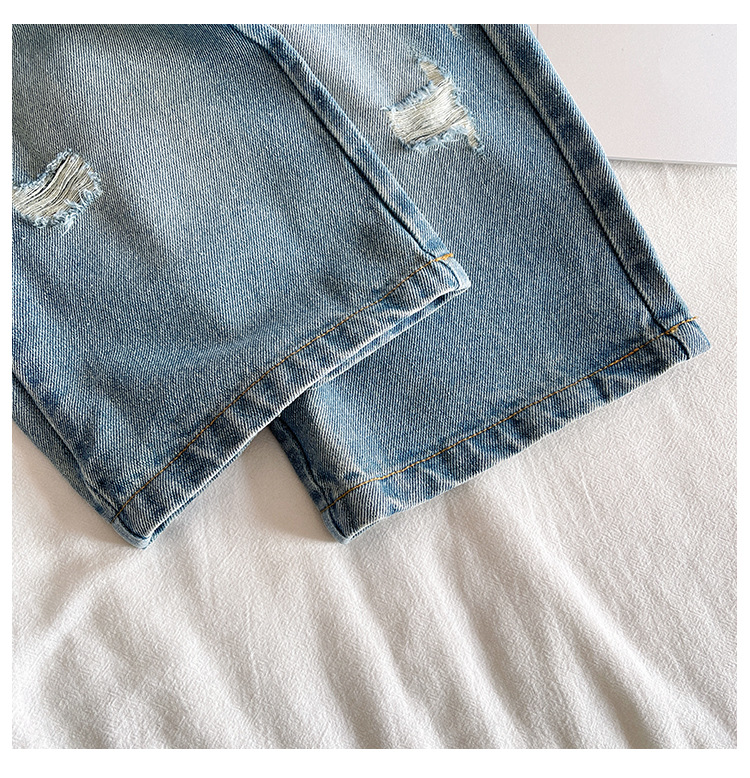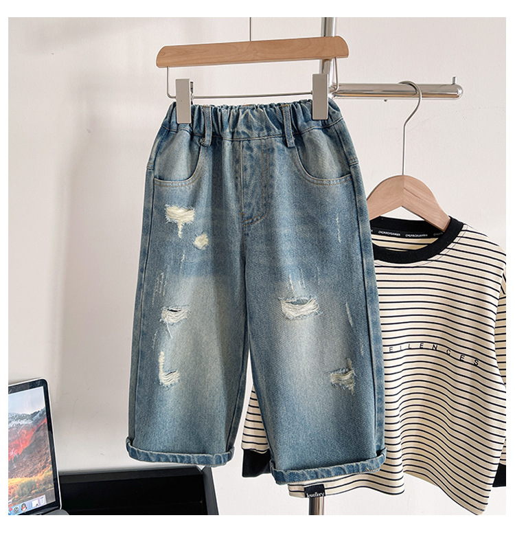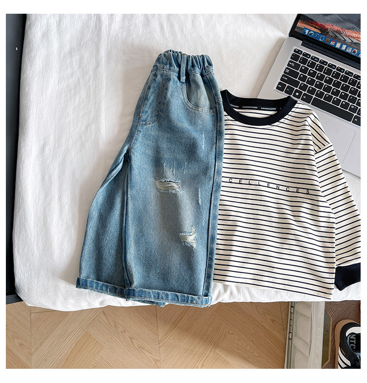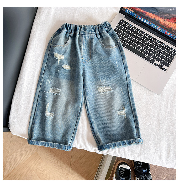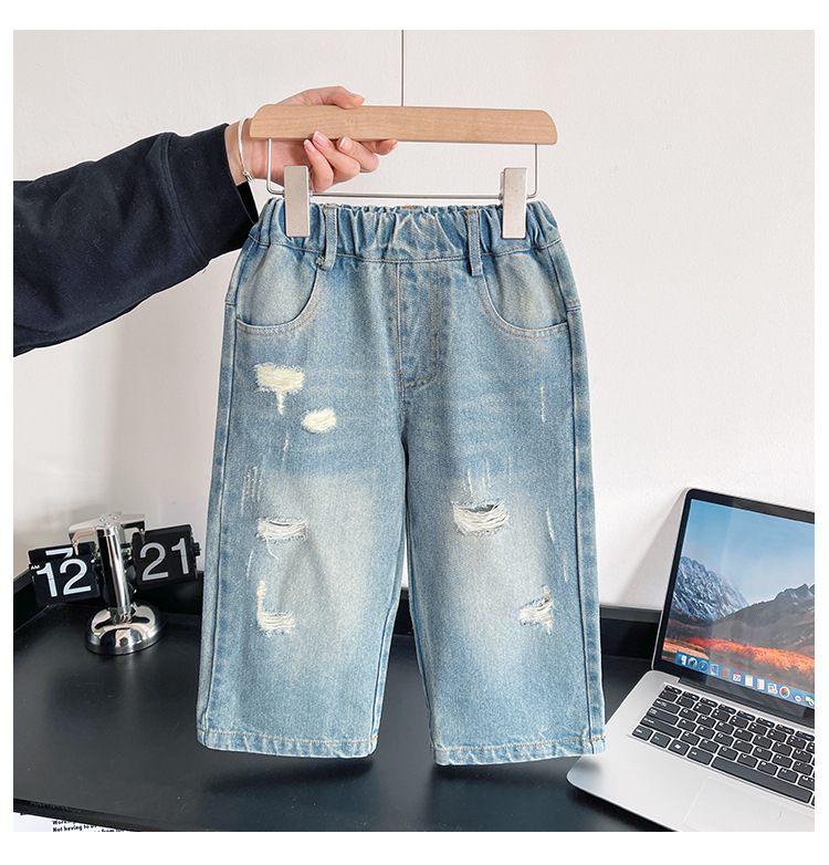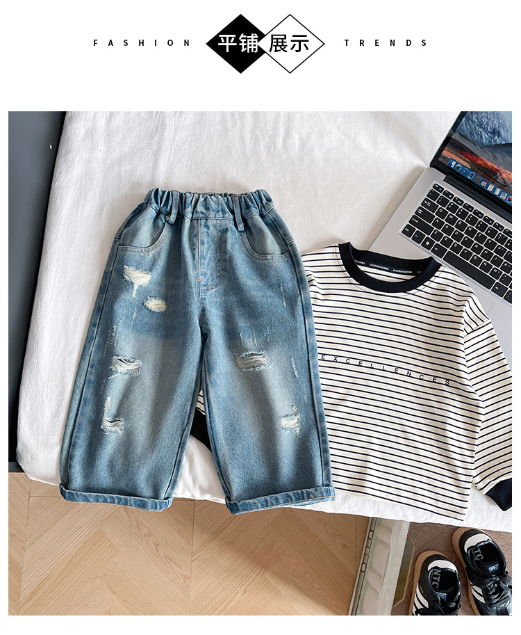 윈드 밸리 2024 가을 새 어린이 바지 한국 찢어진 청바지 소년 소녀를위한 트렌디 레트로 스트레이트 바지