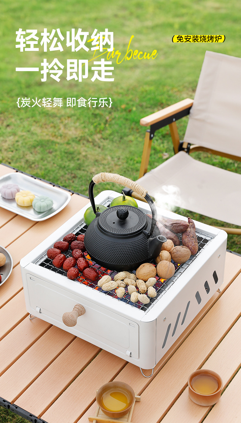 야영 바베큐 그릴 야외 코트 야드 그릴 선반 가정용 차 무연 숯 바베큐 스토브 탄소 화재 야외 요리를위한 휴대용 동그라미 스토브스토어 가기