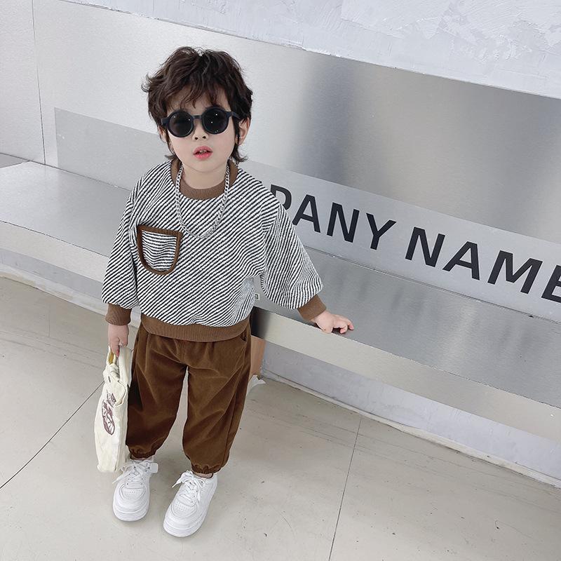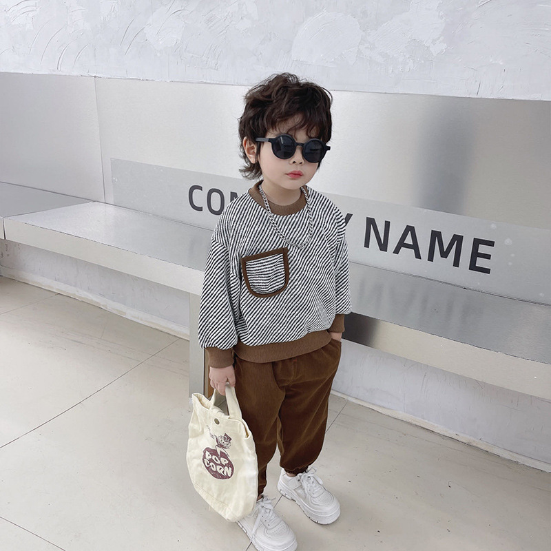 2024 새로운 아기 세트 소년 봄 가을 옷 한국식 트윌 포켓 운동복 투피스 서양식 봄 옷스토어 가기