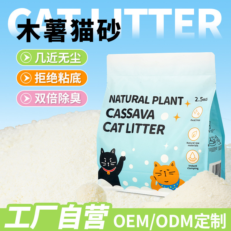 대외 무역 공장 도매 카사바 고양이 쓰레기 원래 옥수수 전분 먼지가없는 두꺼운 상점 비 스틱 바닥 식물 고양이 쓰레기스토어 가기