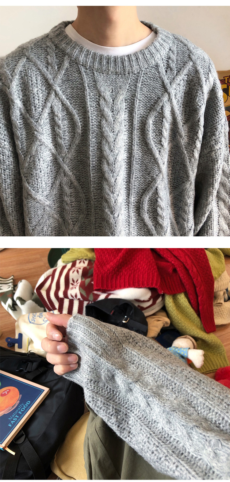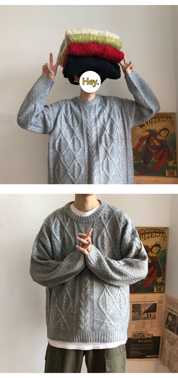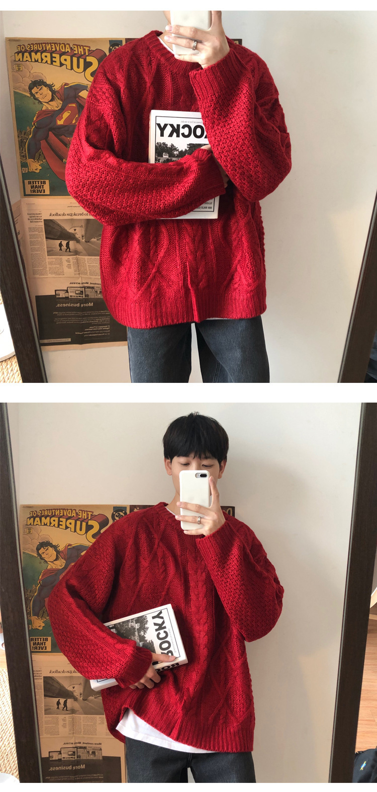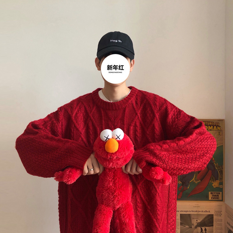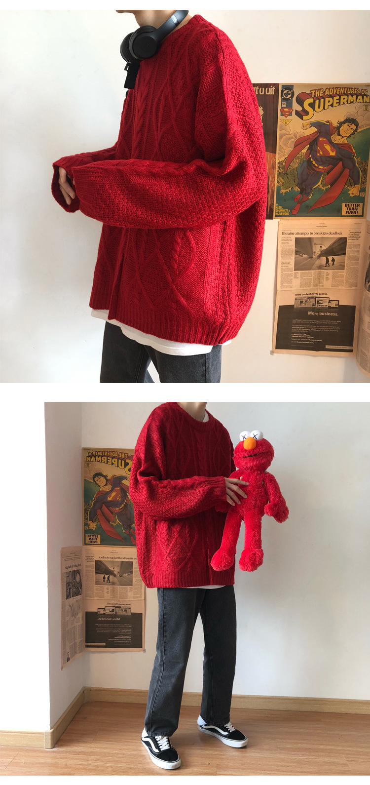 레드 벤밍니 트위스트 스웨터 남자 겨울 무거운 두꺼운 게으른 스타일 오버 사이즈 커플베이스 스웨터스토어 가기