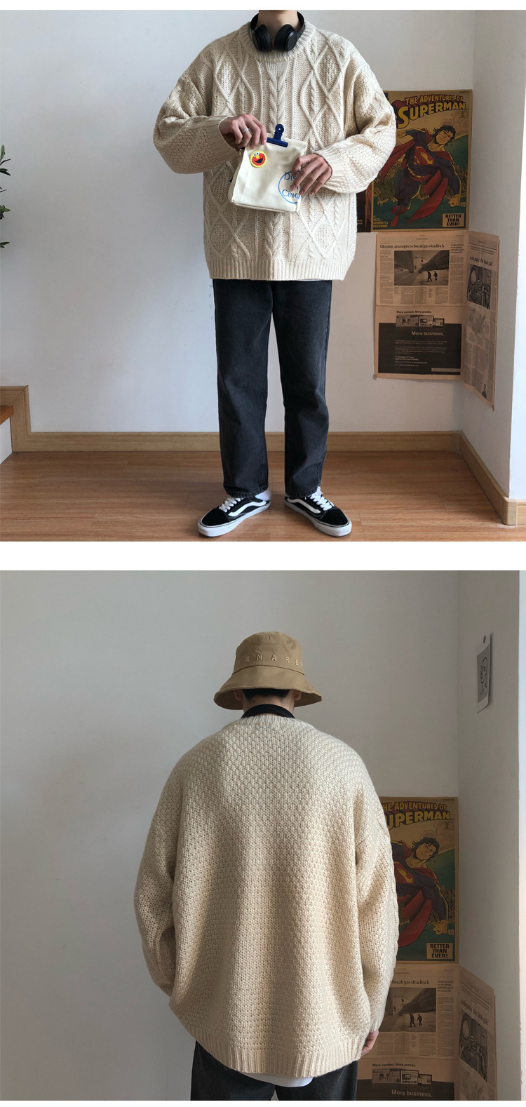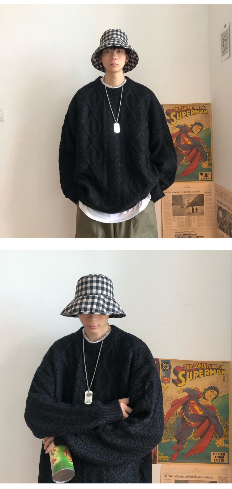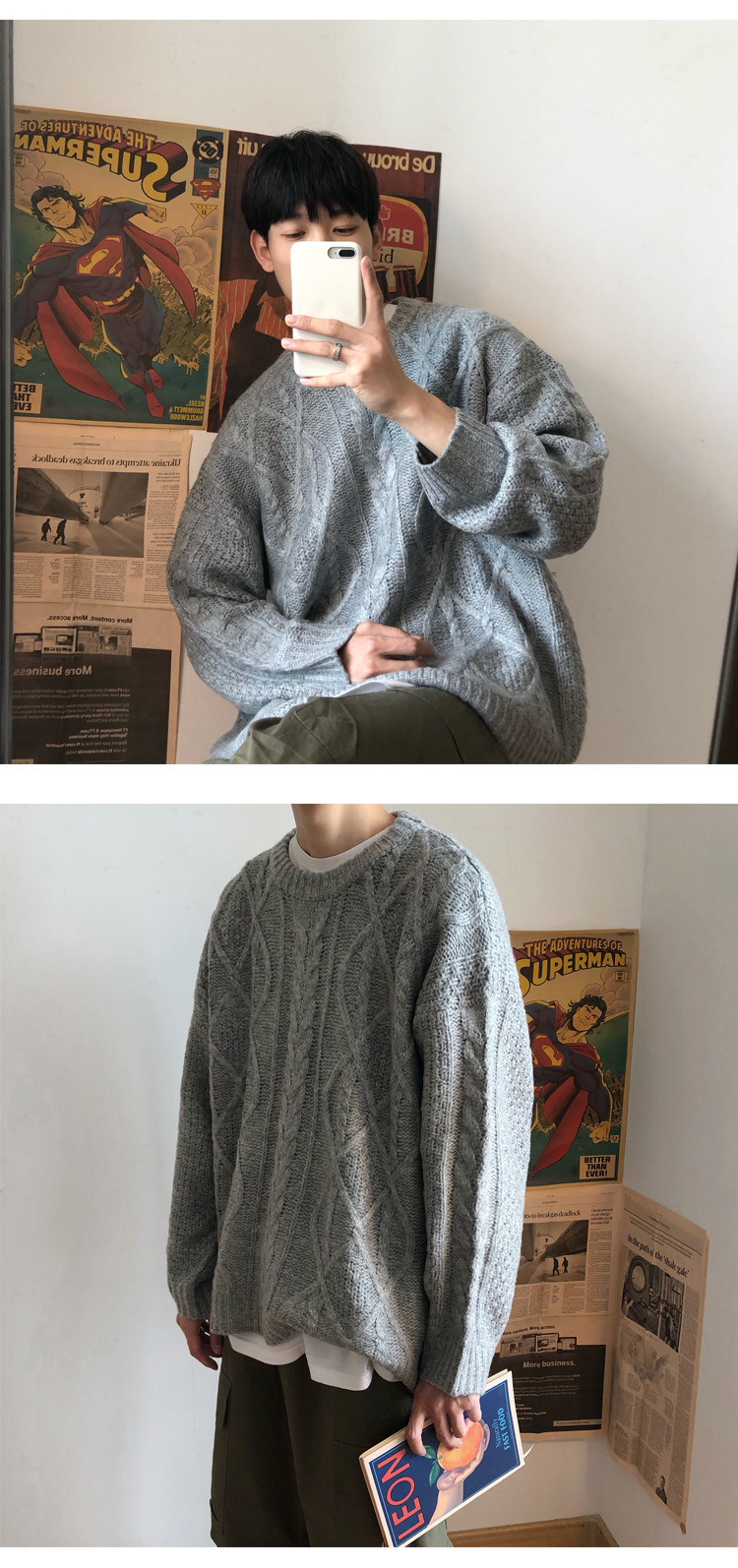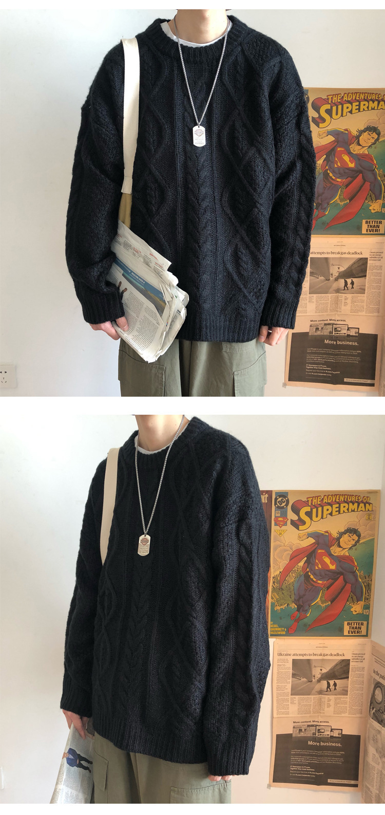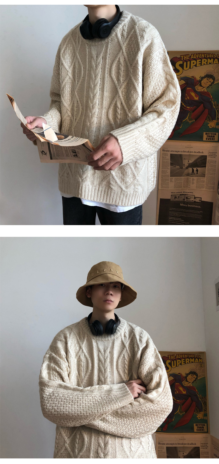 레드 벤밍니 트위스트 스웨터 남자 겨울 무거운 두꺼운 게으른 스타일 오버 사이즈 커플베이스 스웨터스토어 가기