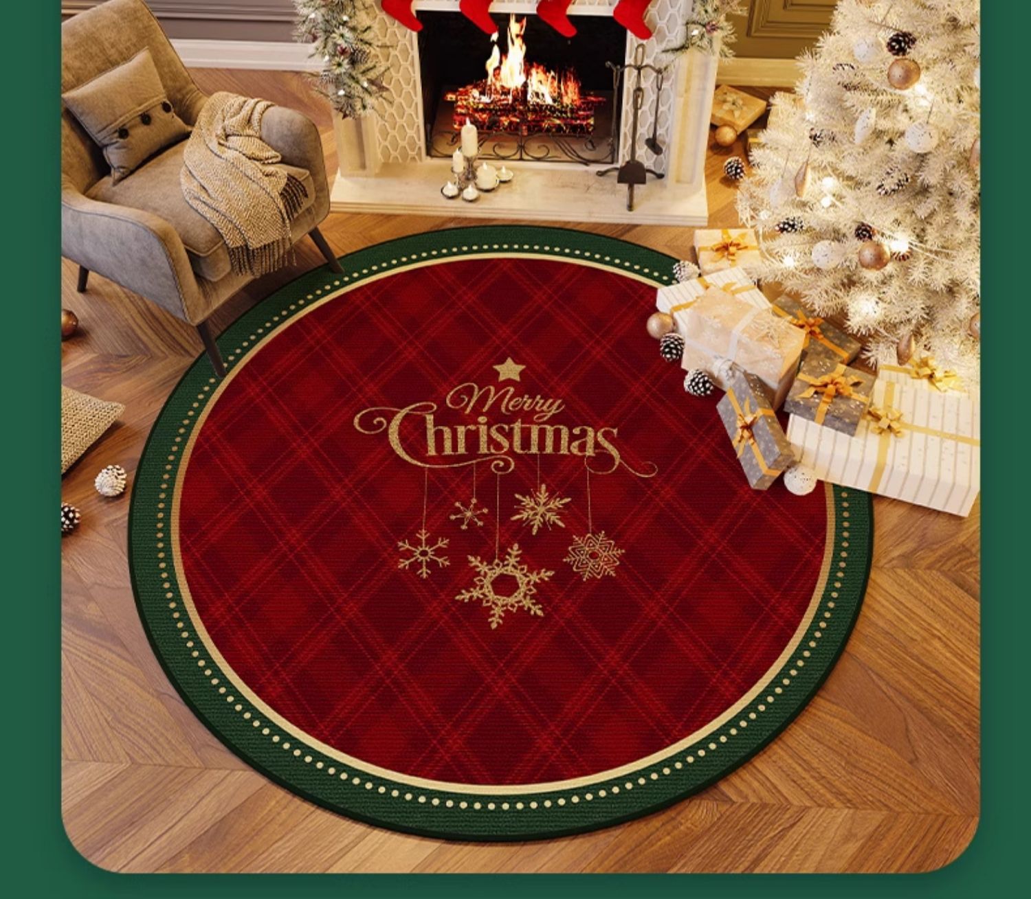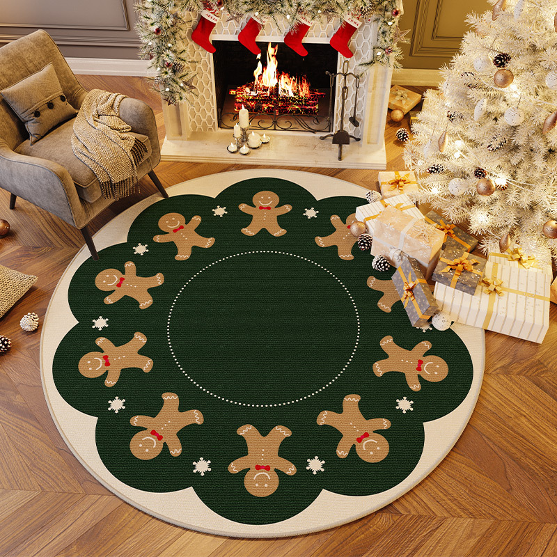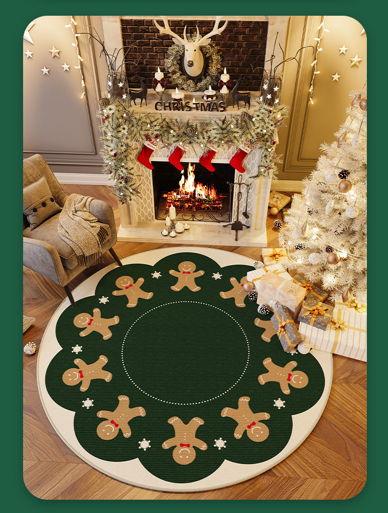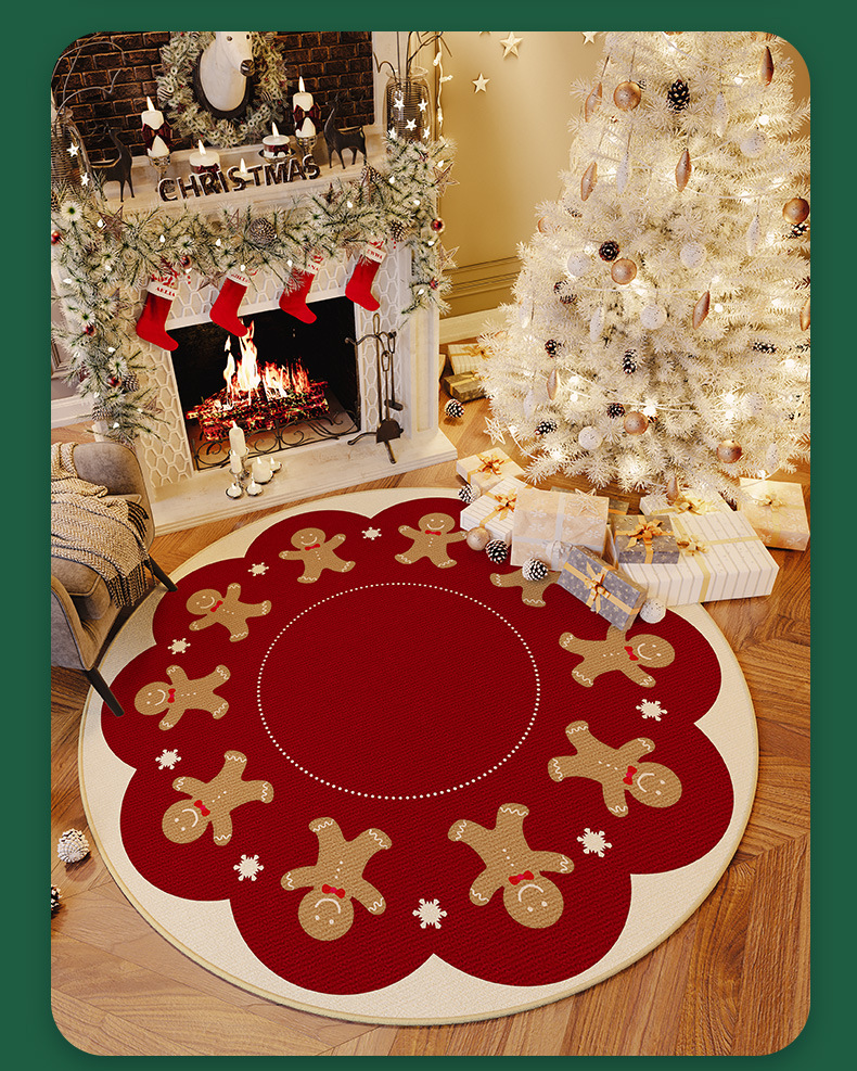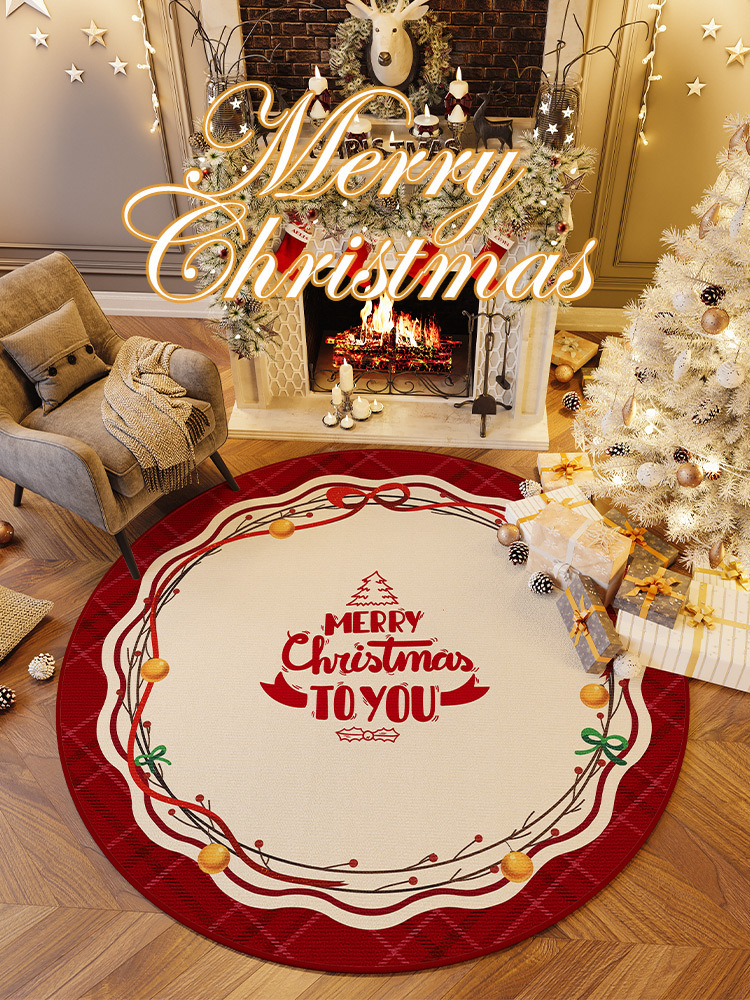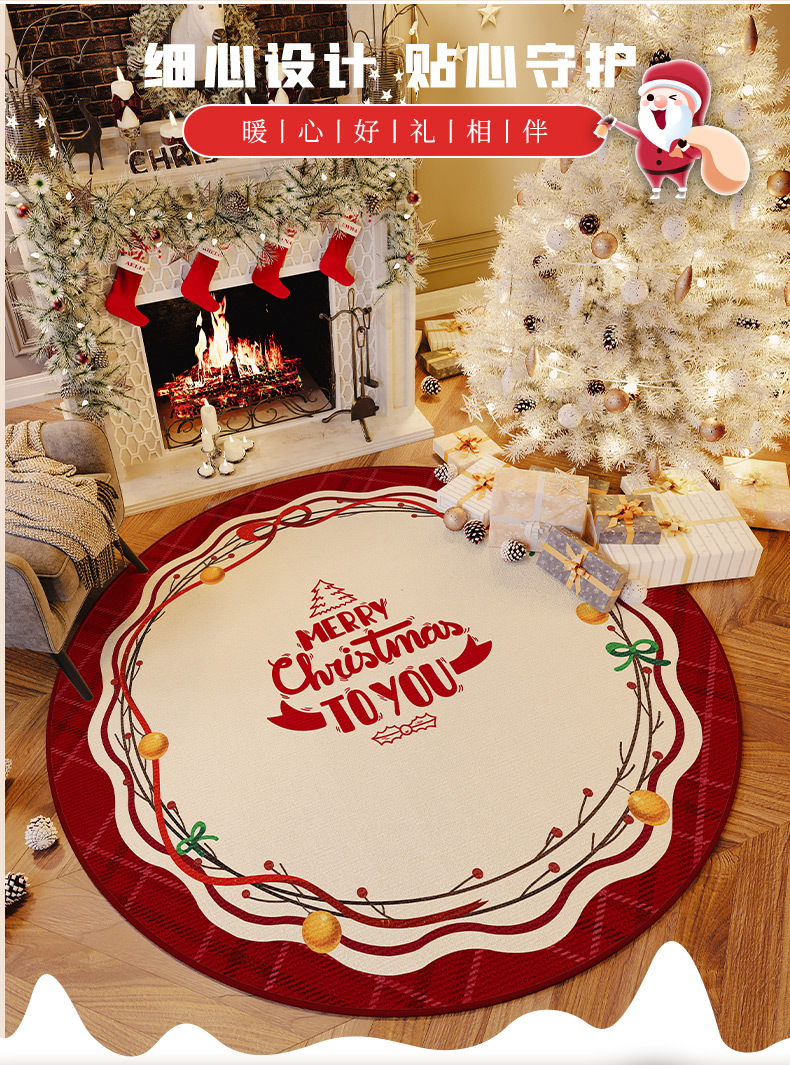 크리스마스 크리스탈 벨벳 카펫, 얼룩 방지 및 관리 용이한 거실용 라운드 티 테이블 소파 담요, 미끄럼 방지 매트, 크리스마스 한정판스토어 가기