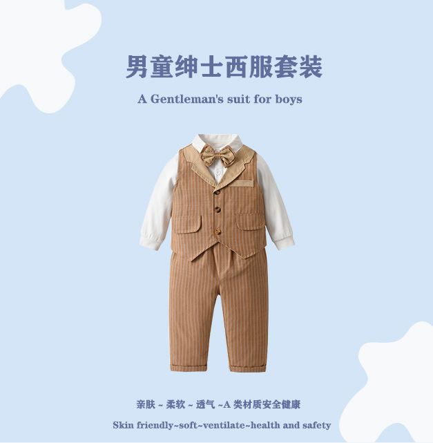 남학생 세트 봄 · 가을 긴팔 아동복 1 살 조끼 신사의 원피스 가을 의류 남성 아기 3 인조 세트스토어 가기