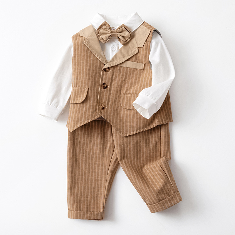 남학생 세트 봄 · 가을 긴팔 아동복 1 살 조끼 신사의 원피스 가을 의류 남성 아기 3 인조 세트