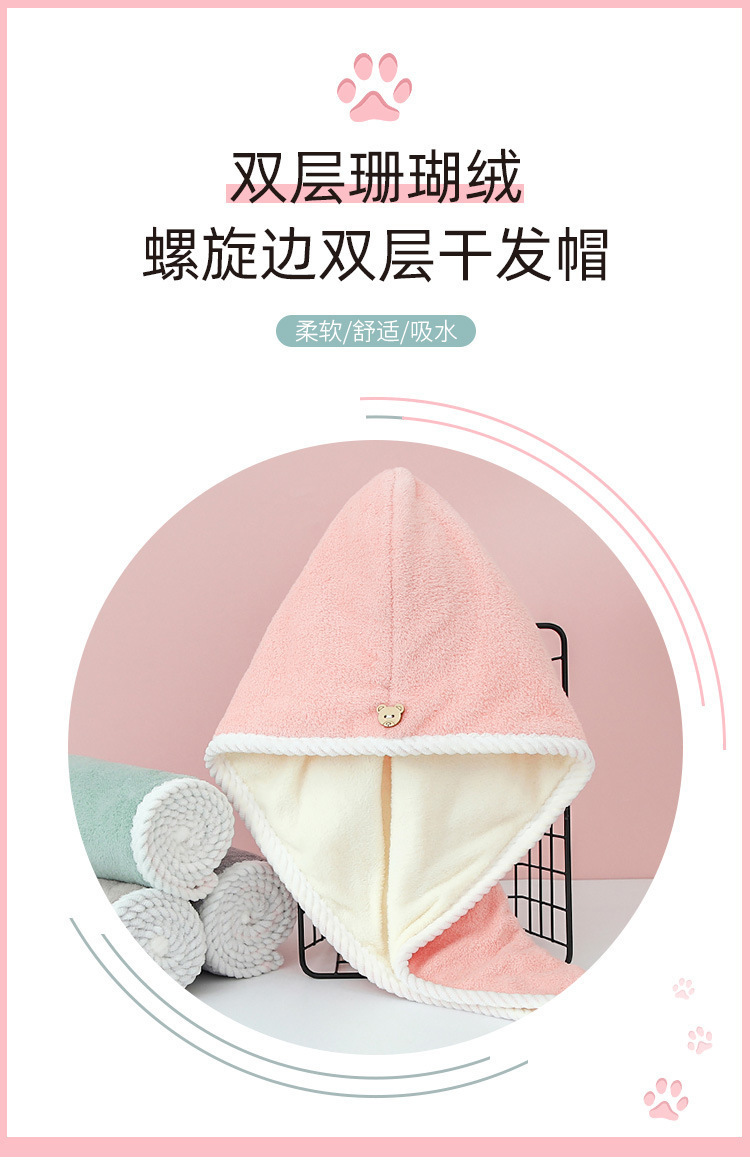 더블 레이어 2 색 두꺼운 드라이 헤어 캡 산호 양털 슈퍼 흡수성 부드러운 빠른 건조 항균 샤워 캡 타월 터번 공장스토어 가기