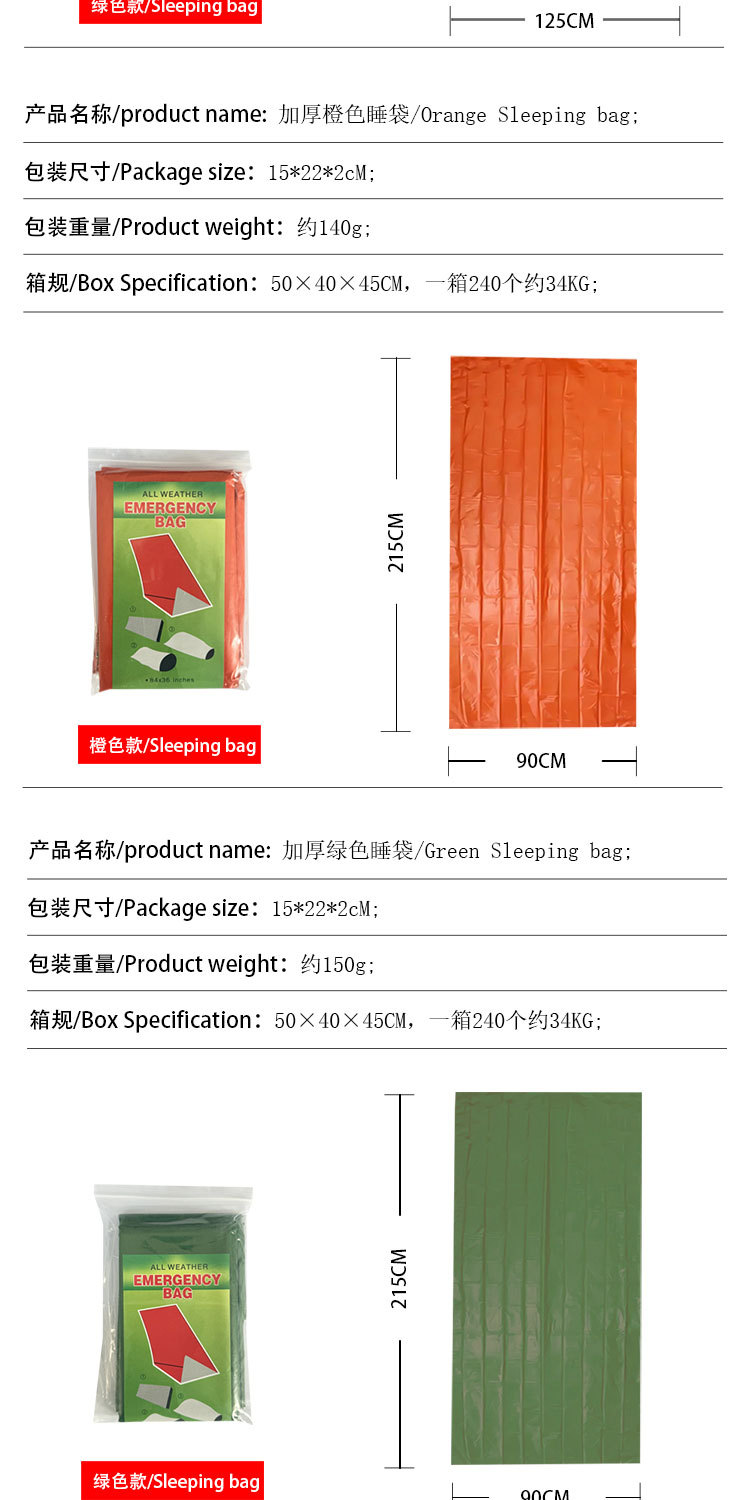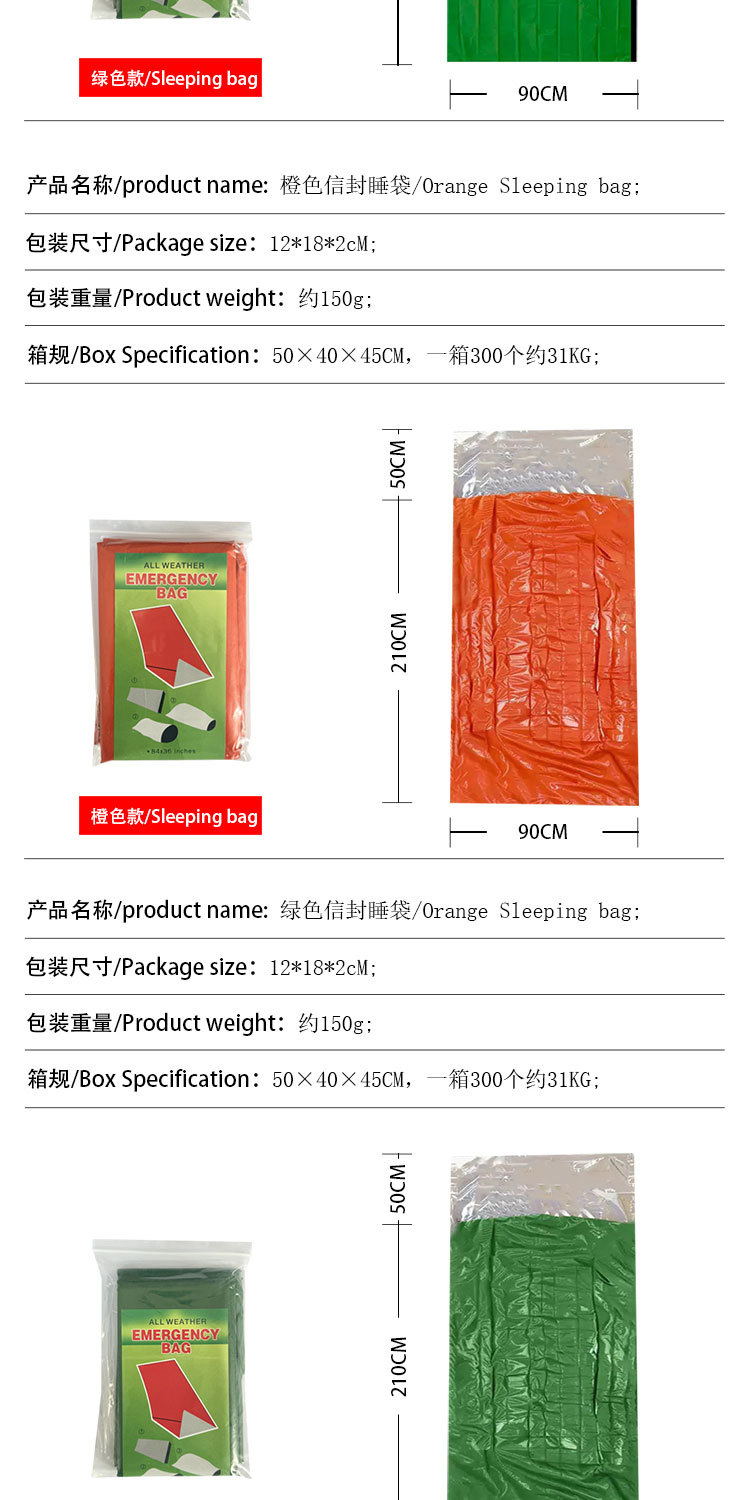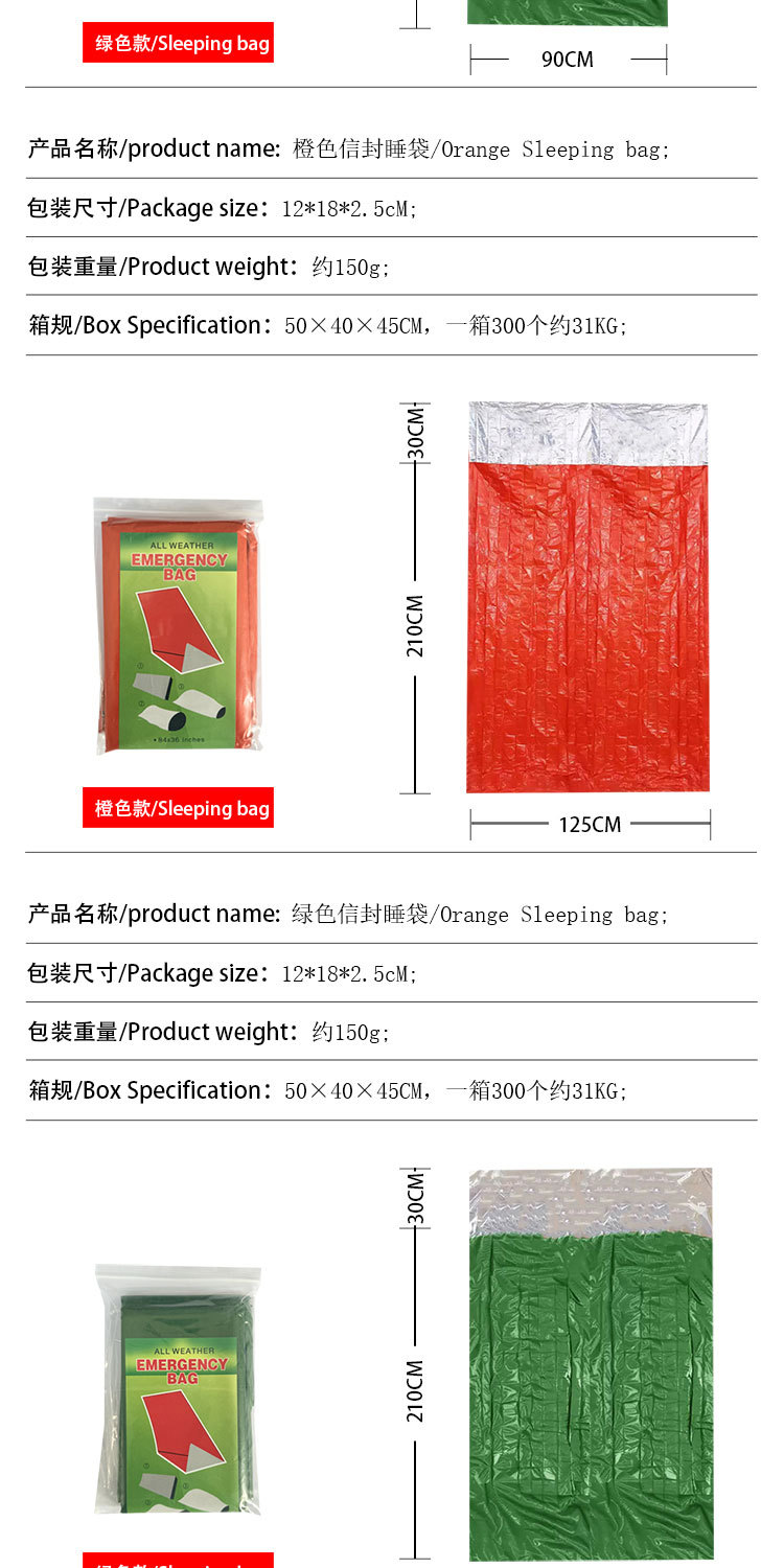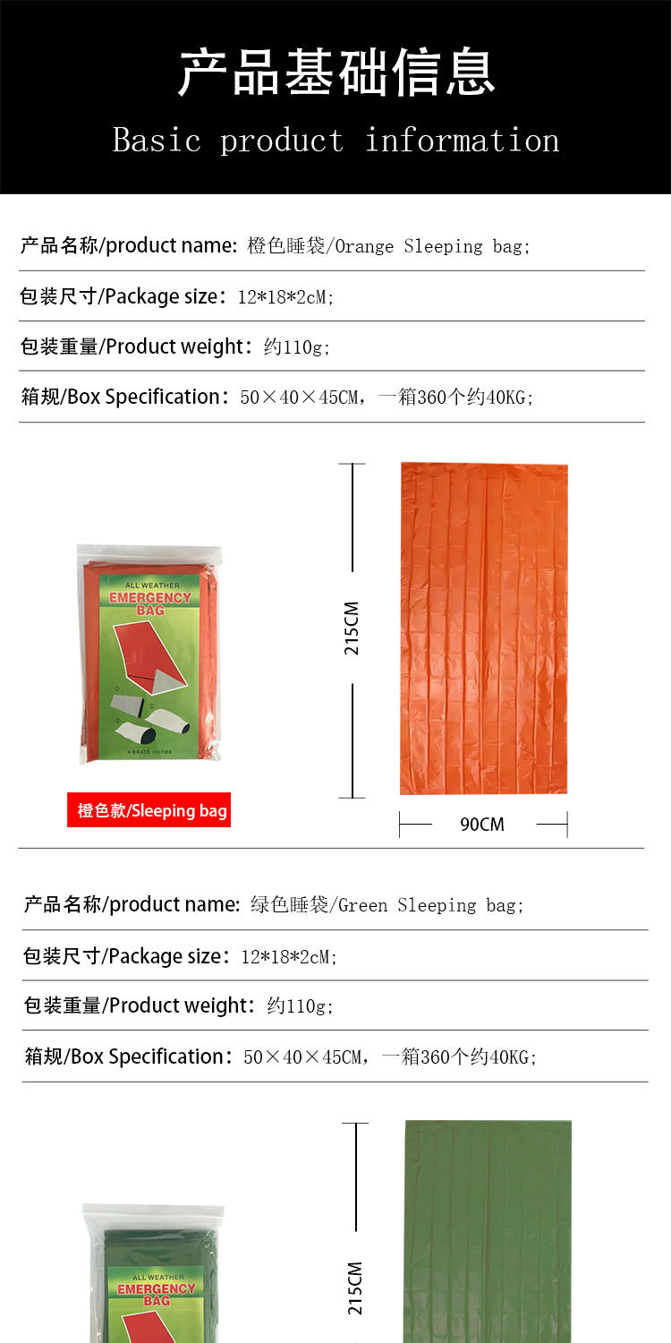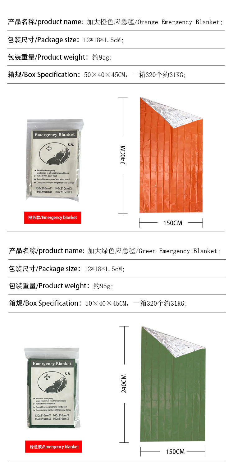 야외 절연 담요 비상 담요 냉온 온도 손실 비상 따뜻한 야외 생존 용품 야외 비상 슬리핑 백