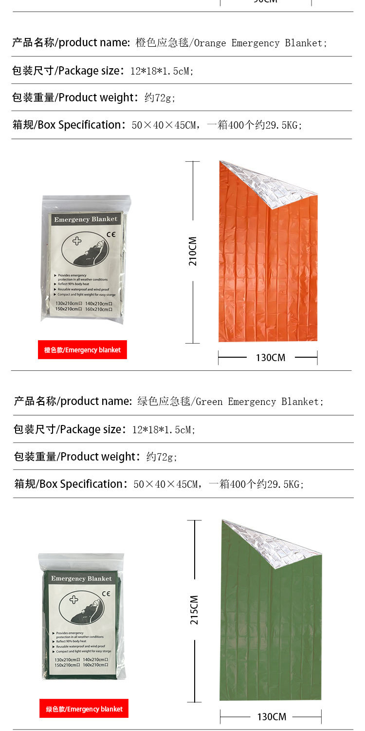 야외 절연 담요 비상 담요 냉온 온도 손실 비상 따뜻한 야외 생존 용품 야외 비상 슬리핑 백스토어 가기