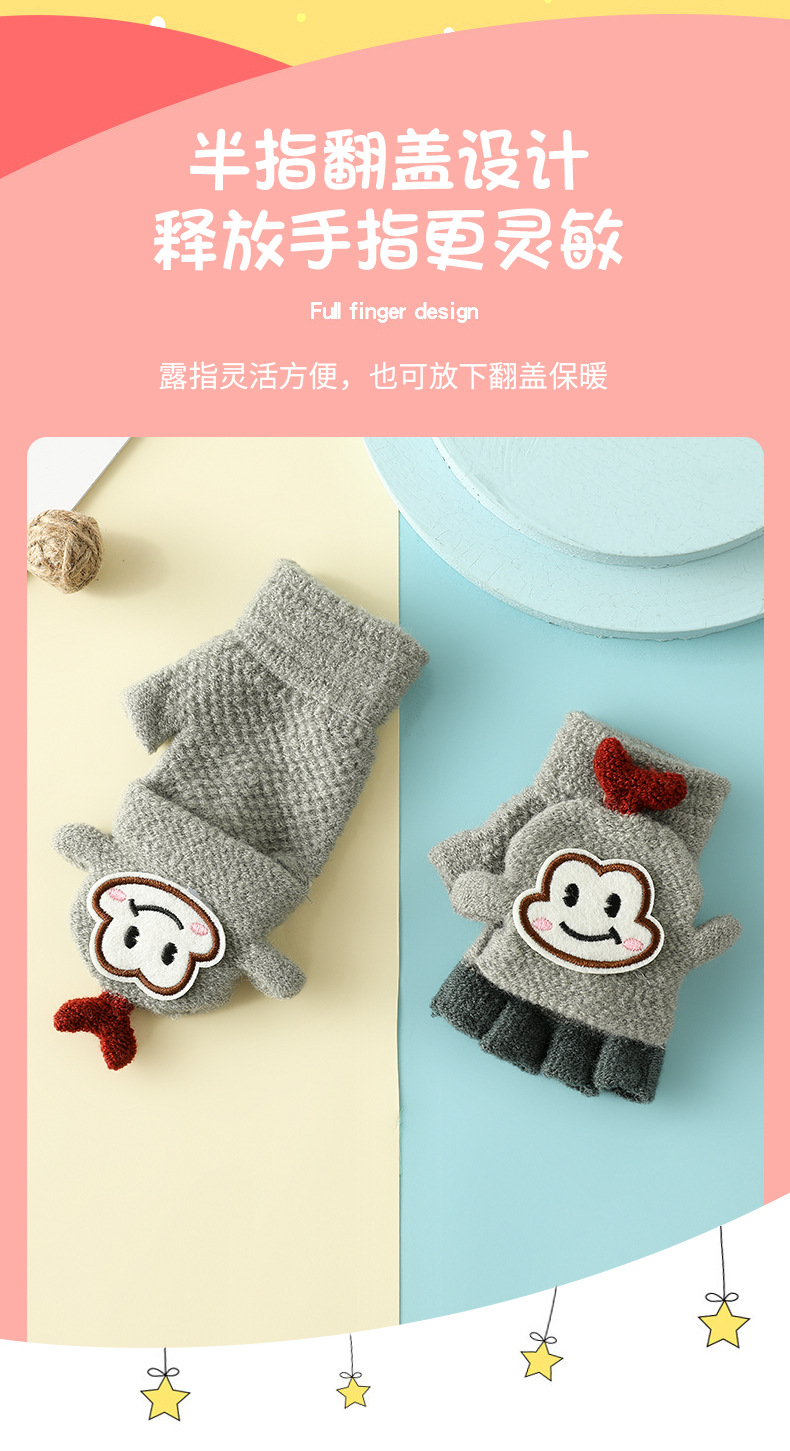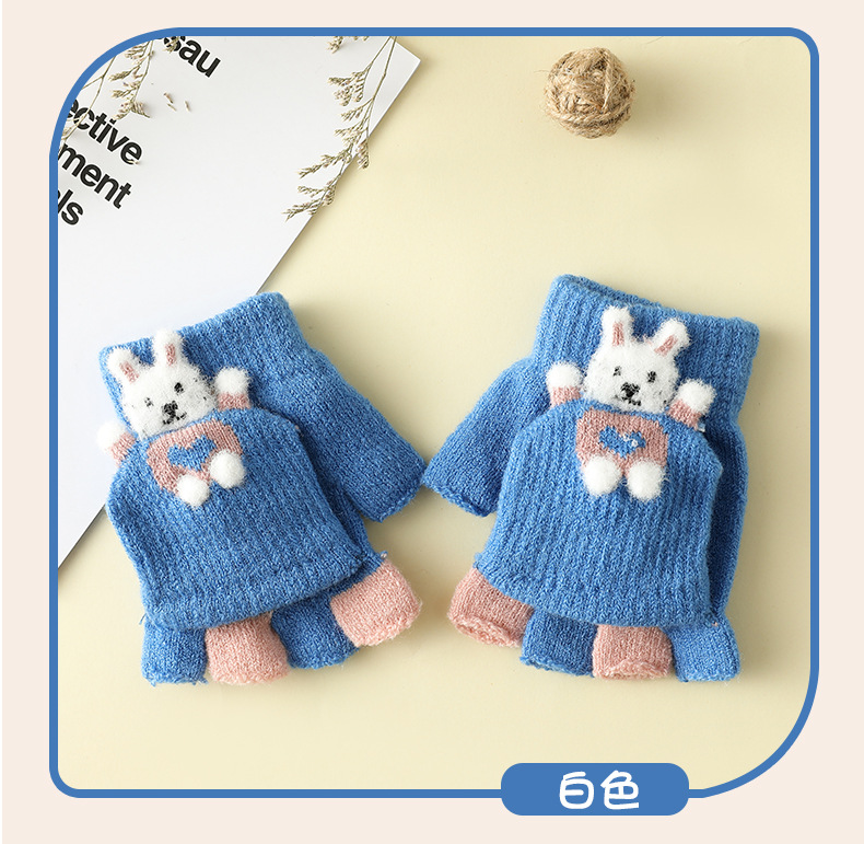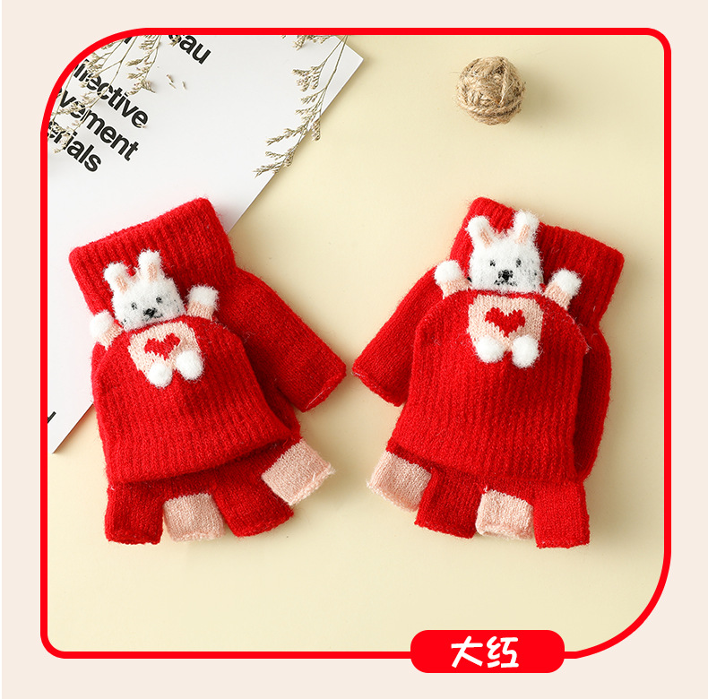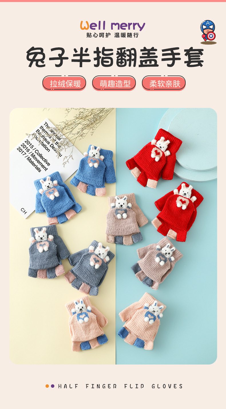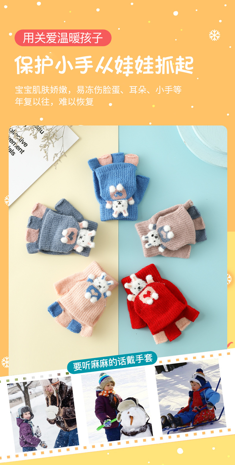 3-6세 아기용 겨울 방풍 반손가락 플립업 토끼 만화 캐릭터 플러시 따뜻한 니트 아동용 장갑