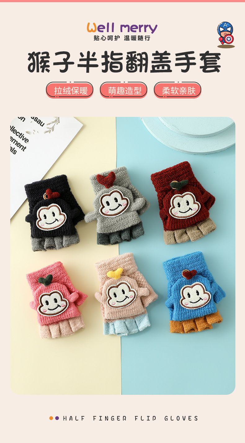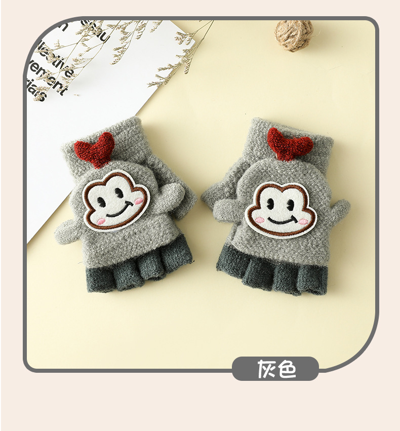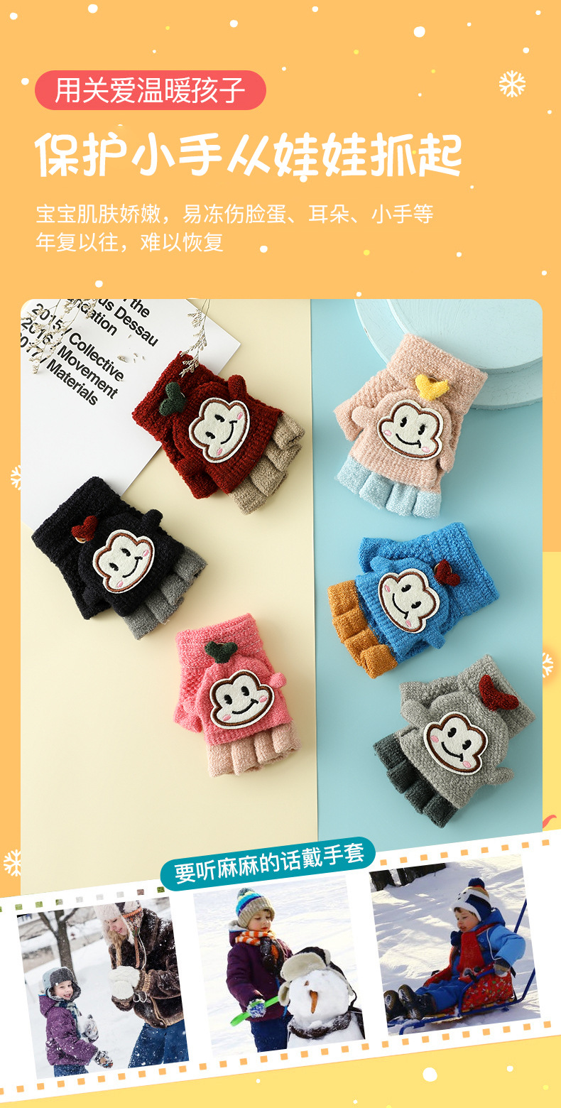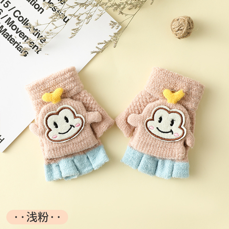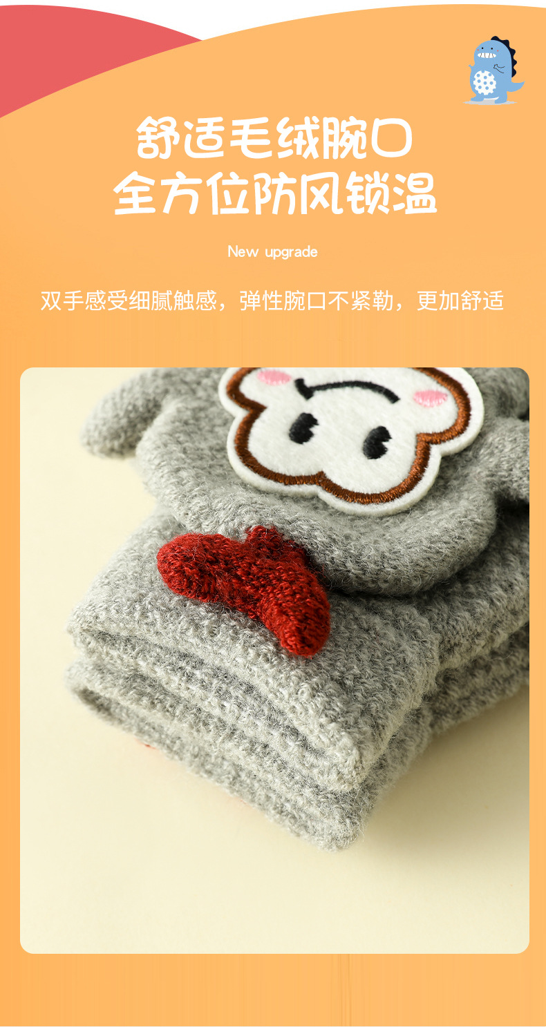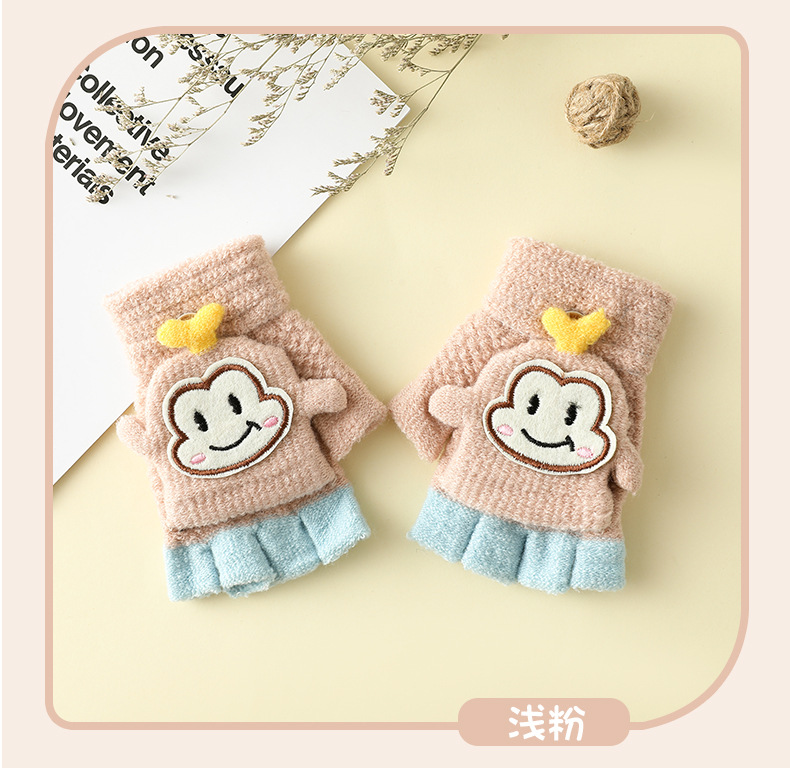 3-6세 아기용 겨울 방풍 반손가락 플립업 토끼 만화 캐릭터 플러시 따뜻한 니트 아동용 장갑