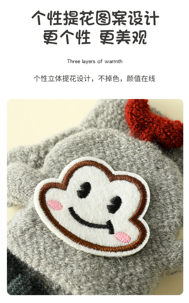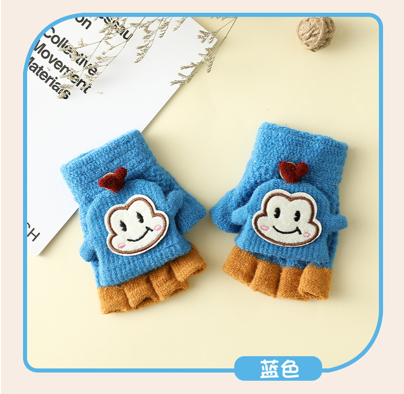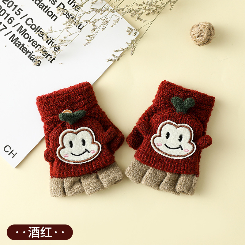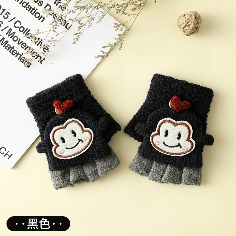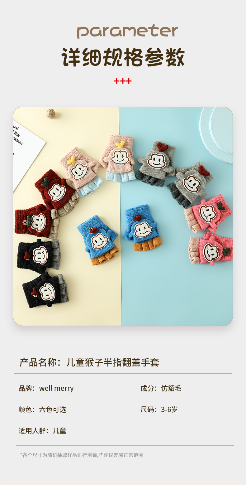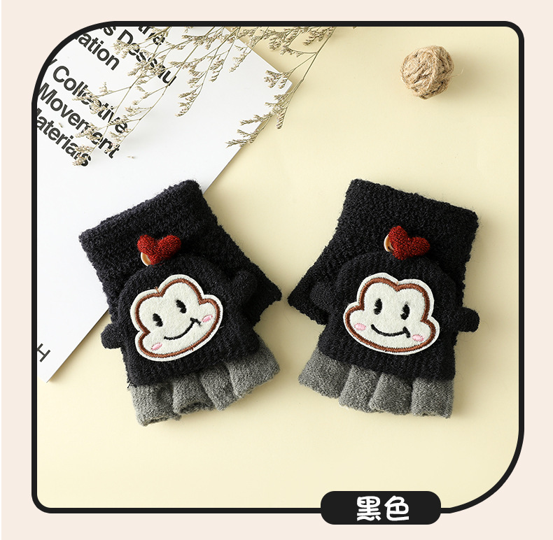 3-6세 아기용 겨울 방풍 반손가락 플립업 토끼 만화 캐릭터 플러시 따뜻한 니트 아동용 장갑