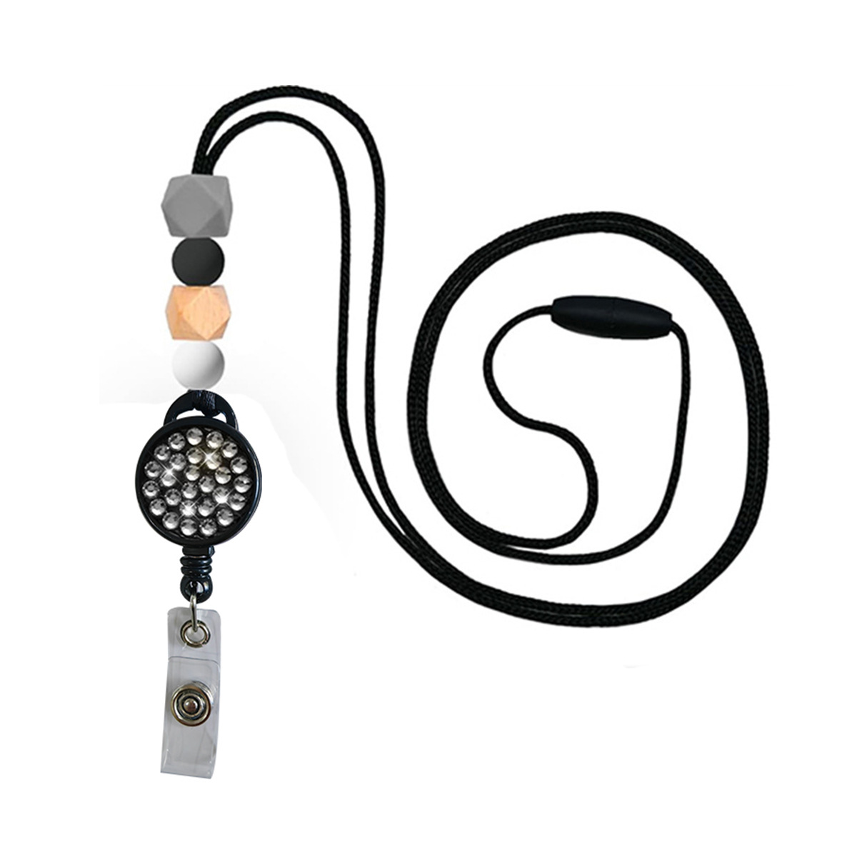 국경 간 Lanyard 실리콘 구슬 분리 가능한 작업 인증서 Lanyard 캠퍼스 직원 병원 다이아몬드 확장 가능한 버클