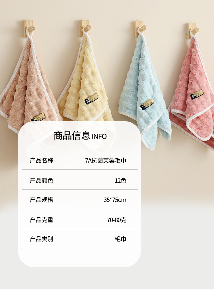 7A 항균 히비스커스 타월 두꺼운 흡수성 와이프 페이스 타월 흡수성 페이스 타월 부드럽고 편안한 수건