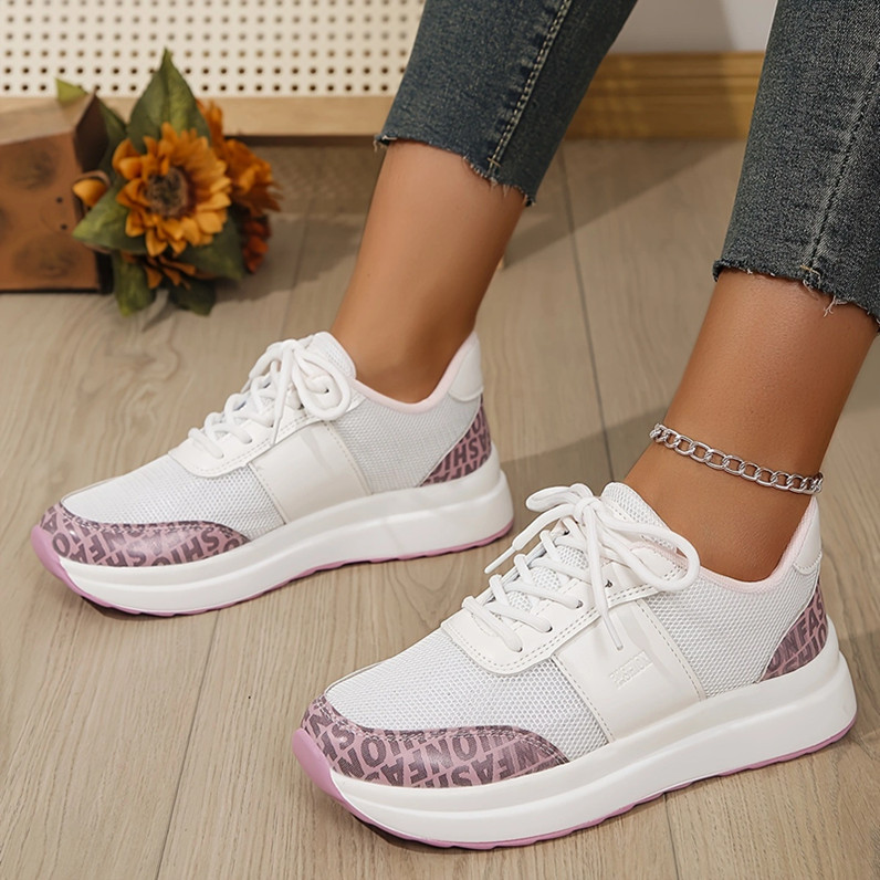 유럽과 미국의 플러스 사이즈 여성 운동화 2024 여름 새로운 라운드 헤드 레이스 메쉬 컬러 매칭 캐주얼 신발 여성 도매스토어 가기