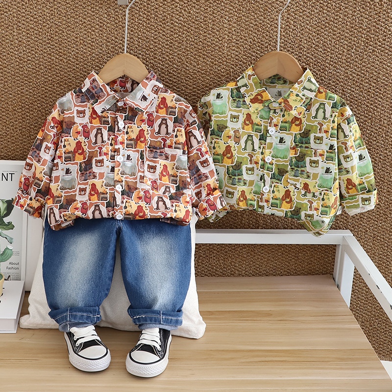 2024 소년 옷깃 만화 새로운 두 조각 아기 어린이 세트 멋진 외국 스타일 조수 제조 업체 도매스토어 가기