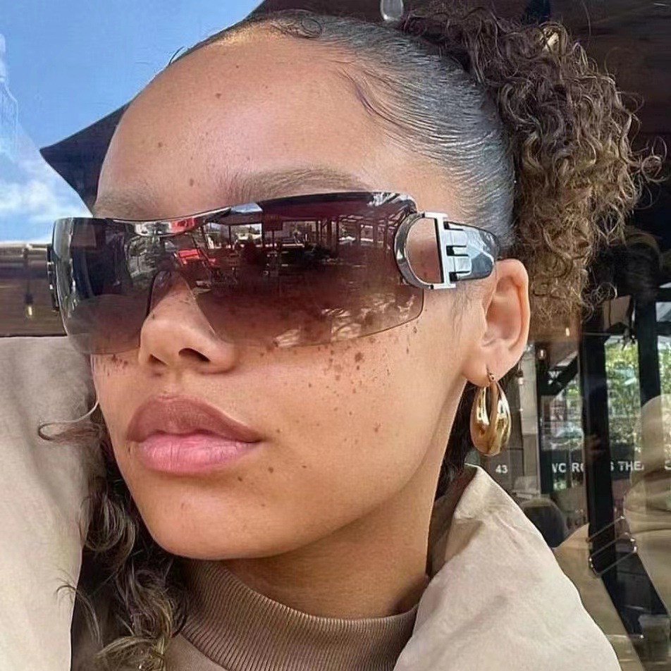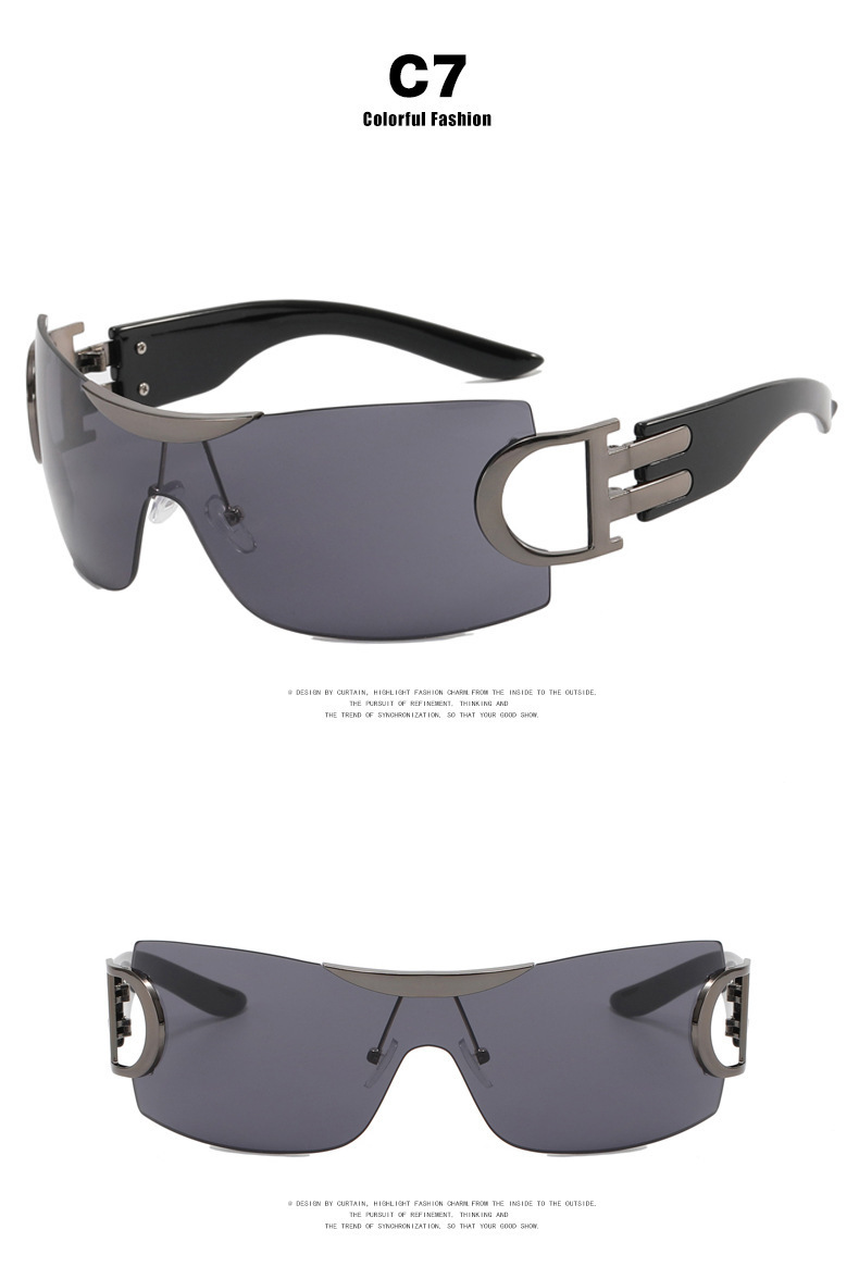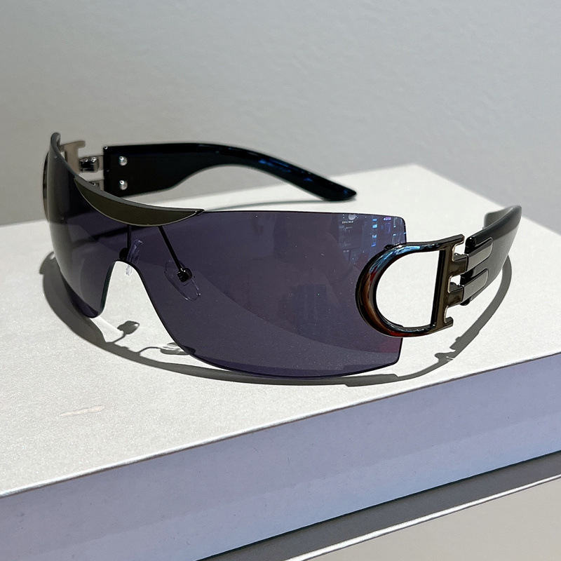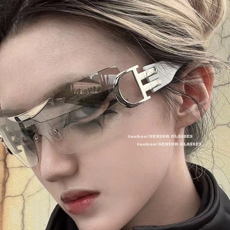 跨境科技感连体无框墨镜ins网红朋克y2k街拍防风防尘护目太阳眼镜