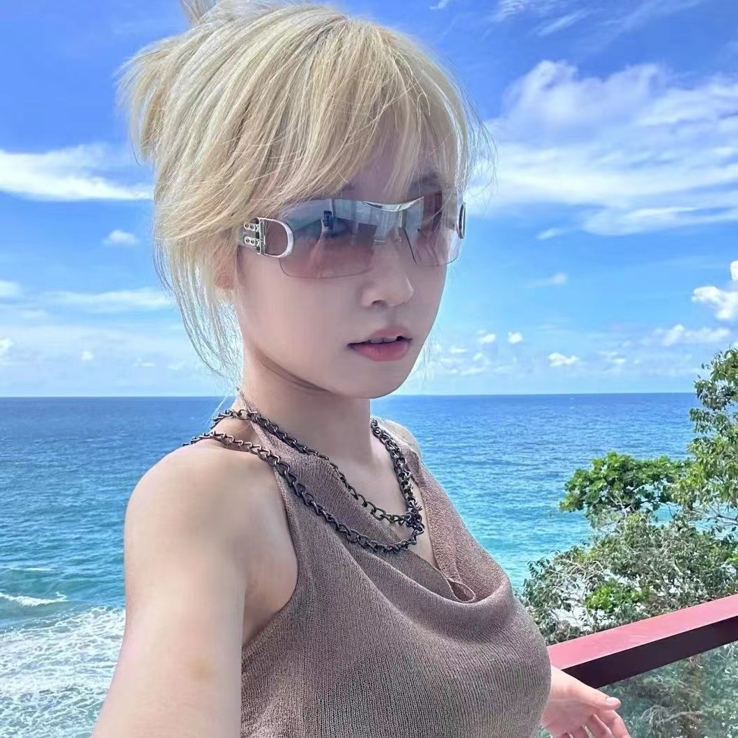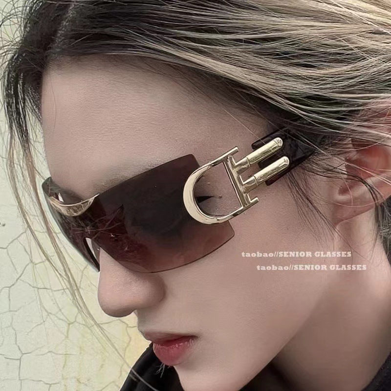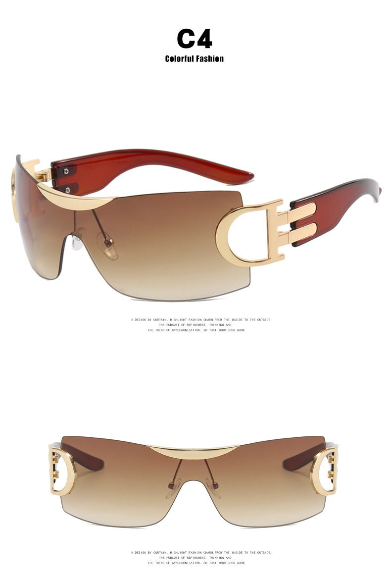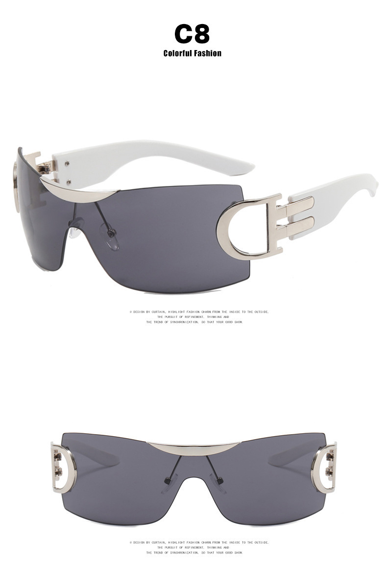 跨境科技感连体无框墨镜ins网红朋克y2k街拍防风防尘护目太阳眼镜