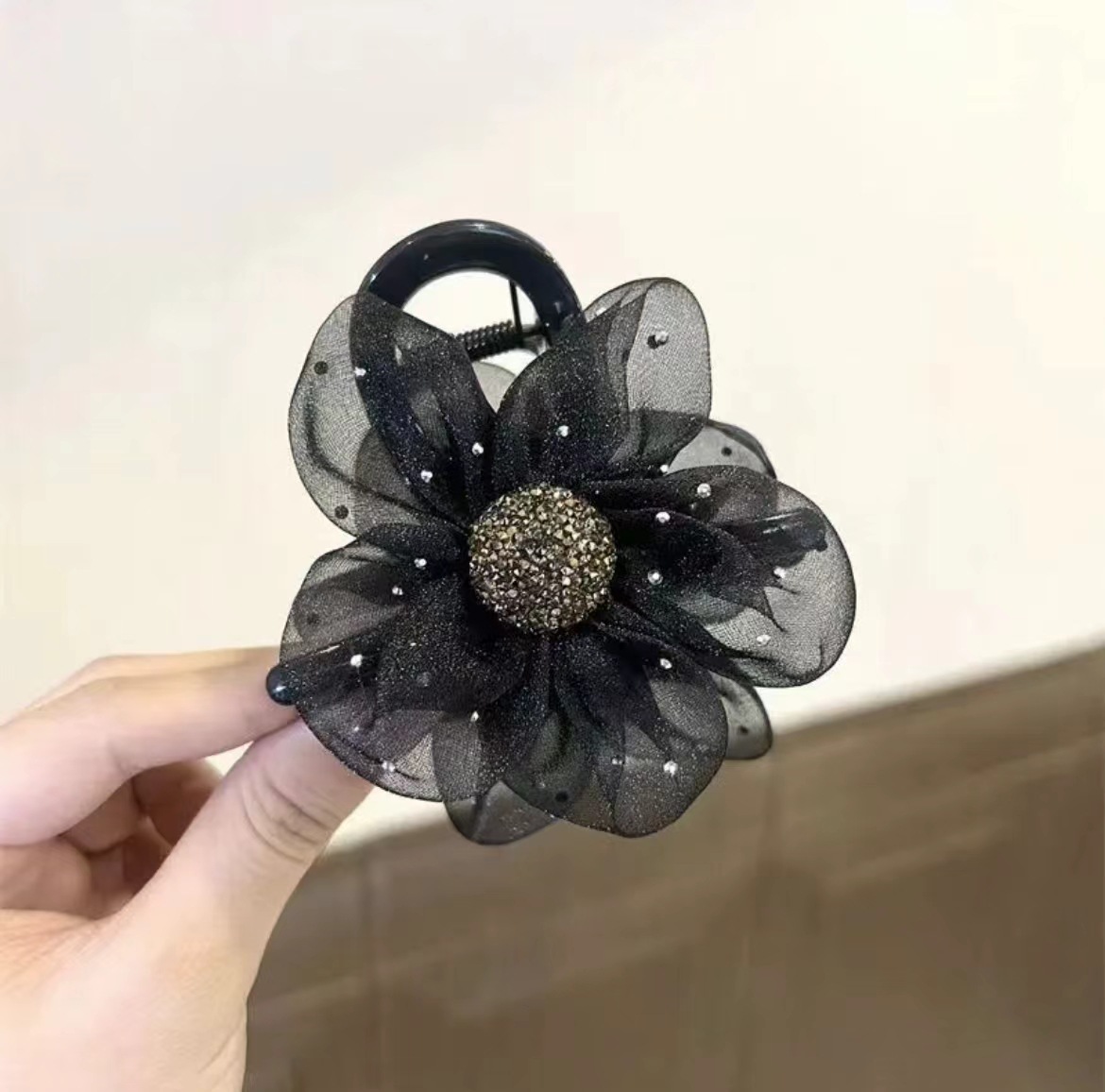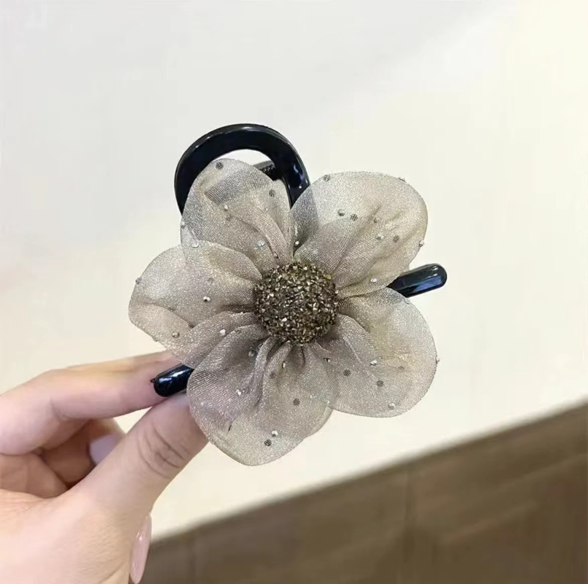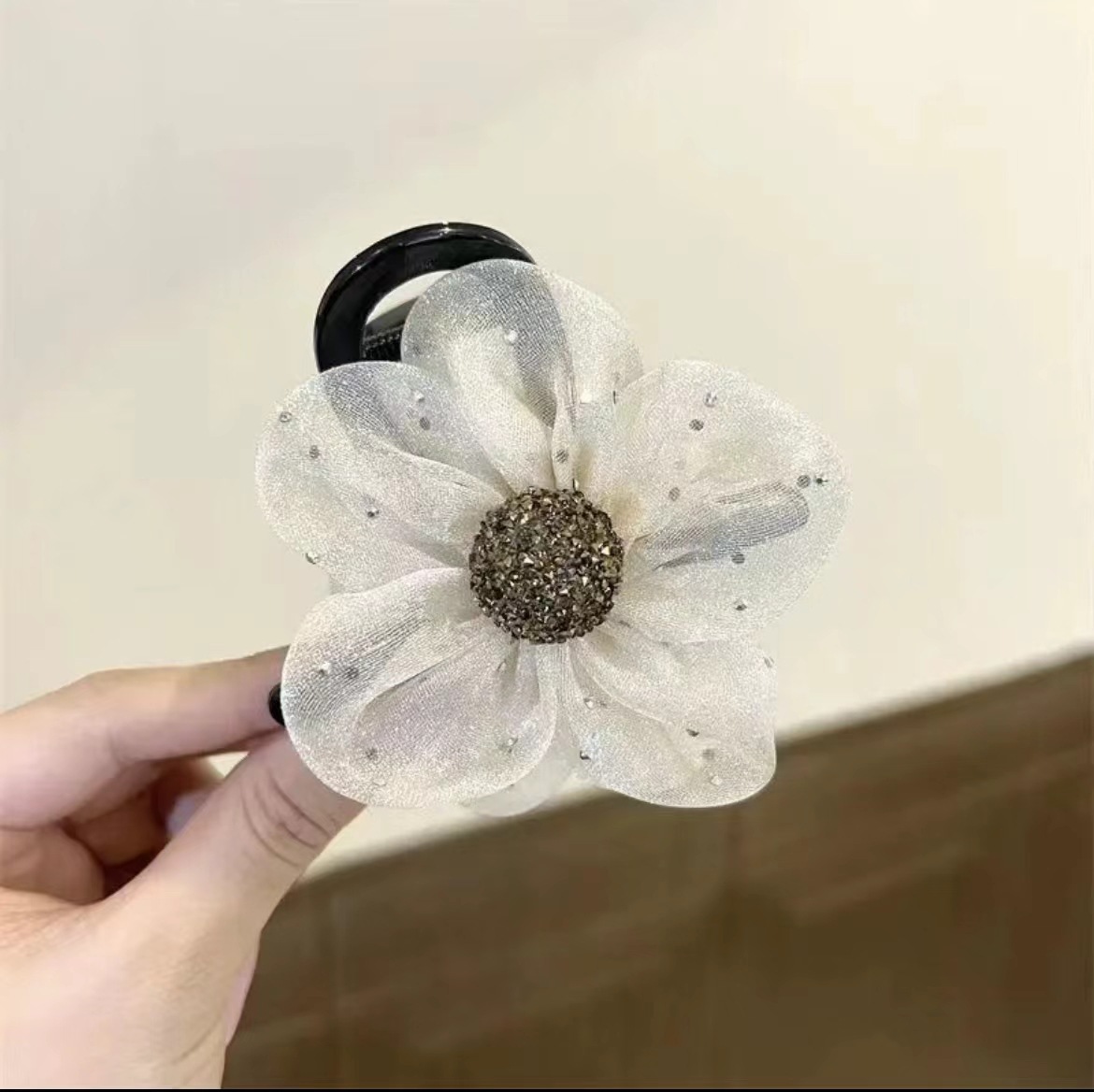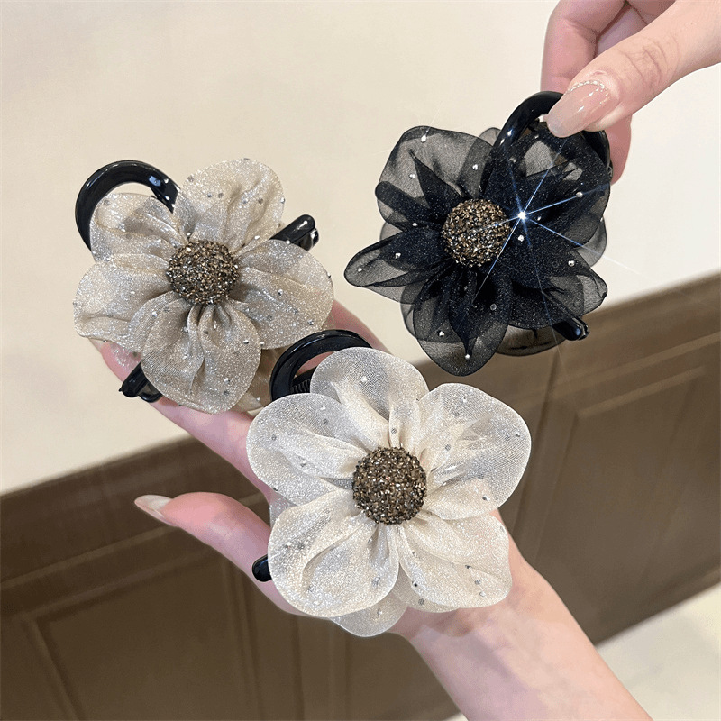 고급 거즈 라인스톤 해바라기 잡아 클립 여성 기질 반 묶은 머리 머리 상어 클립의 머리 머리 머리 클립스토어 가기