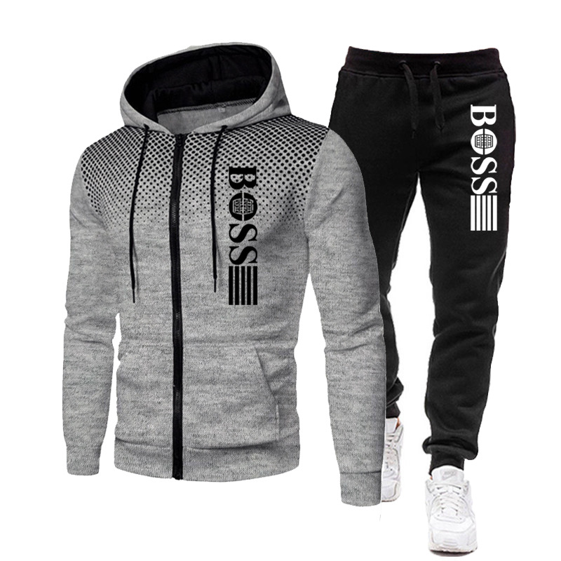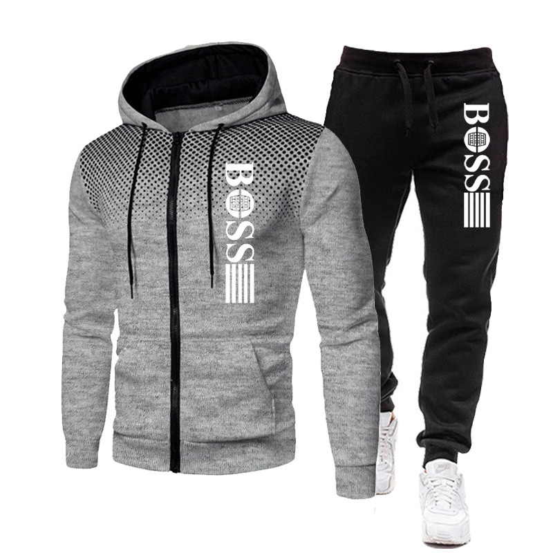 2023 신상품 남성용 지퍼 후드티 스포츠 세트 가을 겨울 트렌디 브랜드 프린트 캐주얼 긴팔