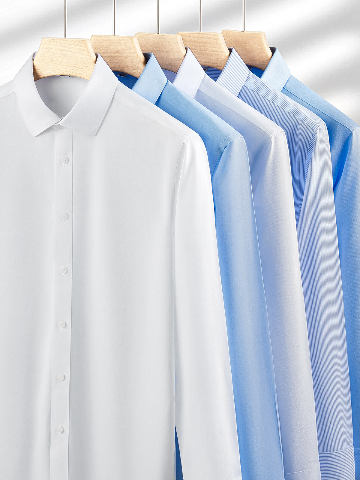 남성용 노아이언 주름 방지 셔츠, 순면 긴팔 흰색 셔츠, 남녀 작업복, 로고 맞춤형 80수 이중 스레드스토어 가기