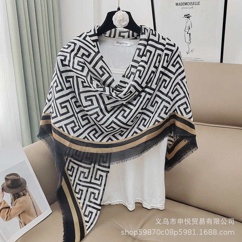 국경을 넘는 가을과 겨울 따뜻한 얇은 130 대형 사각 면화와 리넨 손 느낌 가장자리 여행 선스크린 목도리 스카프스토어 가기