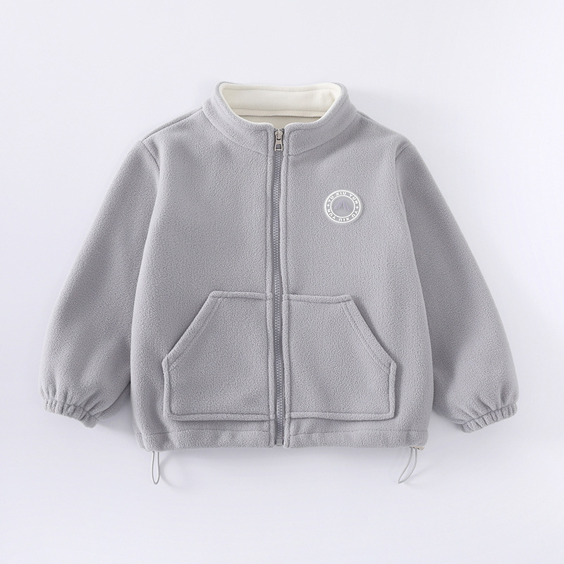 봄, 가을, 겨울용 기모 안감 두꺼운 아동용 남아 여아 보온 플리스 재킷 (중대형 아동용 숏 스타일)