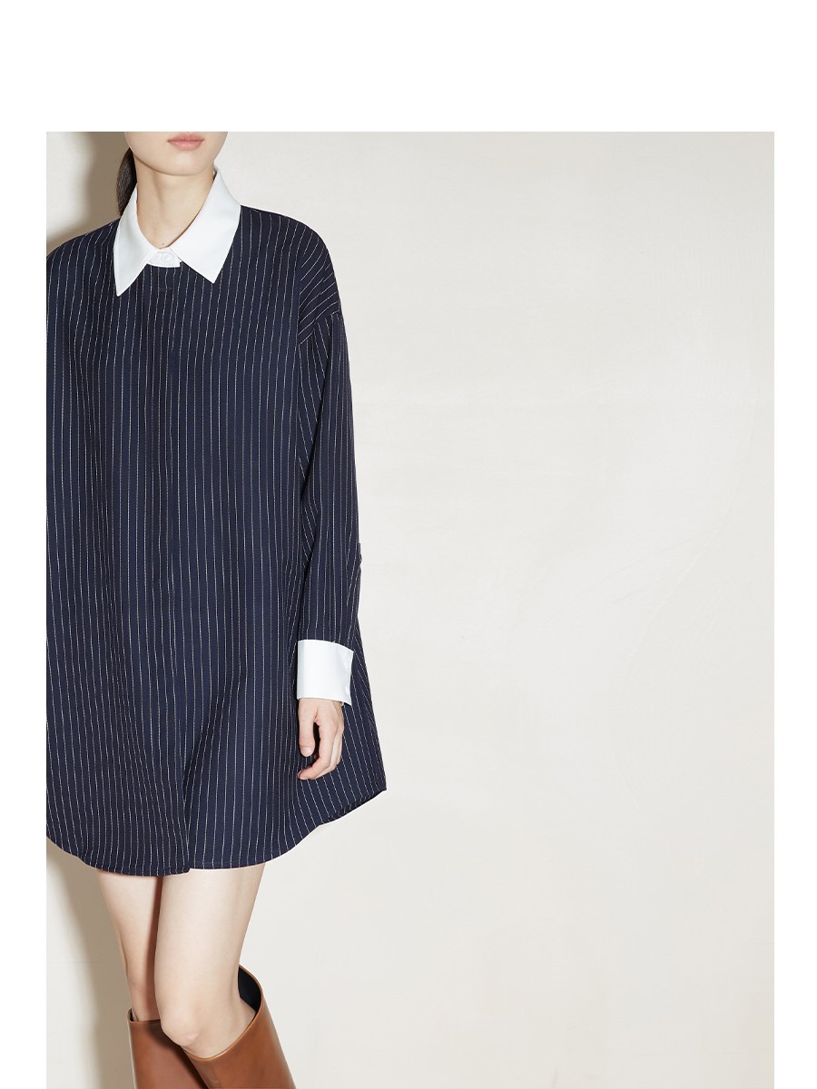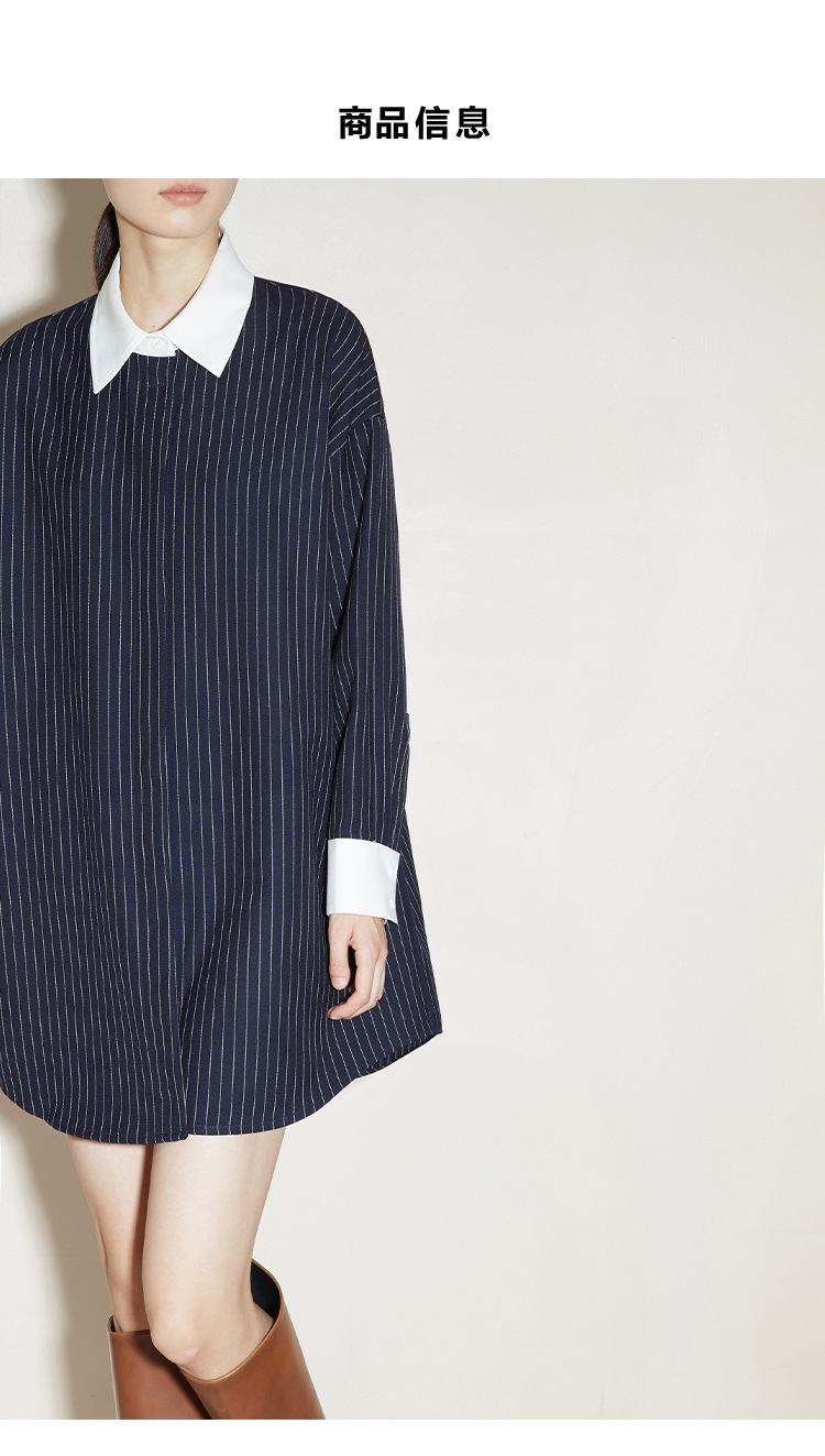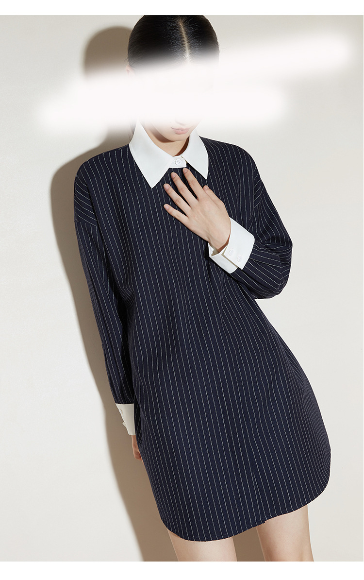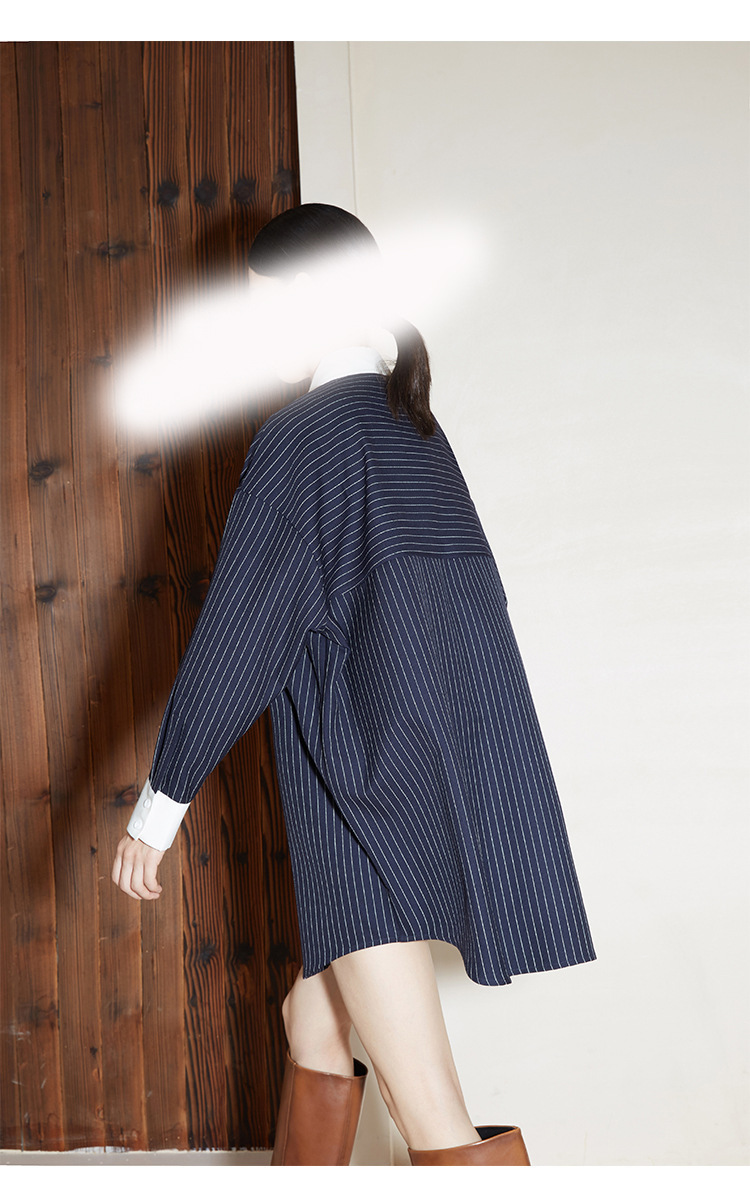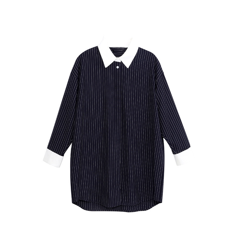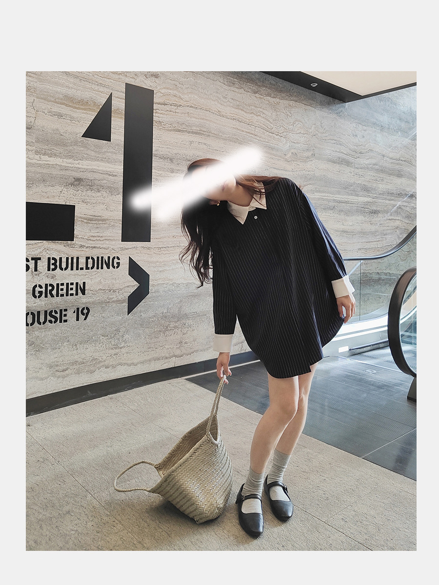 2024 새로운 가을 빈티지 스트라이프 셔츠 여성의 긴 외부 착용 느슨한 프로필 명암 셔츠 베이스 셔츠 원피스