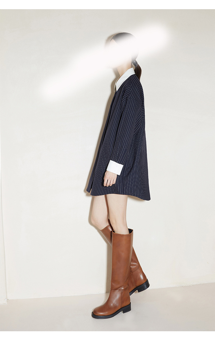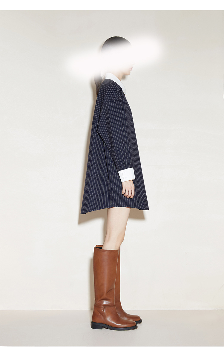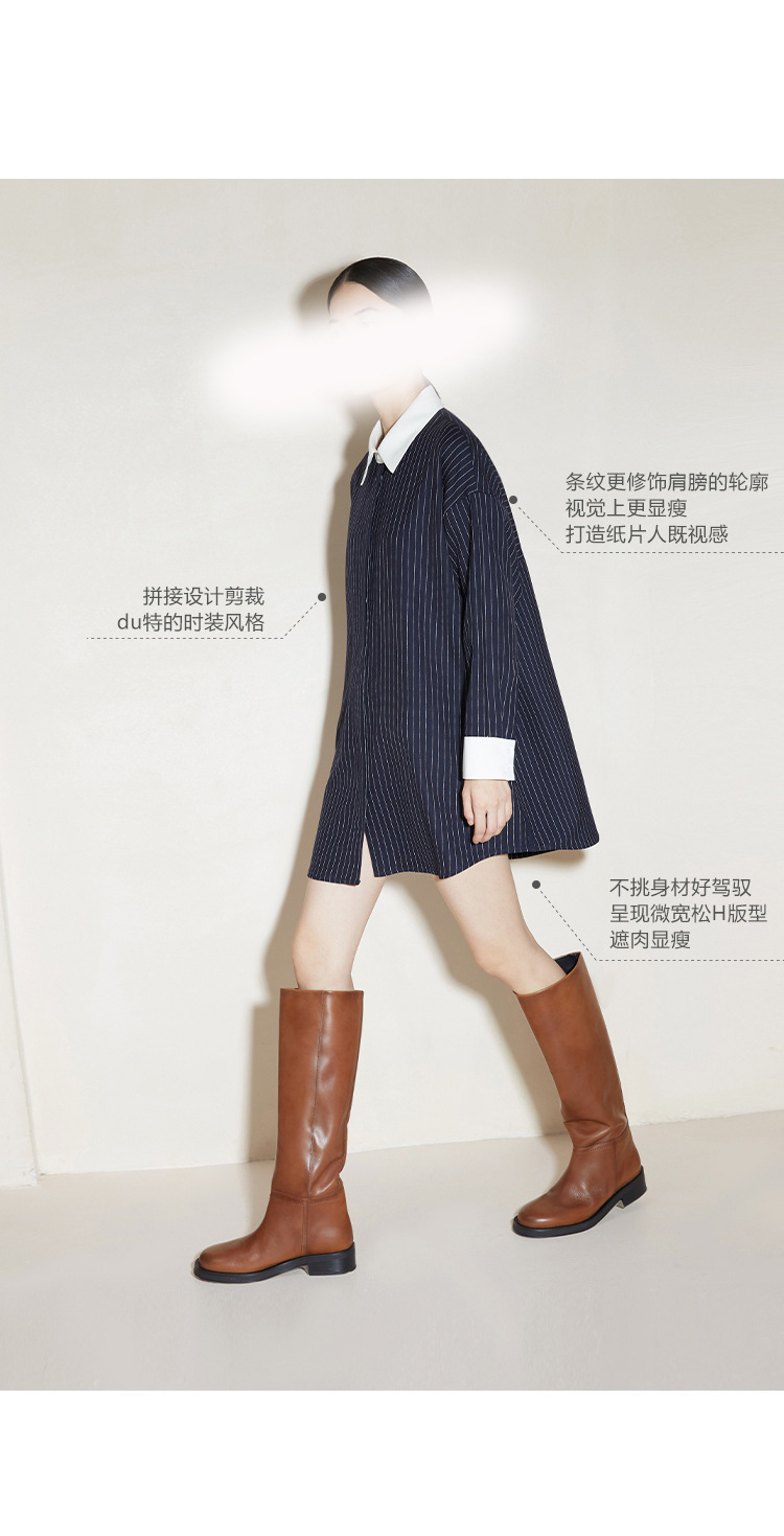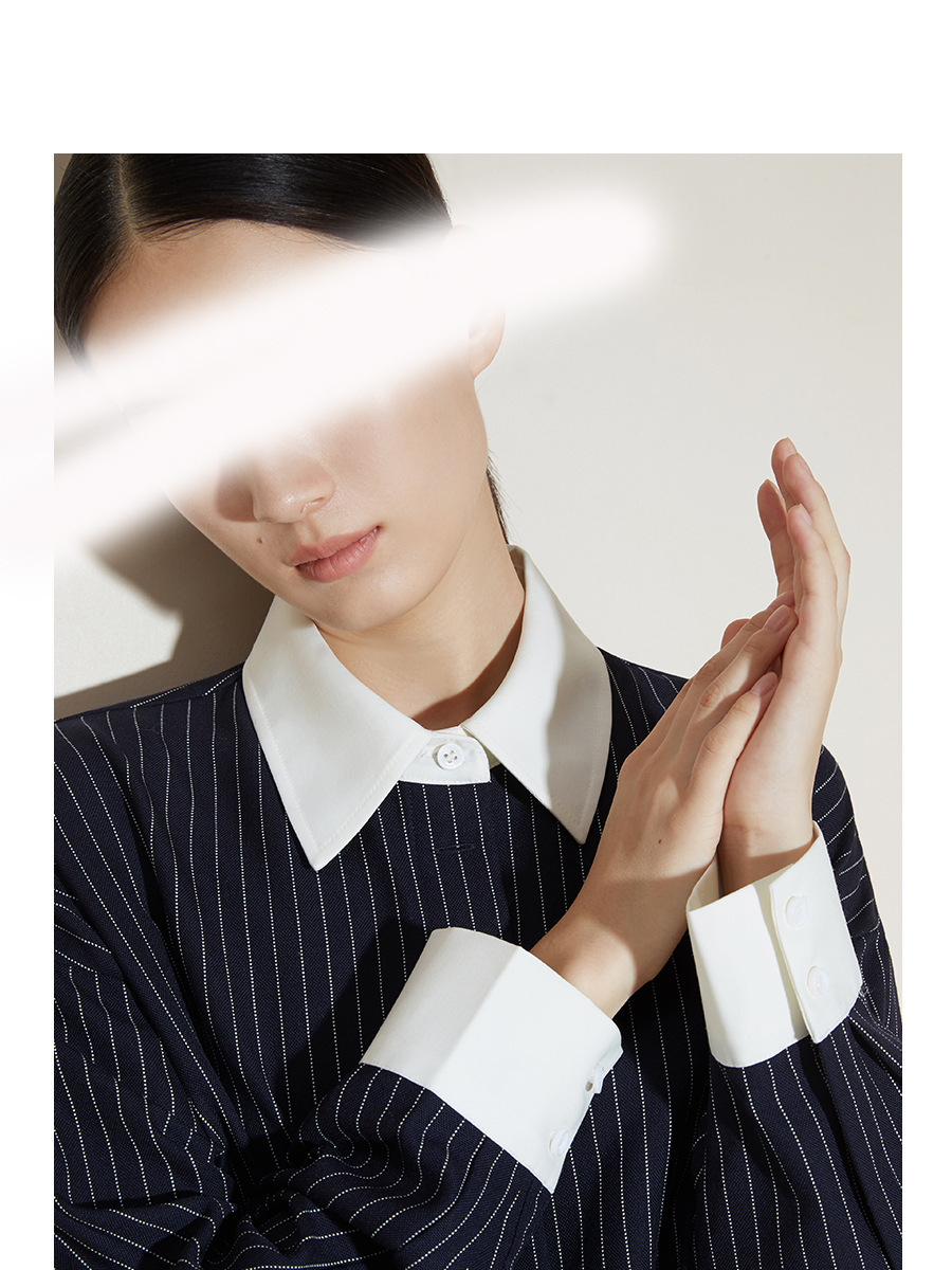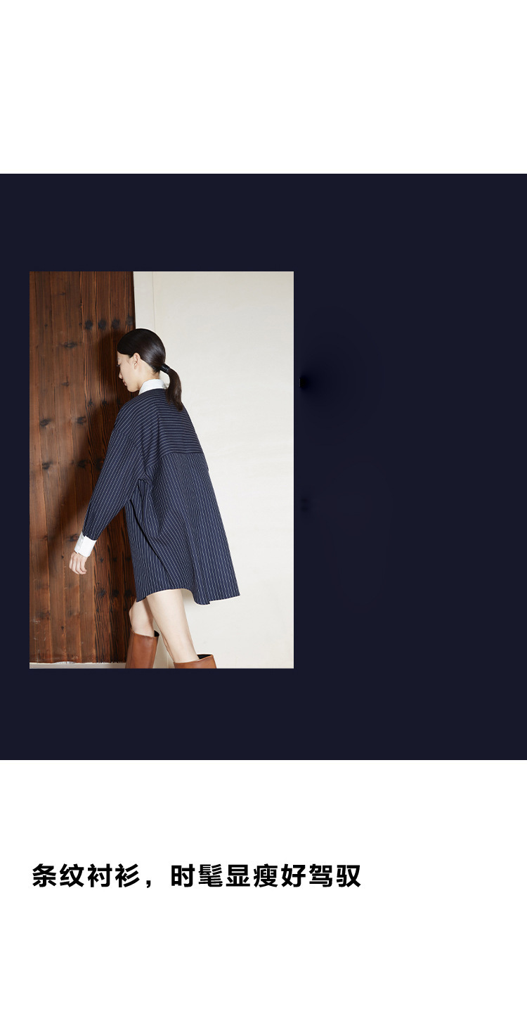 2024 새로운 가을 빈티지 스트라이프 셔츠 여성의 긴 외부 착용 느슨한 프로필 명암 셔츠 베이스 셔츠 원피스