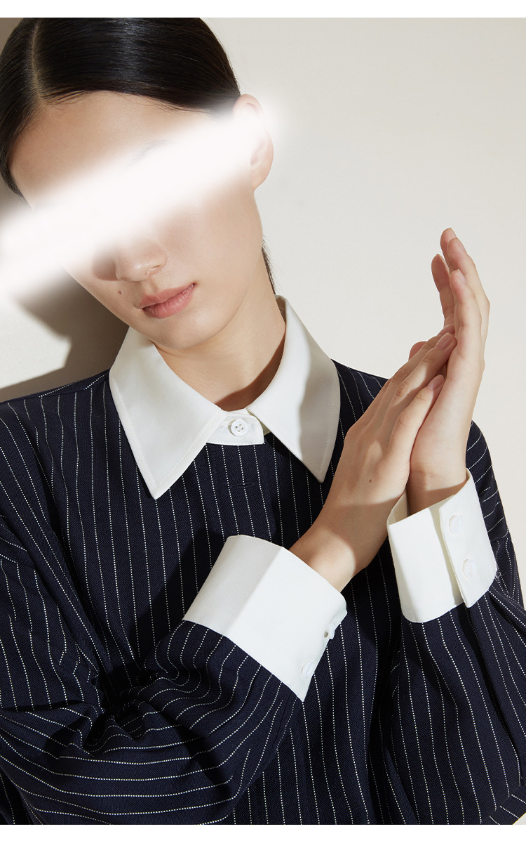 2024 새로운 가을 빈티지 스트라이프 셔츠 여성의 긴 외부 착용 느슨한 프로필 명암 셔츠 베이스 셔츠 원피스스토어 가기