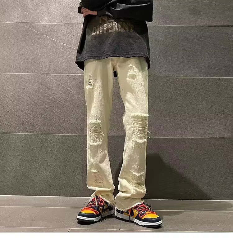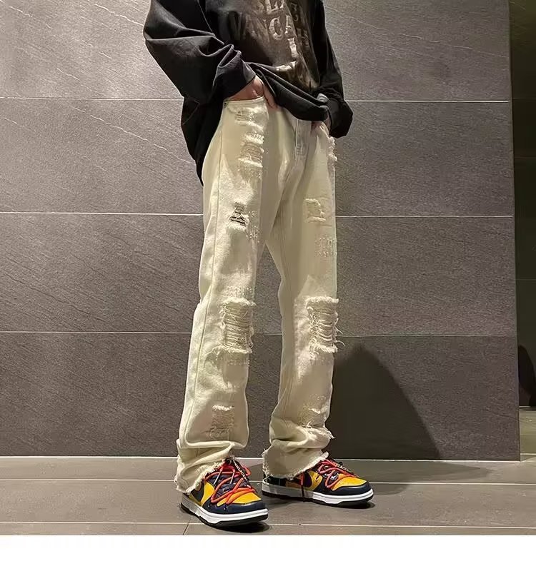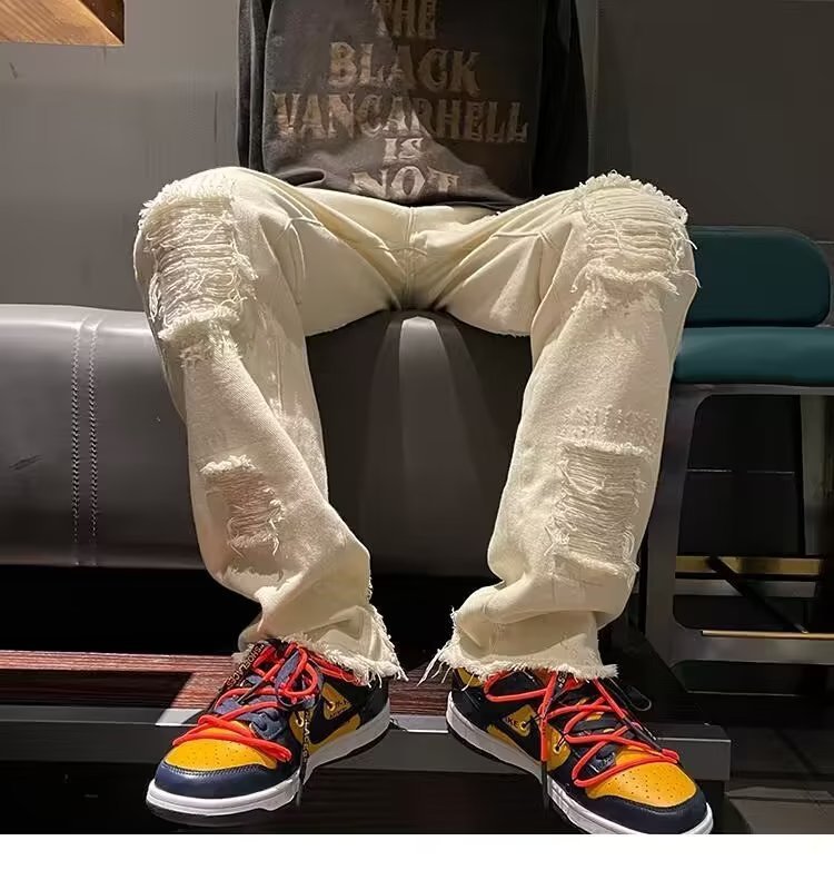 Ripped Rouge Jeans 남성용 봄과 여름 Ins 하이 스트리트 슬림 핏 스트레이트 팬츠 트렌디 브랜드 트렌디 한 미드 웨이스트 캐주얼 바지