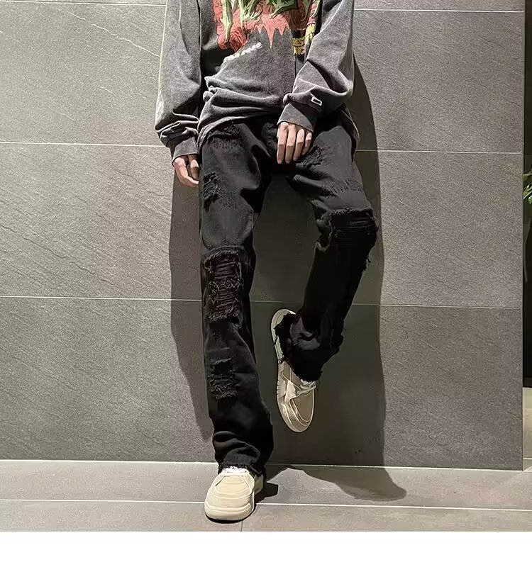 Ripped Rouge Jeans 남성용 봄과 여름 Ins 하이 스트리트 슬림 핏 스트레이트 팬츠 트렌디 브랜드 트렌디 한 미드 웨이스트 캐주얼 바지스토어 가기