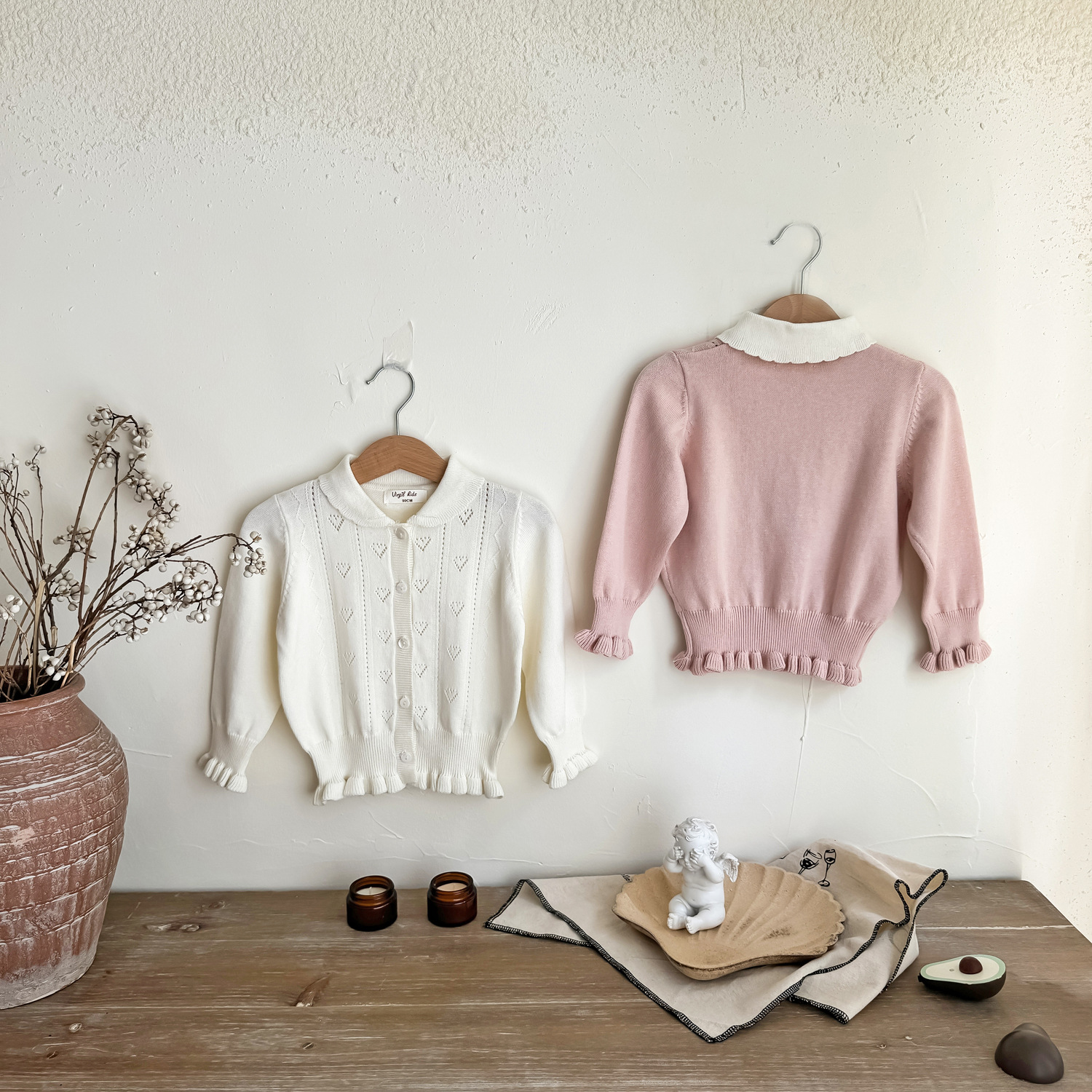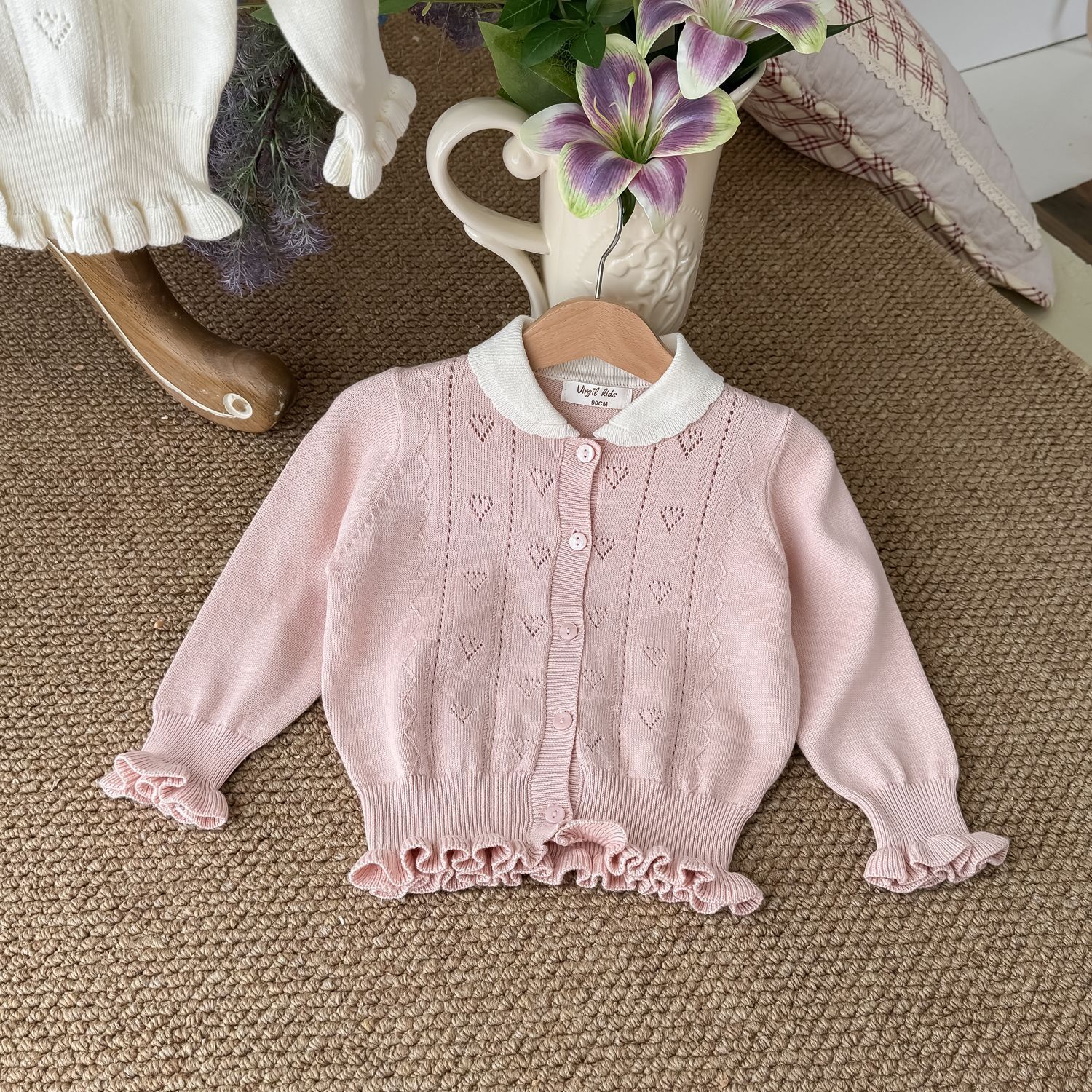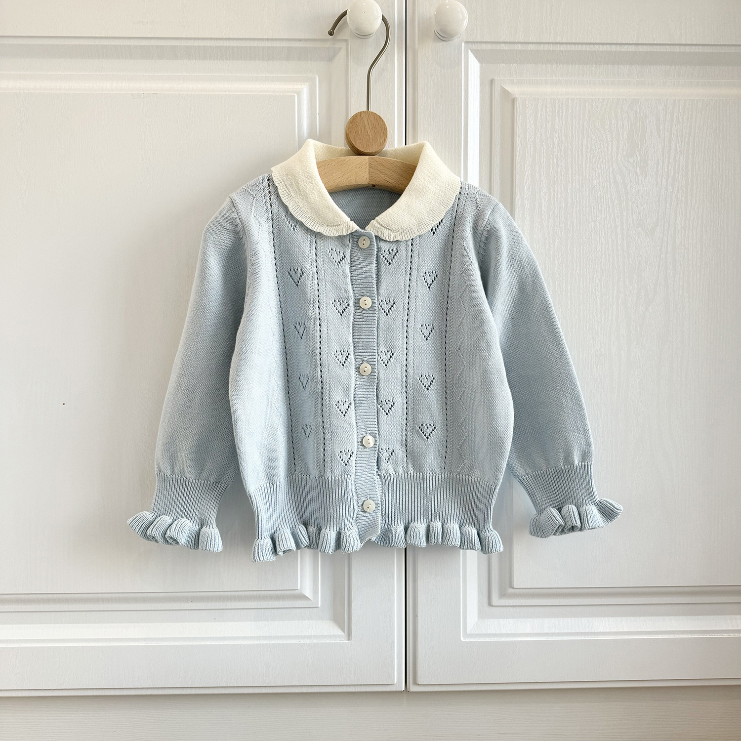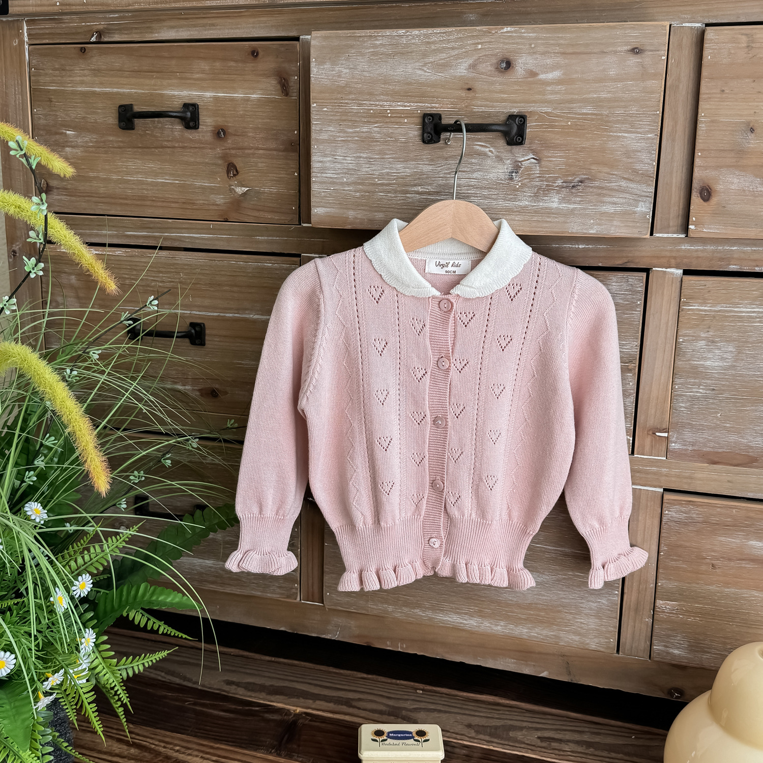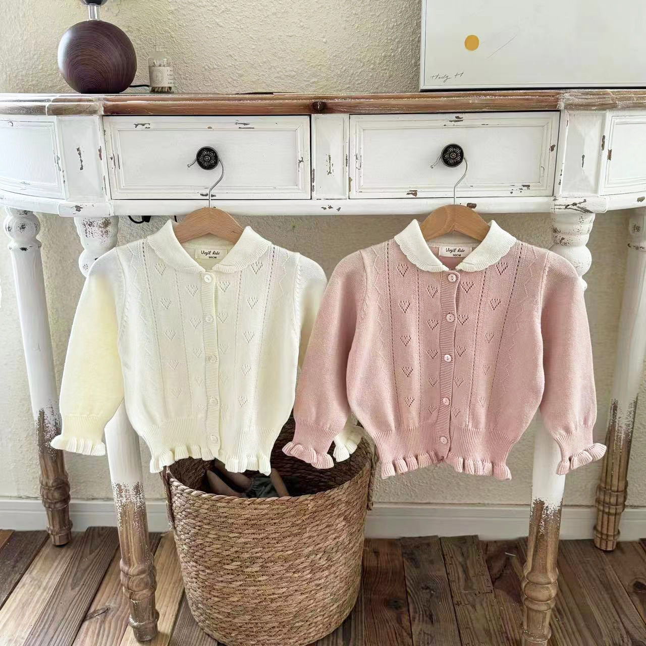 봄 여아 가디건 미우 한국판 여아 인형 칼라 가디건 귀엽고 달콤한 발레 스타일 니트 탑
