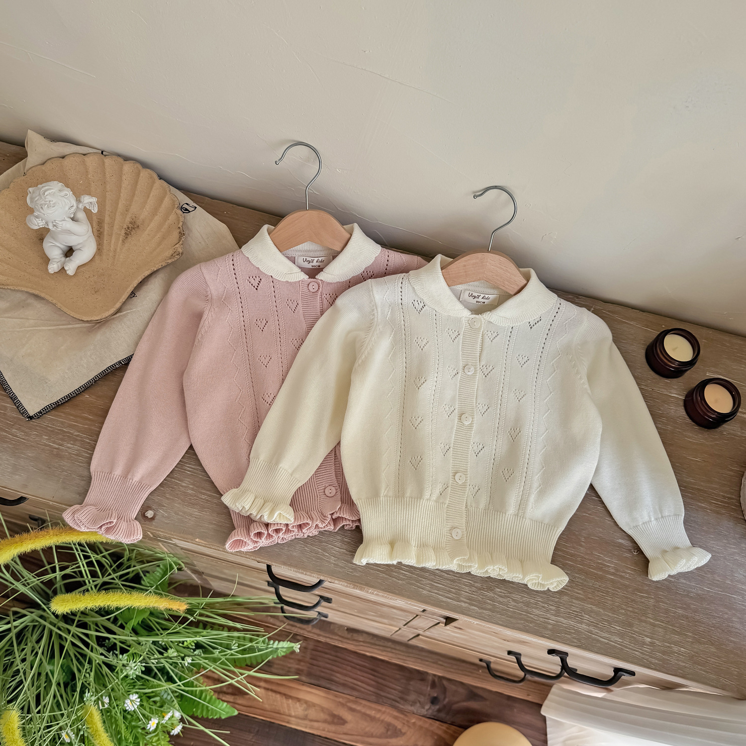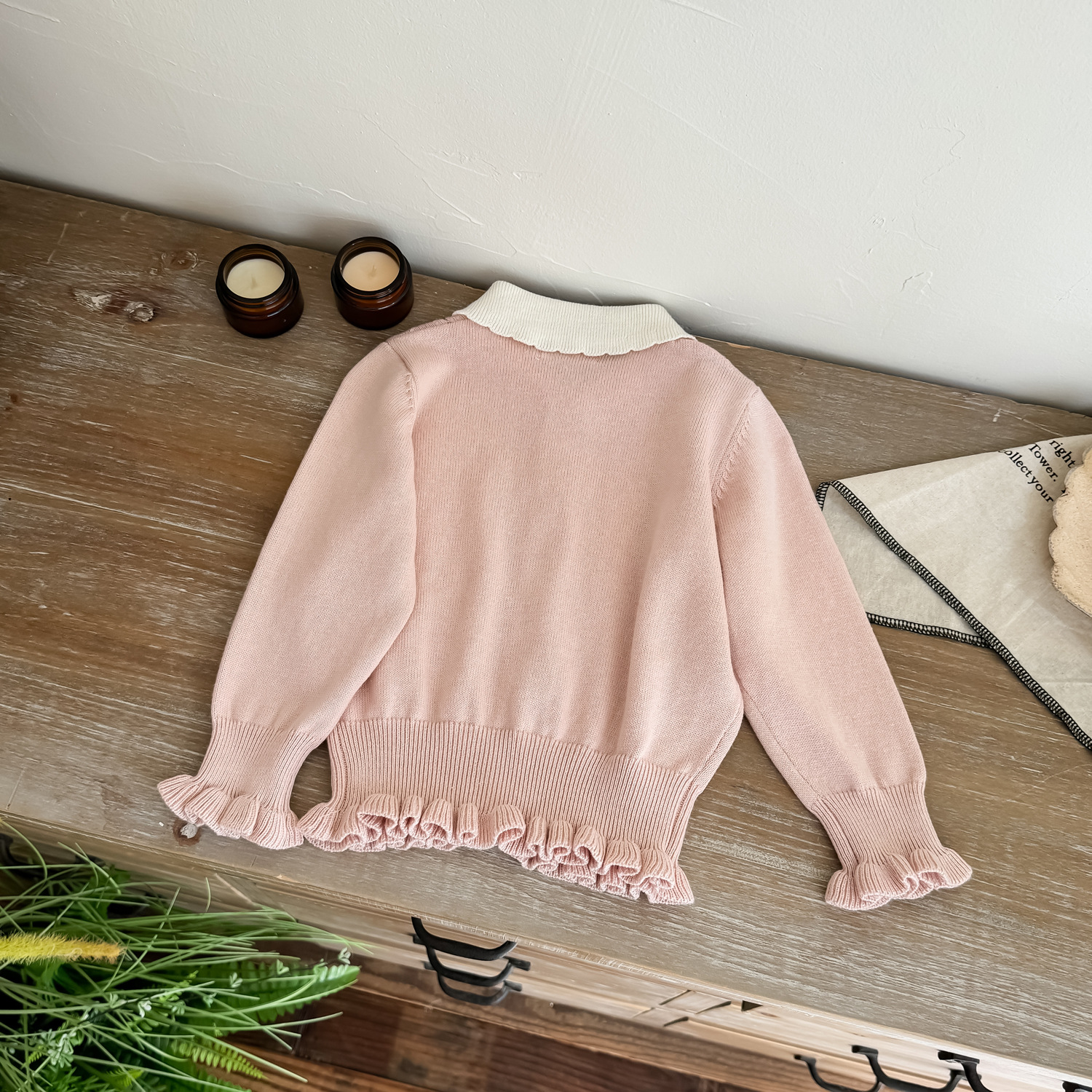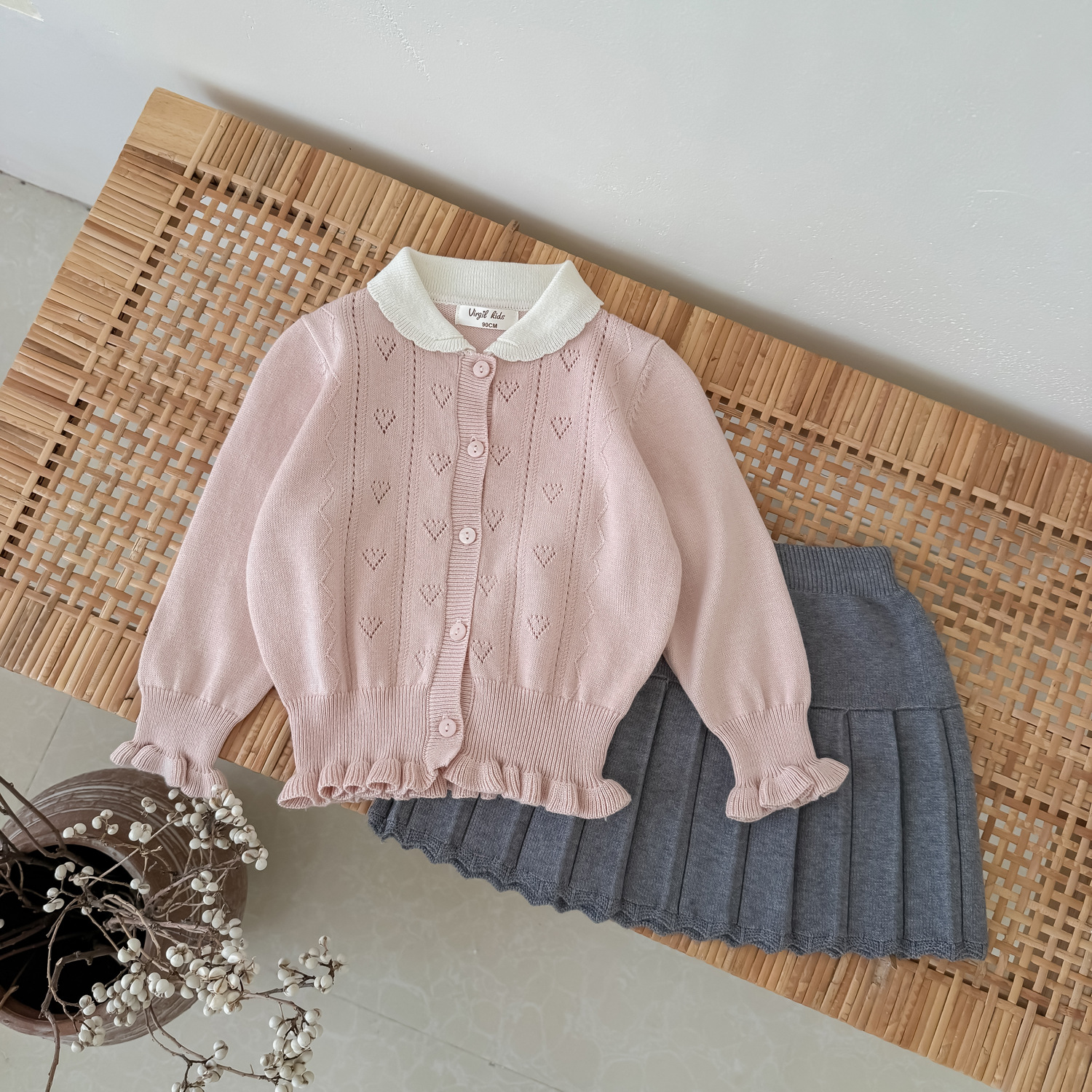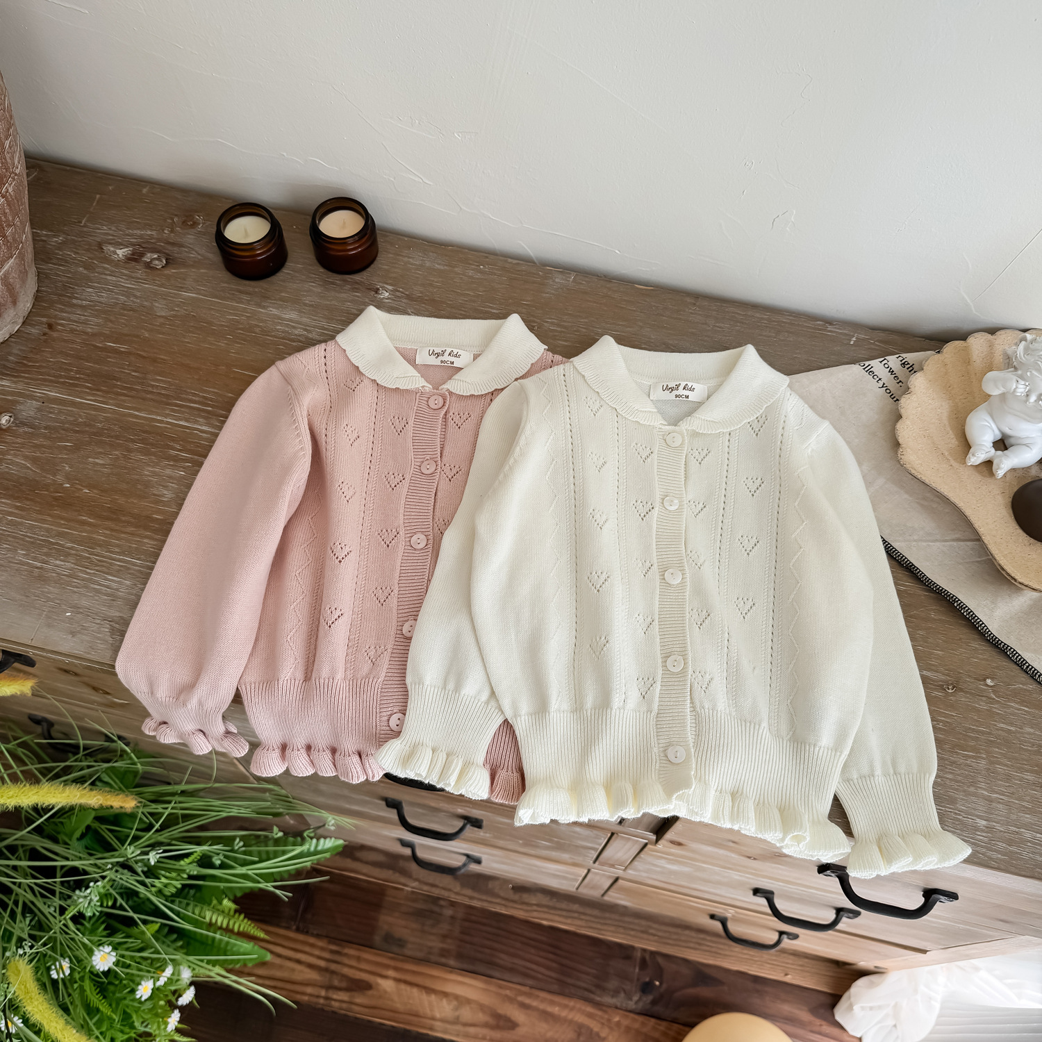 봄 여아 가디건 미우 한국판 여아 인형 칼라 가디건 귀엽고 달콤한 발레 스타일 니트 탑