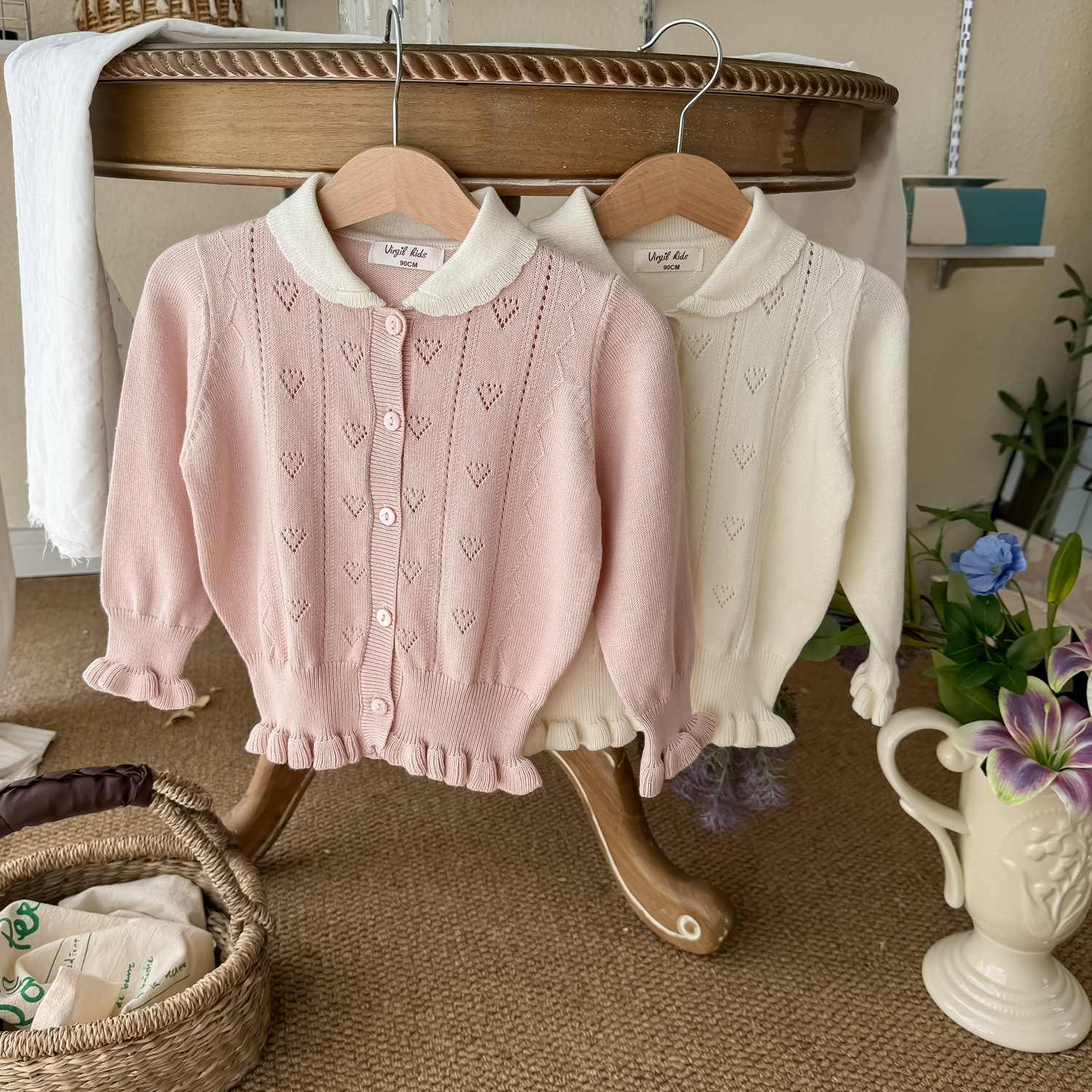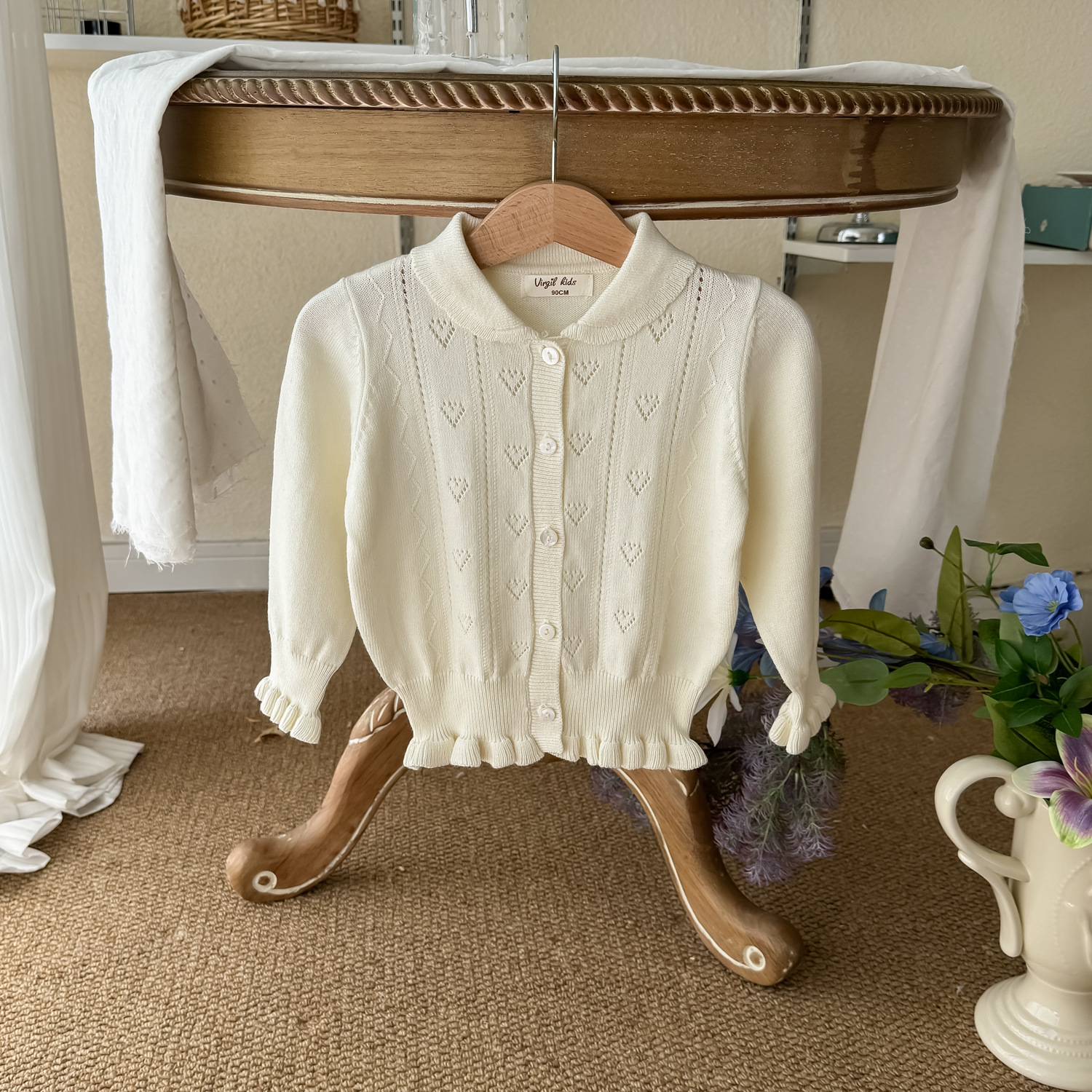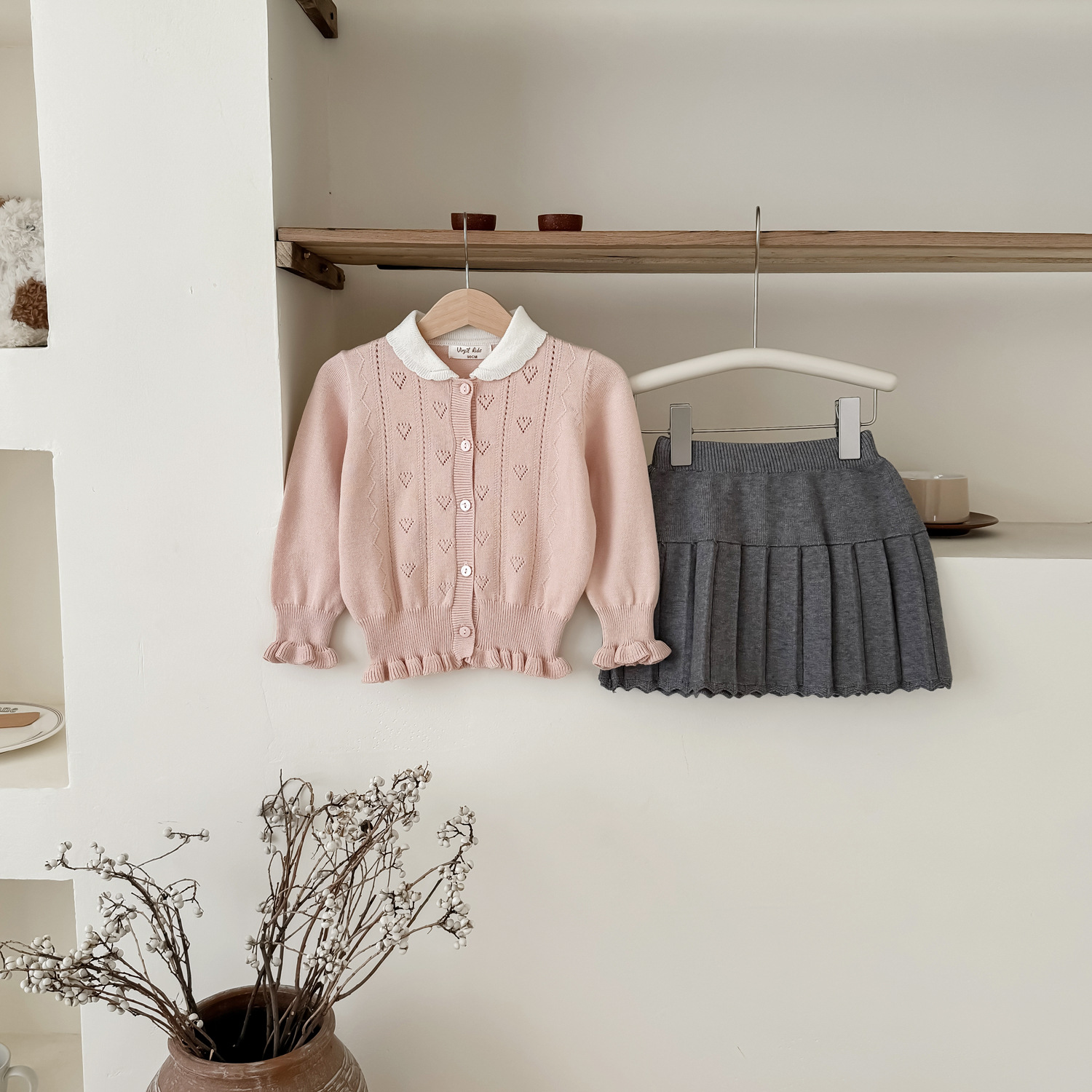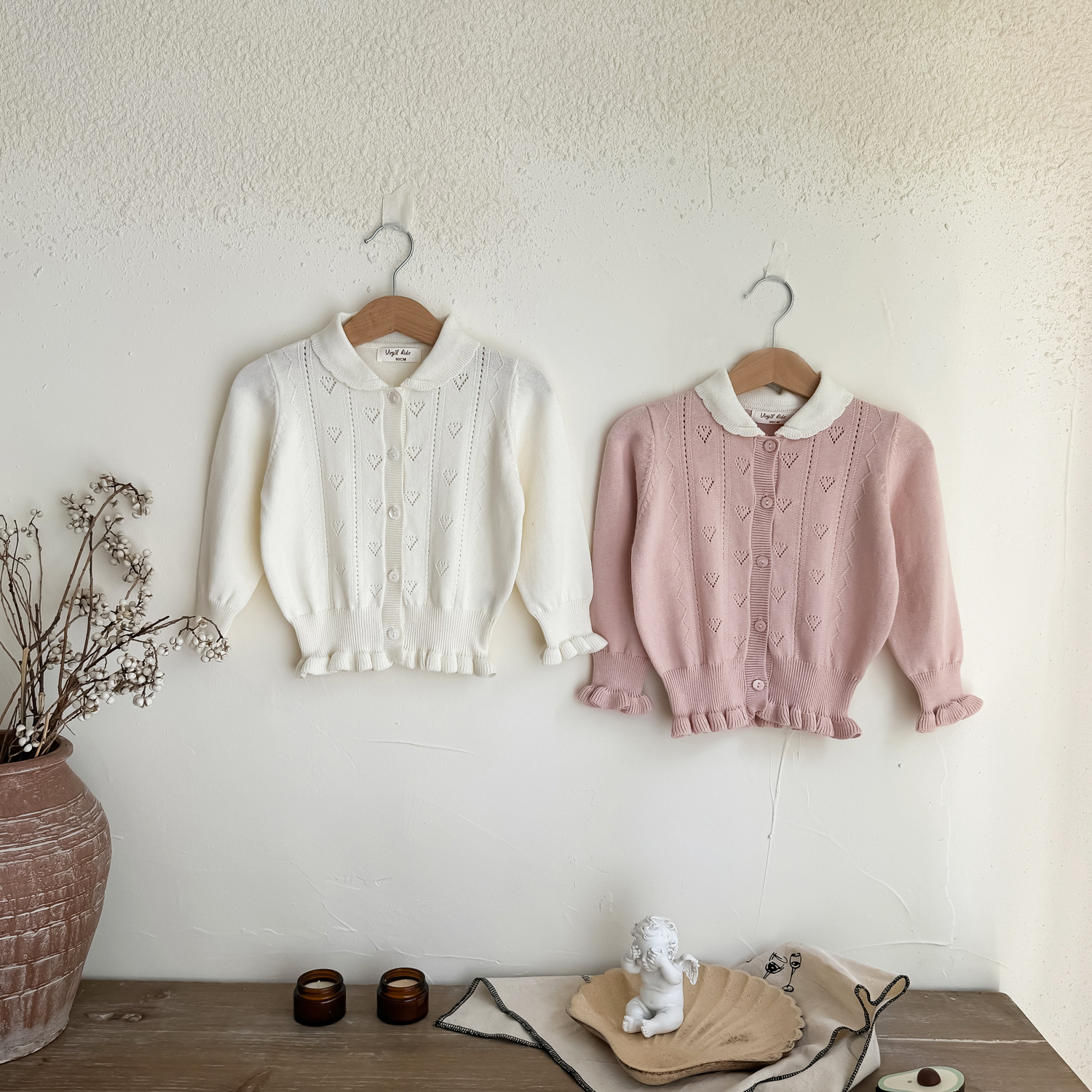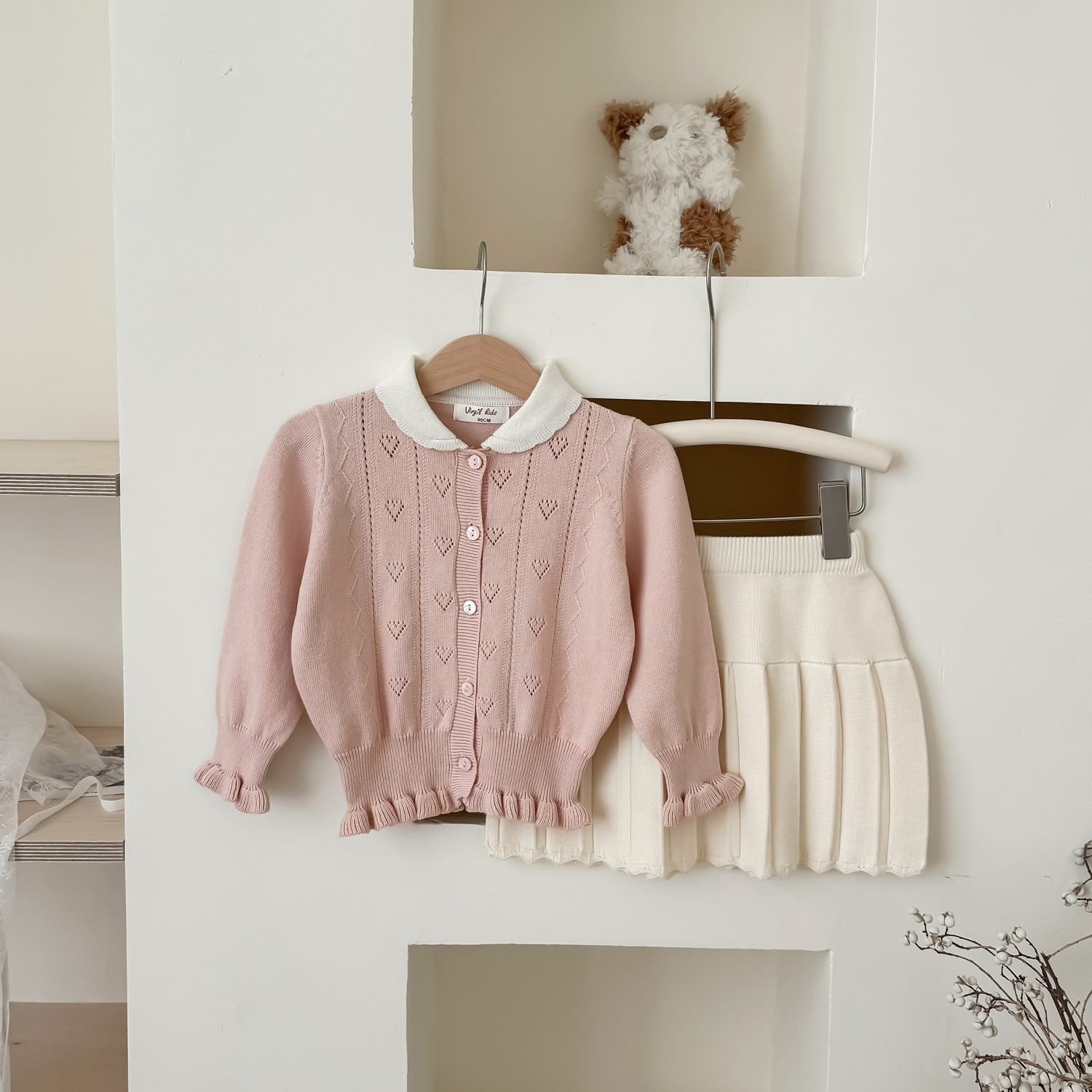 봄 여아 가디건 미우 한국판 여아 인형 칼라 가디건 귀엽고 달콤한 발레 스타일 니트 탑