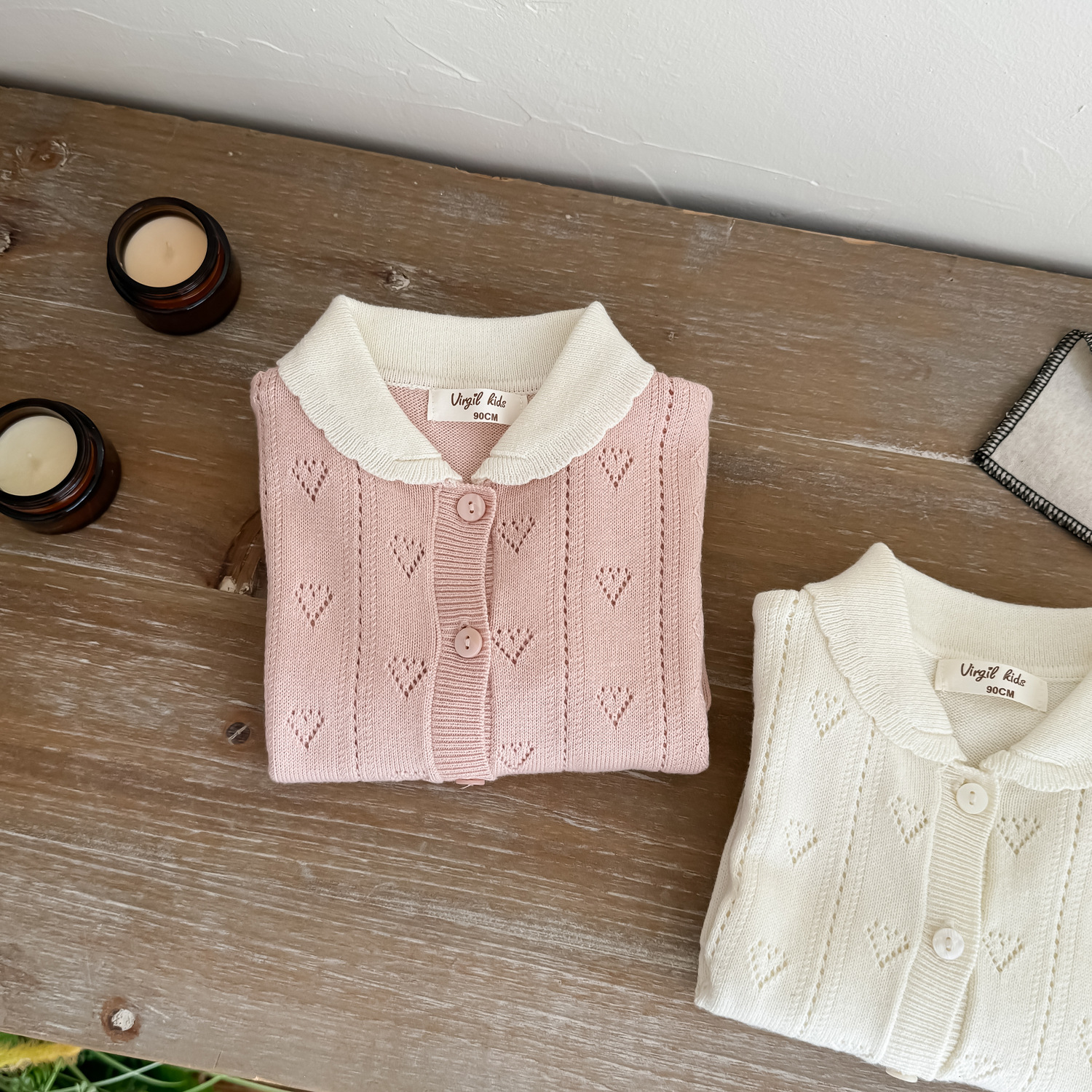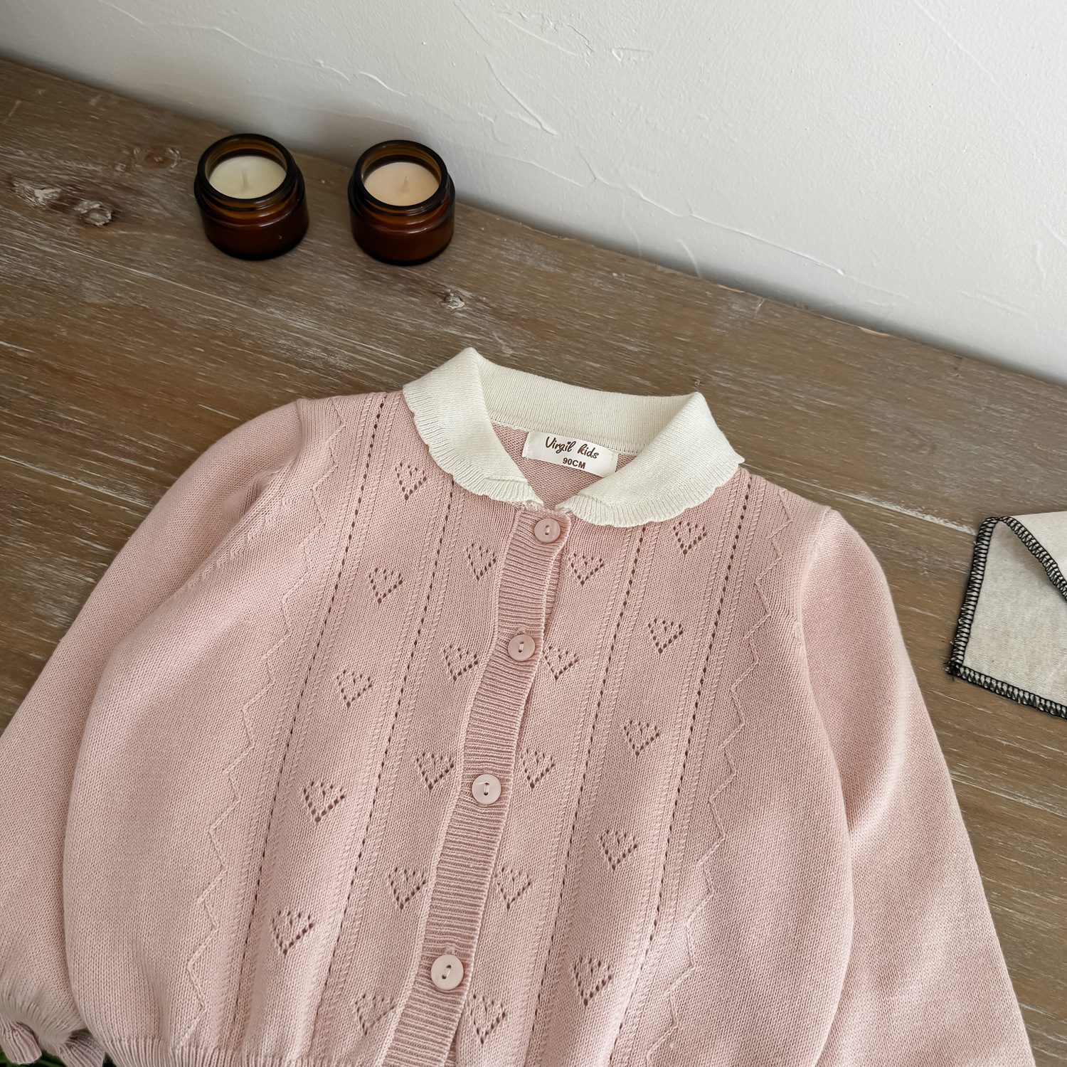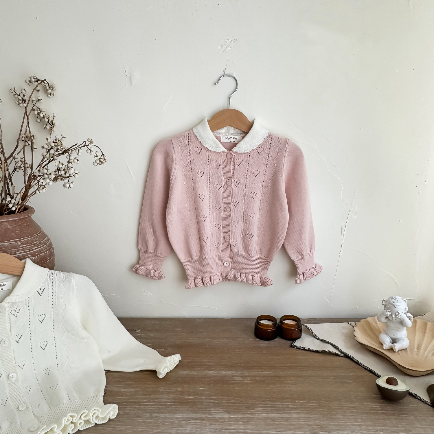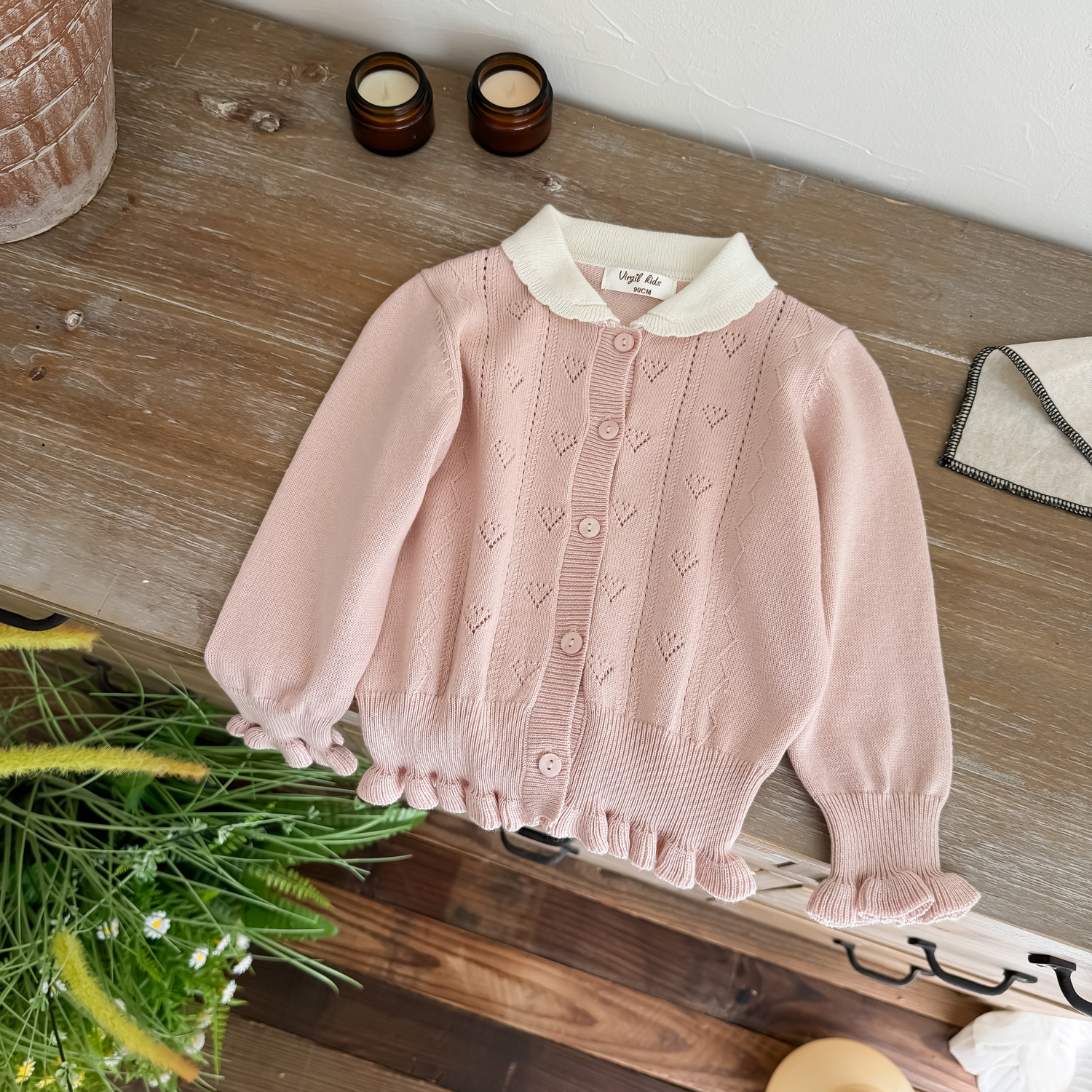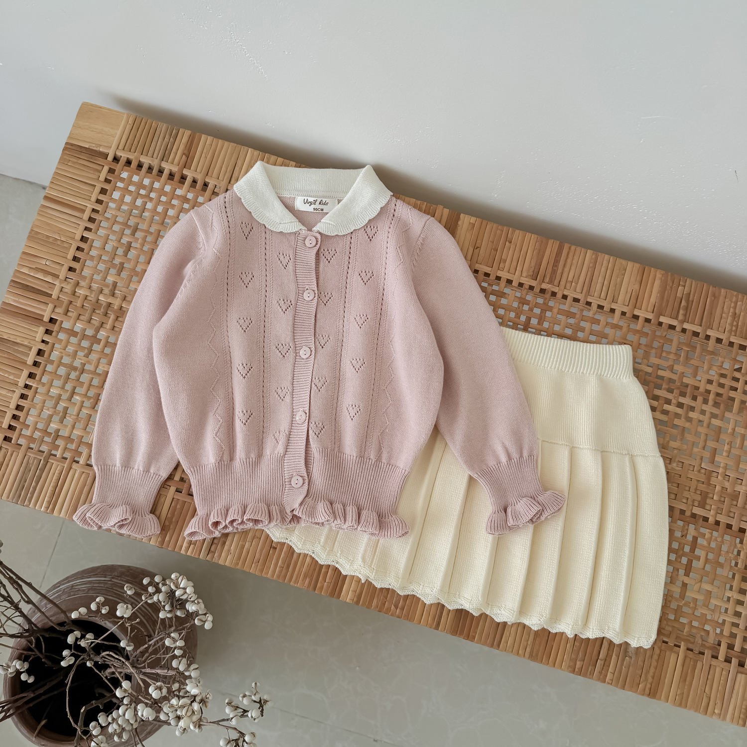 봄 여아 가디건 미우 한국판 여아 인형 칼라 가디건 귀엽고 달콤한 발레 스타일 니트 탑