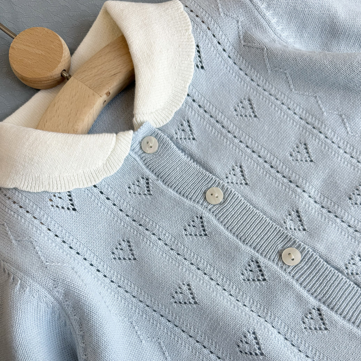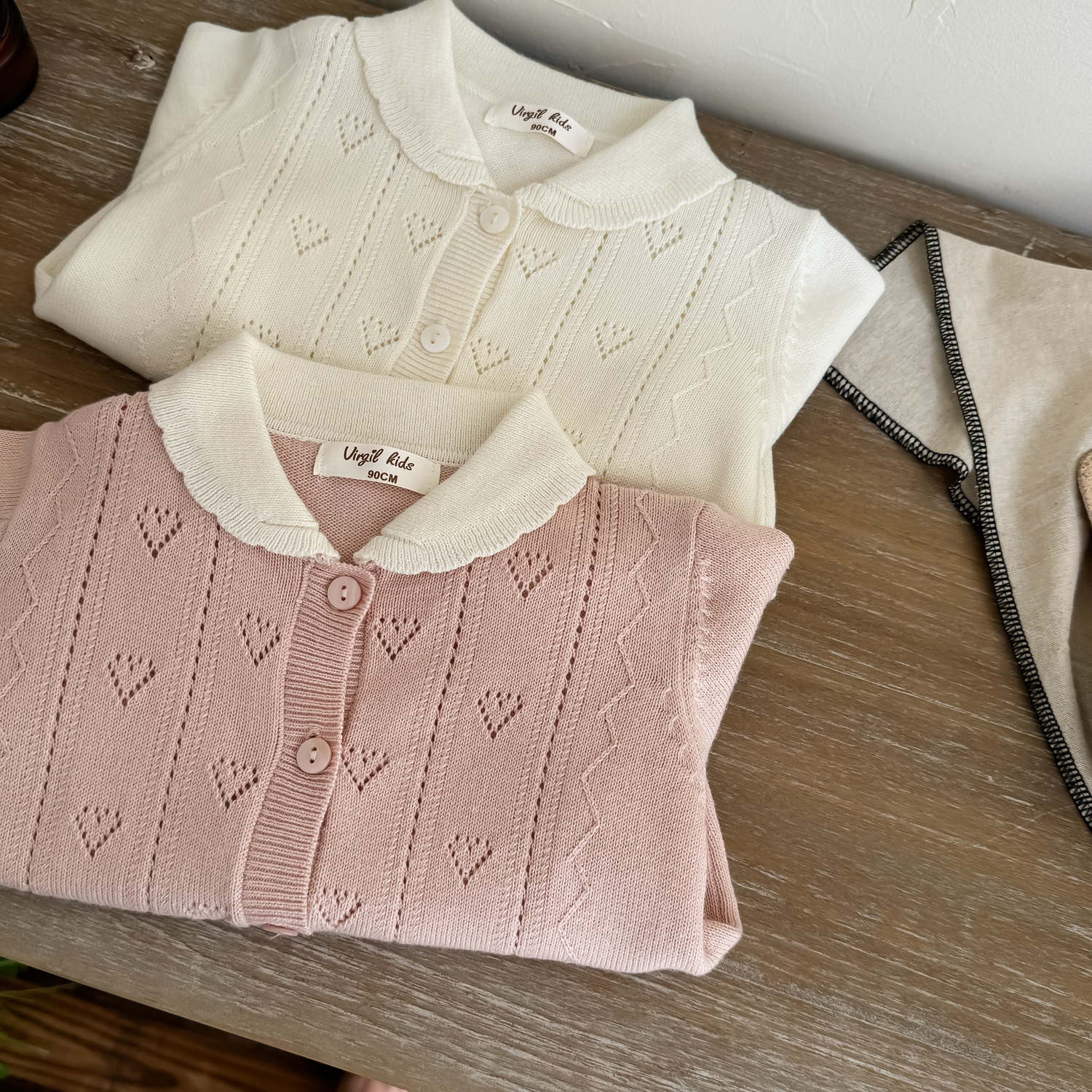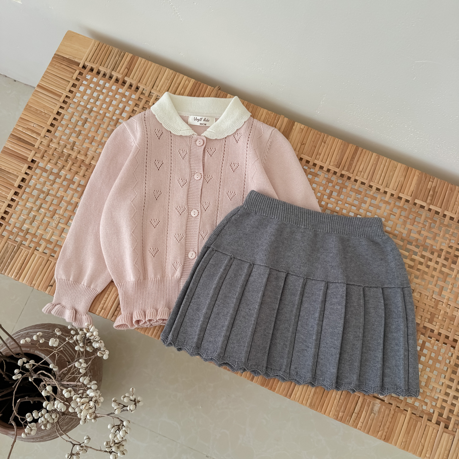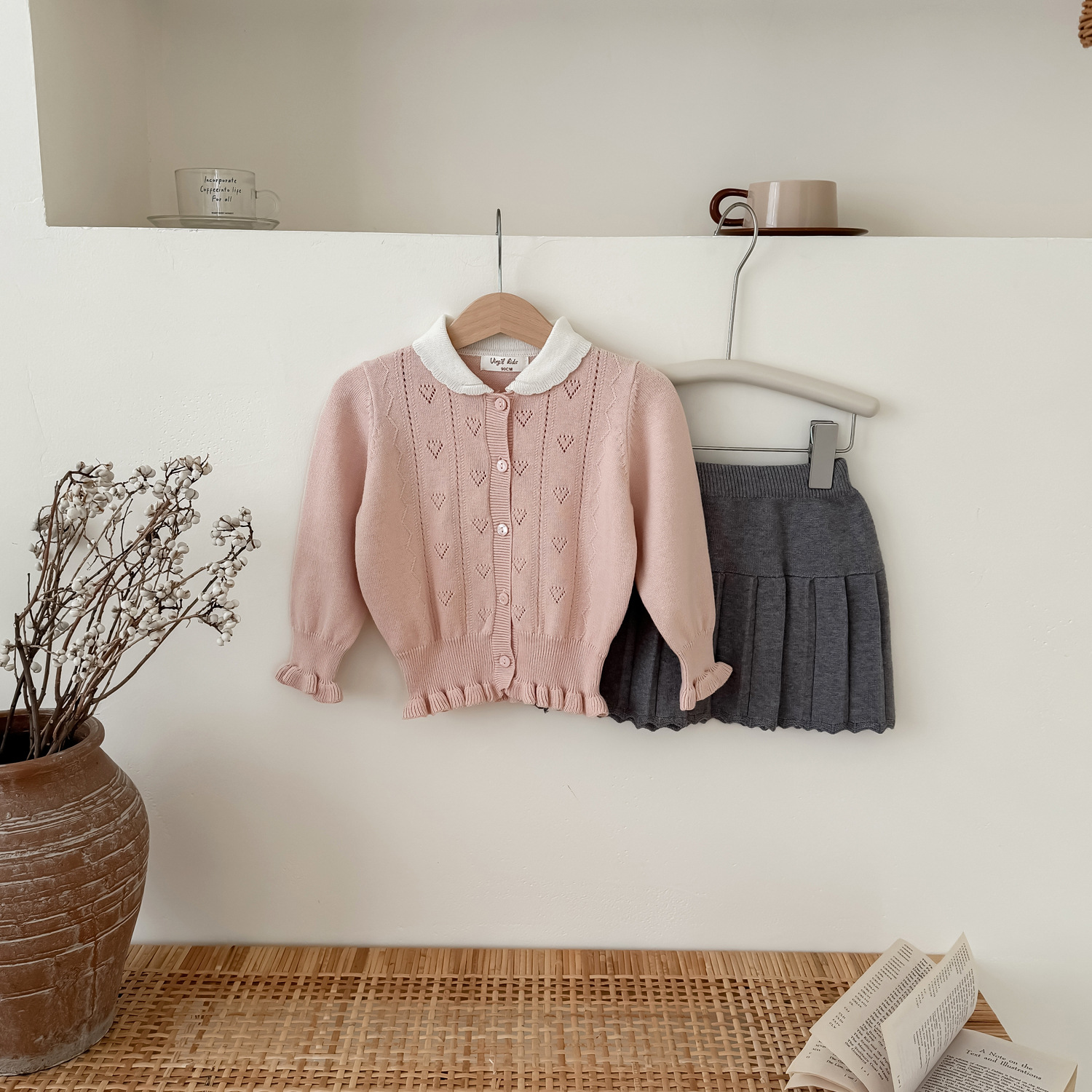 봄 여아 가디건 미우 한국판 여아 인형 칼라 가디건 귀엽고 달콤한 발레 스타일 니트 탑