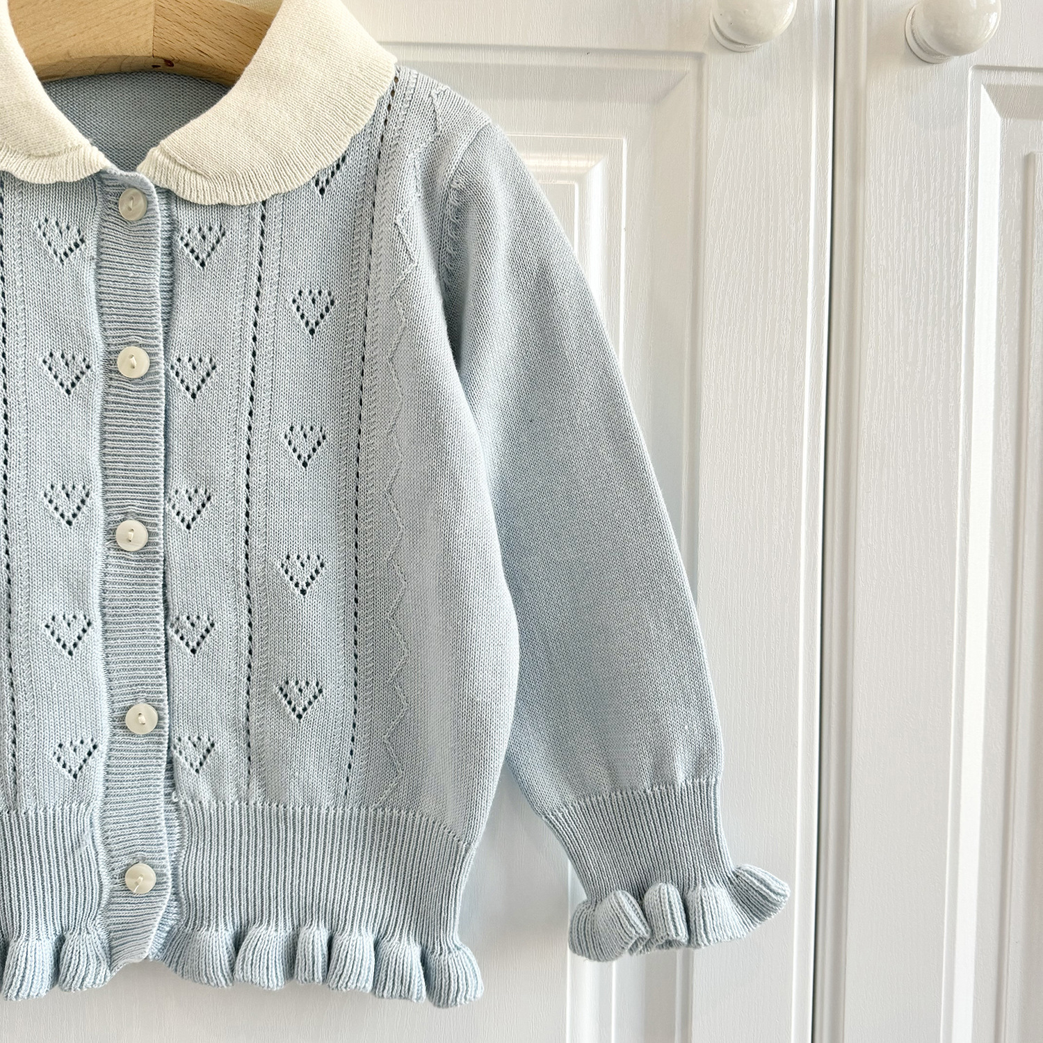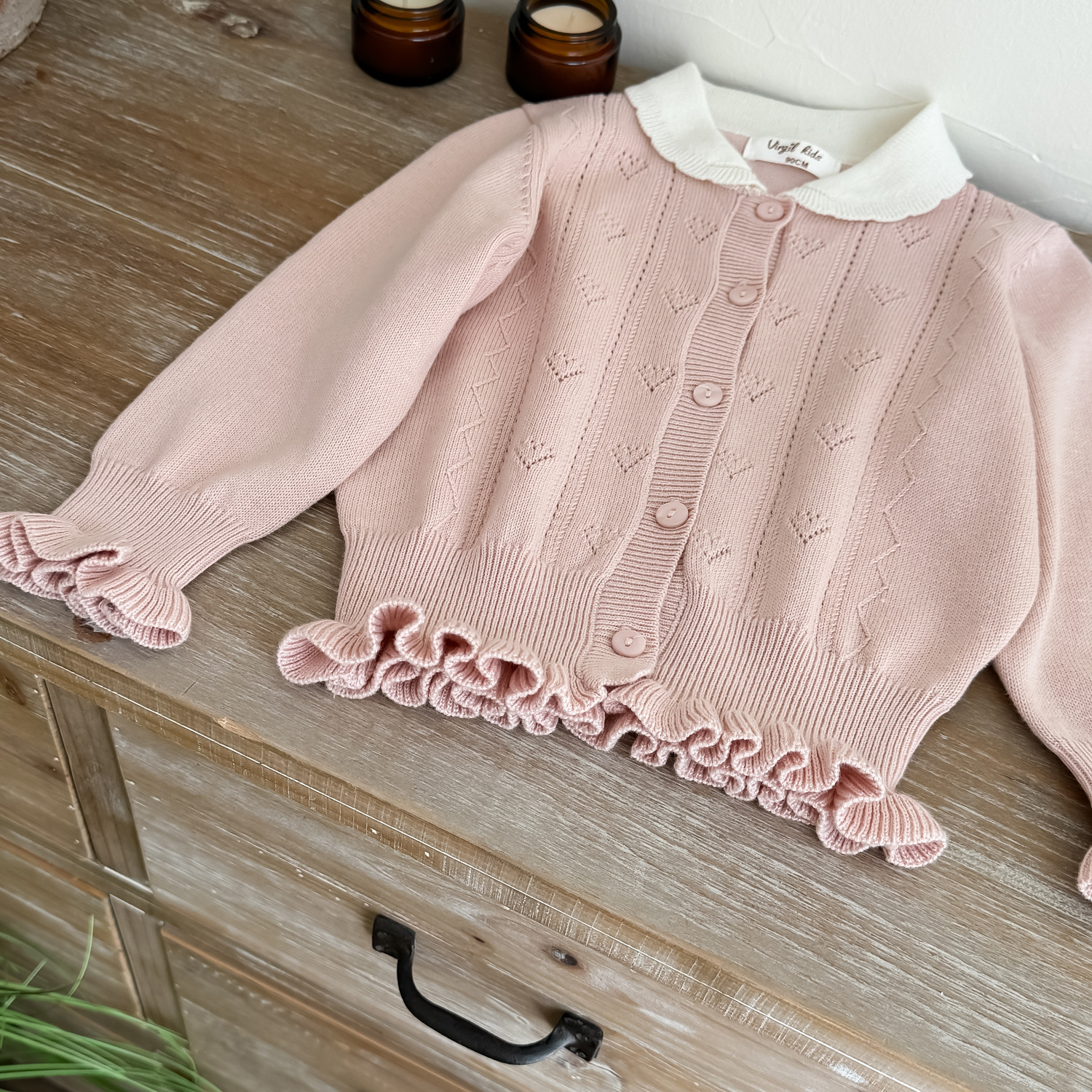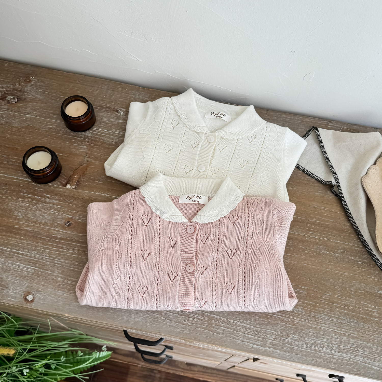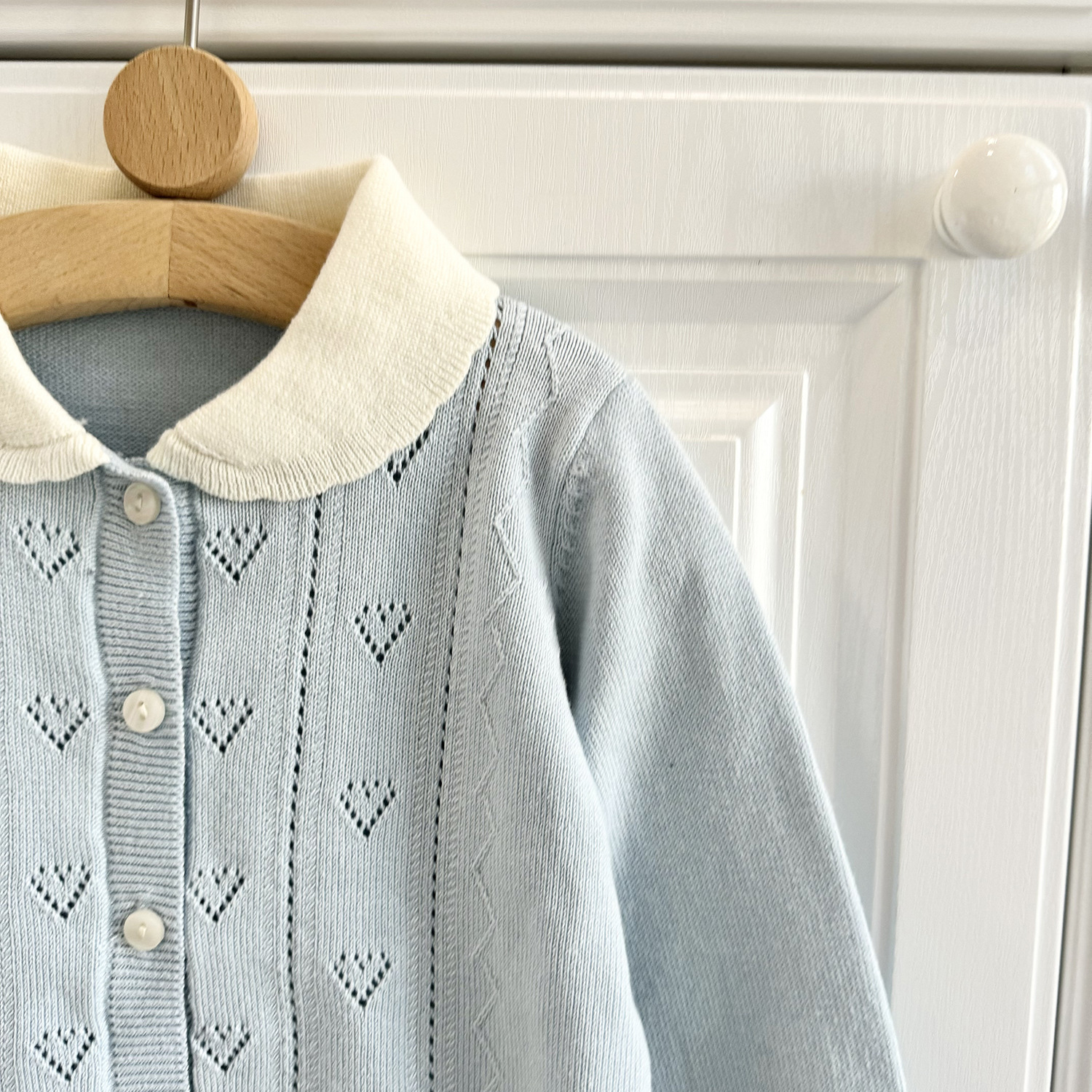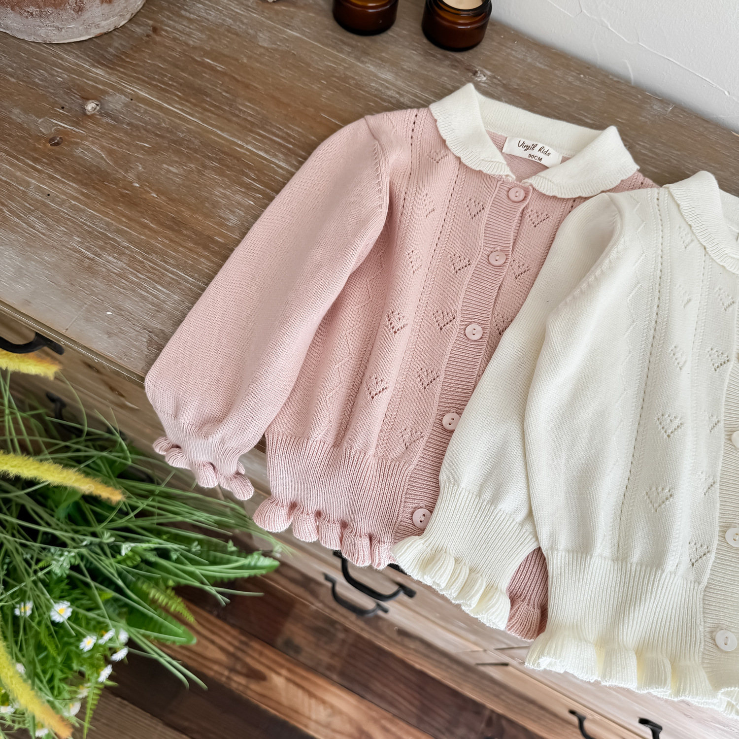 봄 여아 가디건 미우 한국판 여아 인형 칼라 가디건 귀엽고 달콤한 발레 스타일 니트 탑