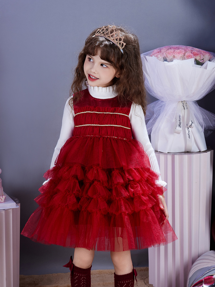 가을, 겨울 새 여자 드레스 로리타 어린이 공주 드레스 가을 드레스 빨간색 새해 드레스