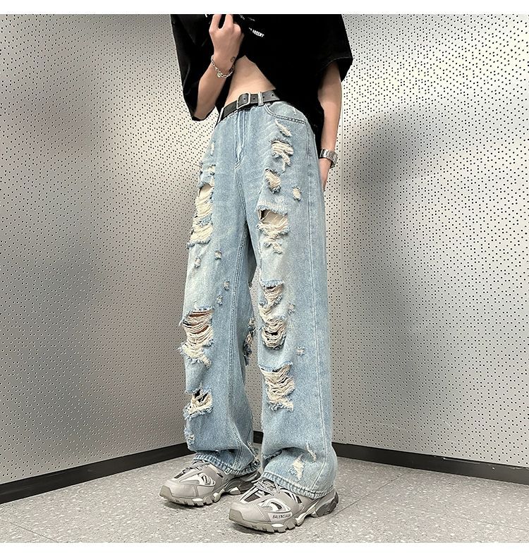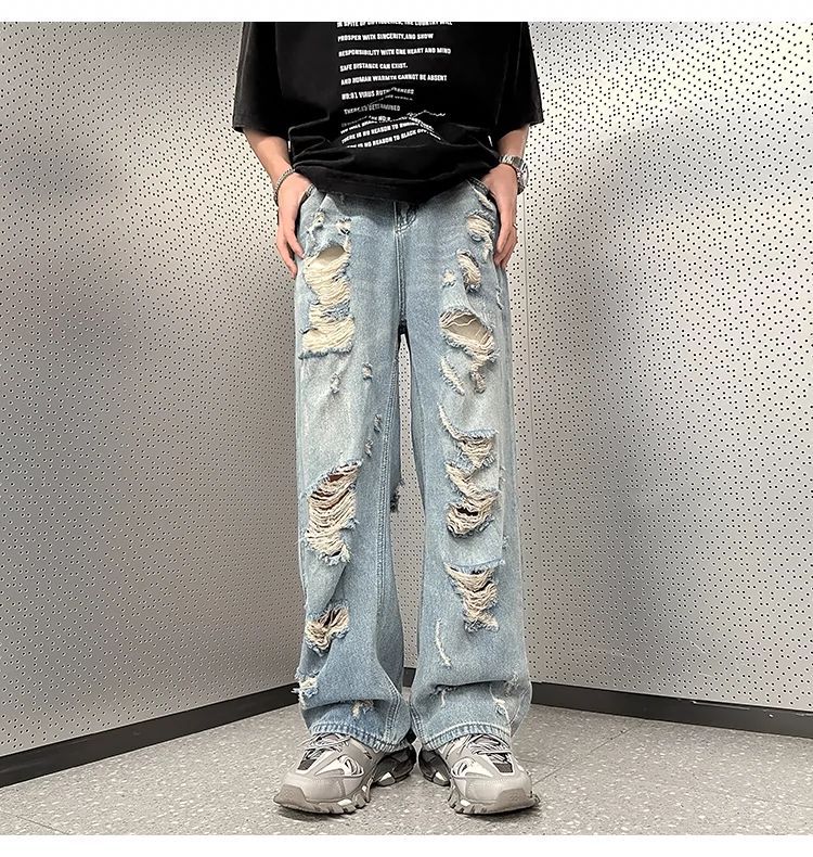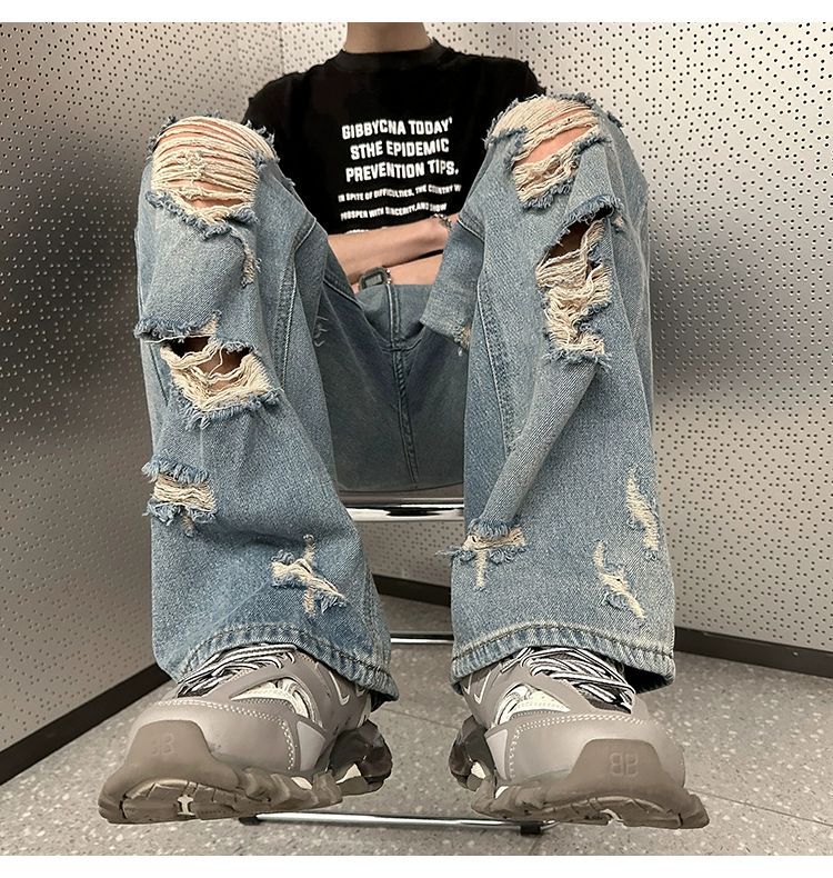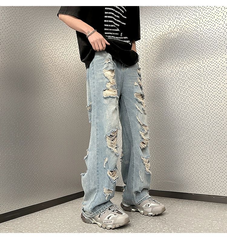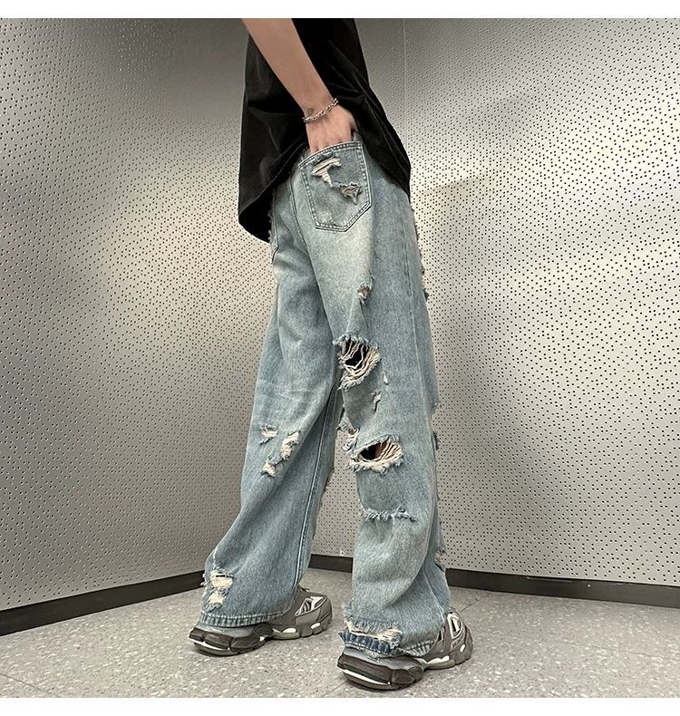 미국식 하이 스트리트 분위기 스타일 바지 유럽과 미국식 잘 생긴 빈티지 찢어진 청바지 미국식 복고풍 거지 바지 남성스토어 가기