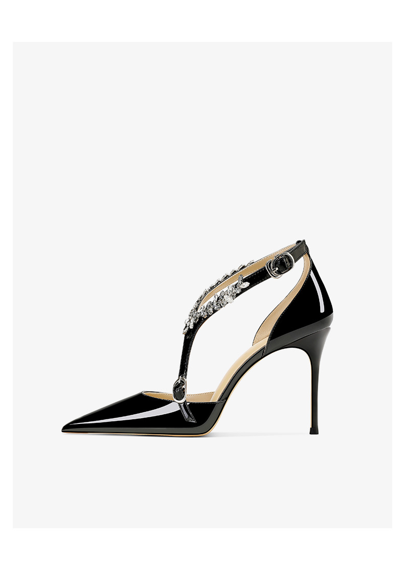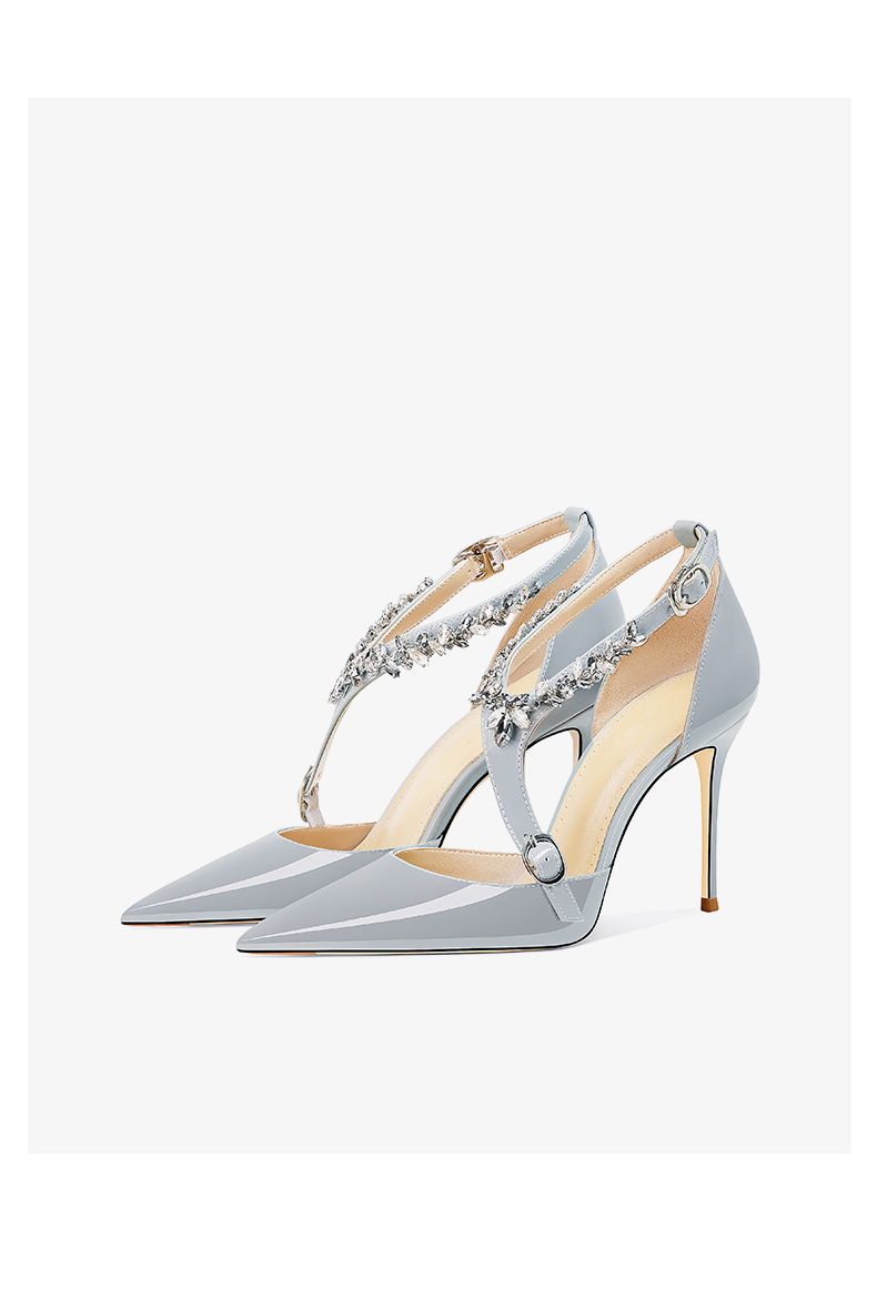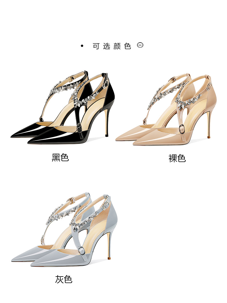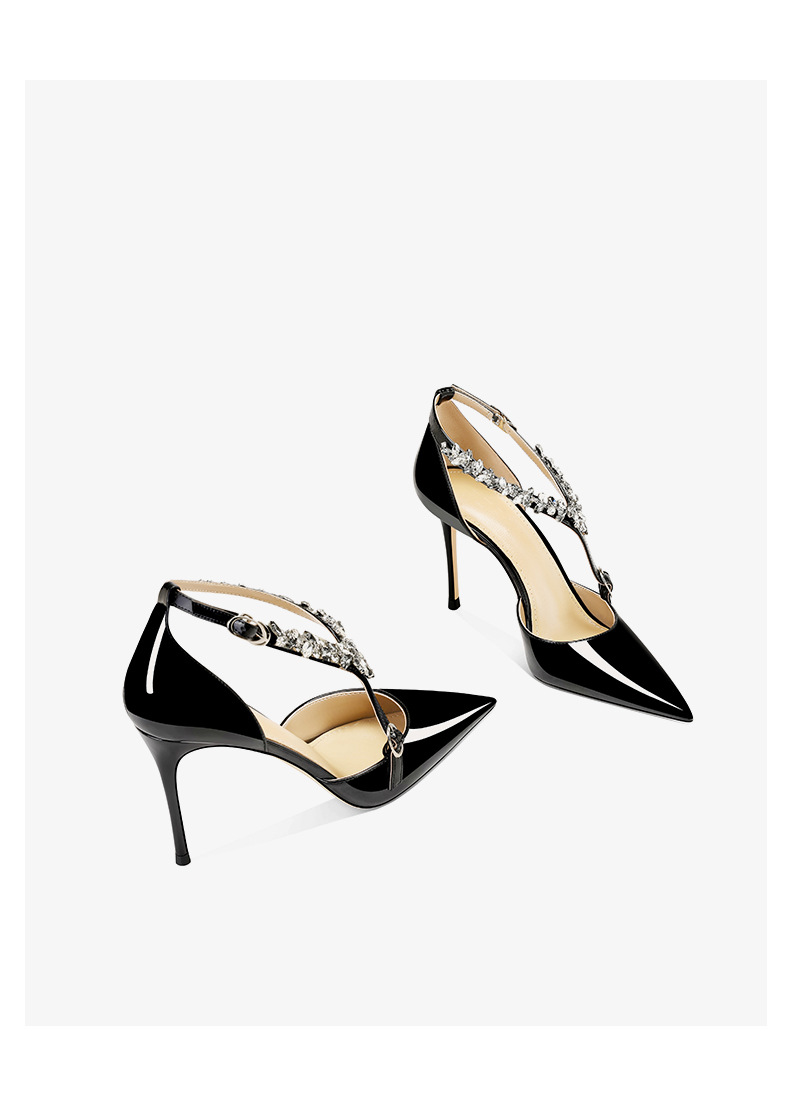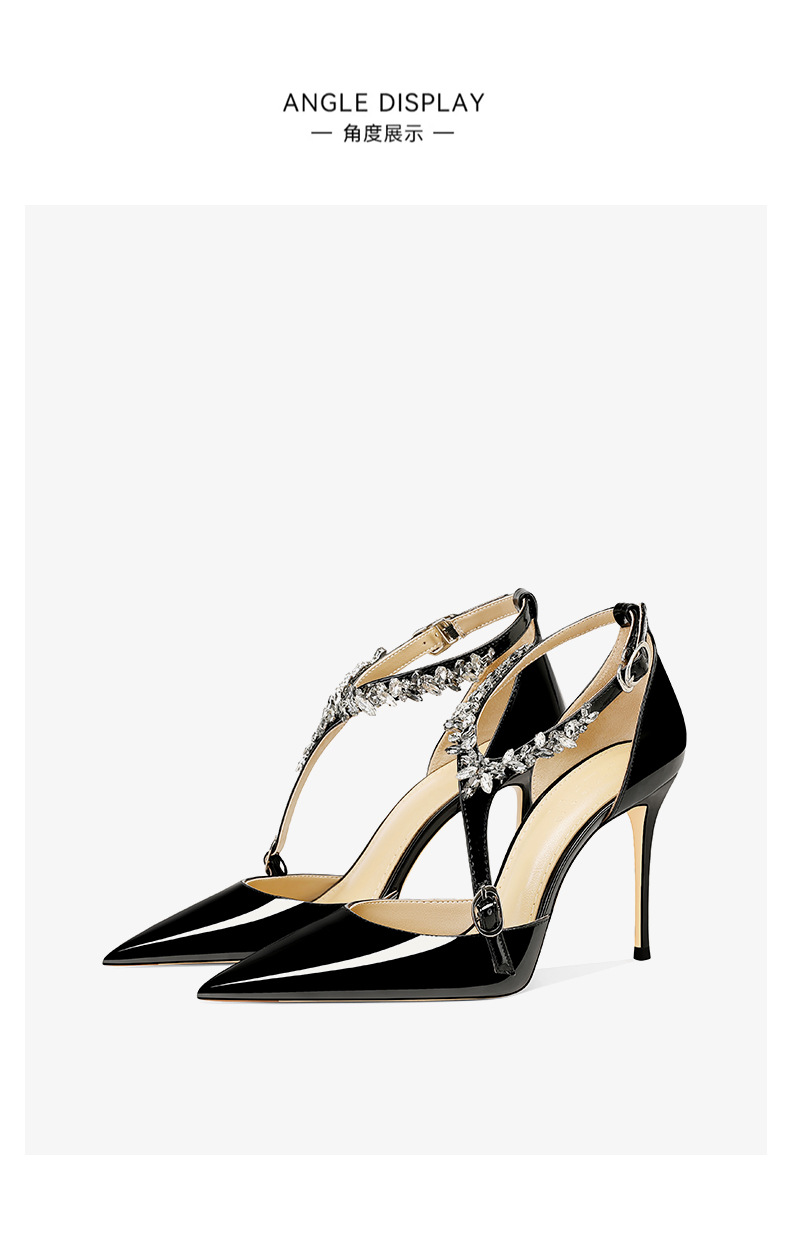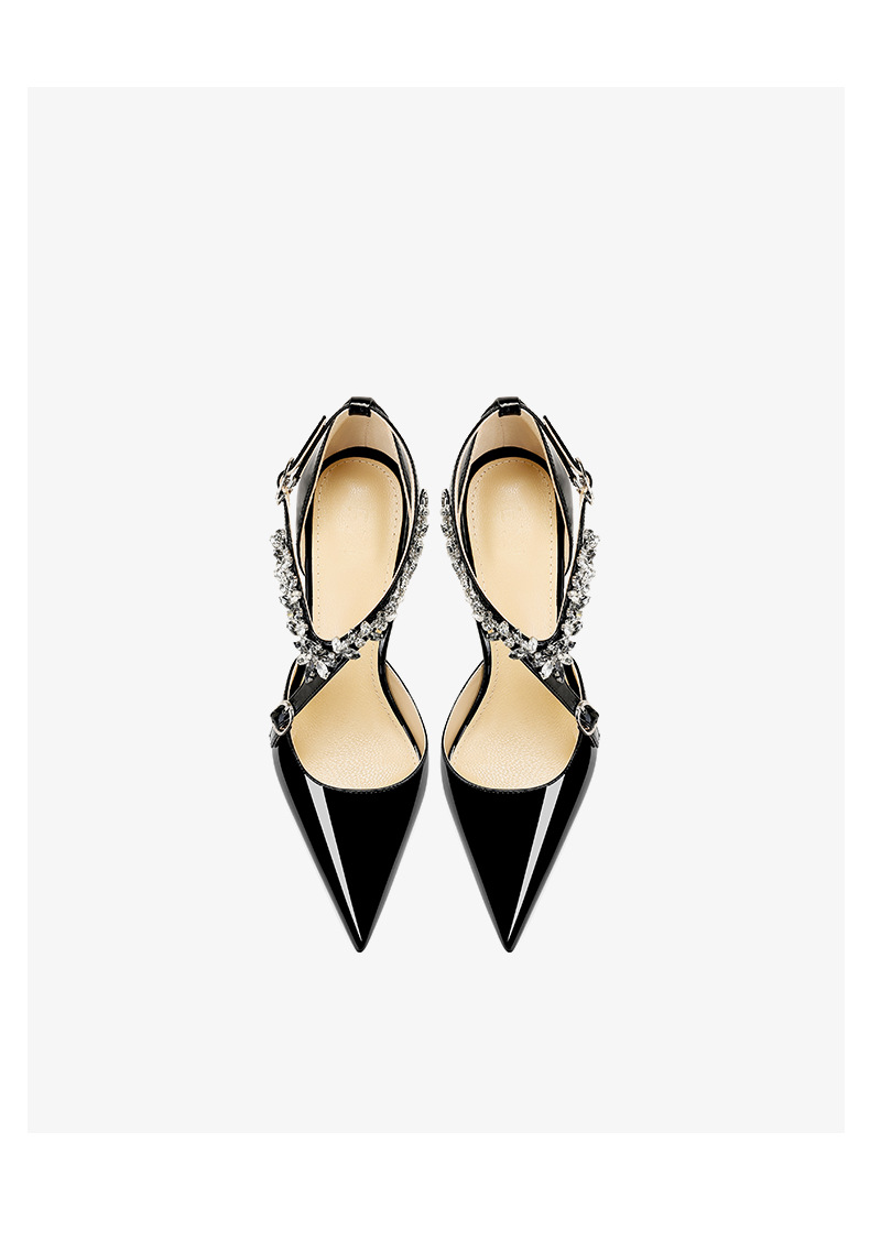 플러스 사이즈 정품 가죽 라인스톤 하이힐 슈즈 2024 새 여름 올매치 포인티드 스틸레토 힐 버클 스트랩 여성용 샌들스토어 가기