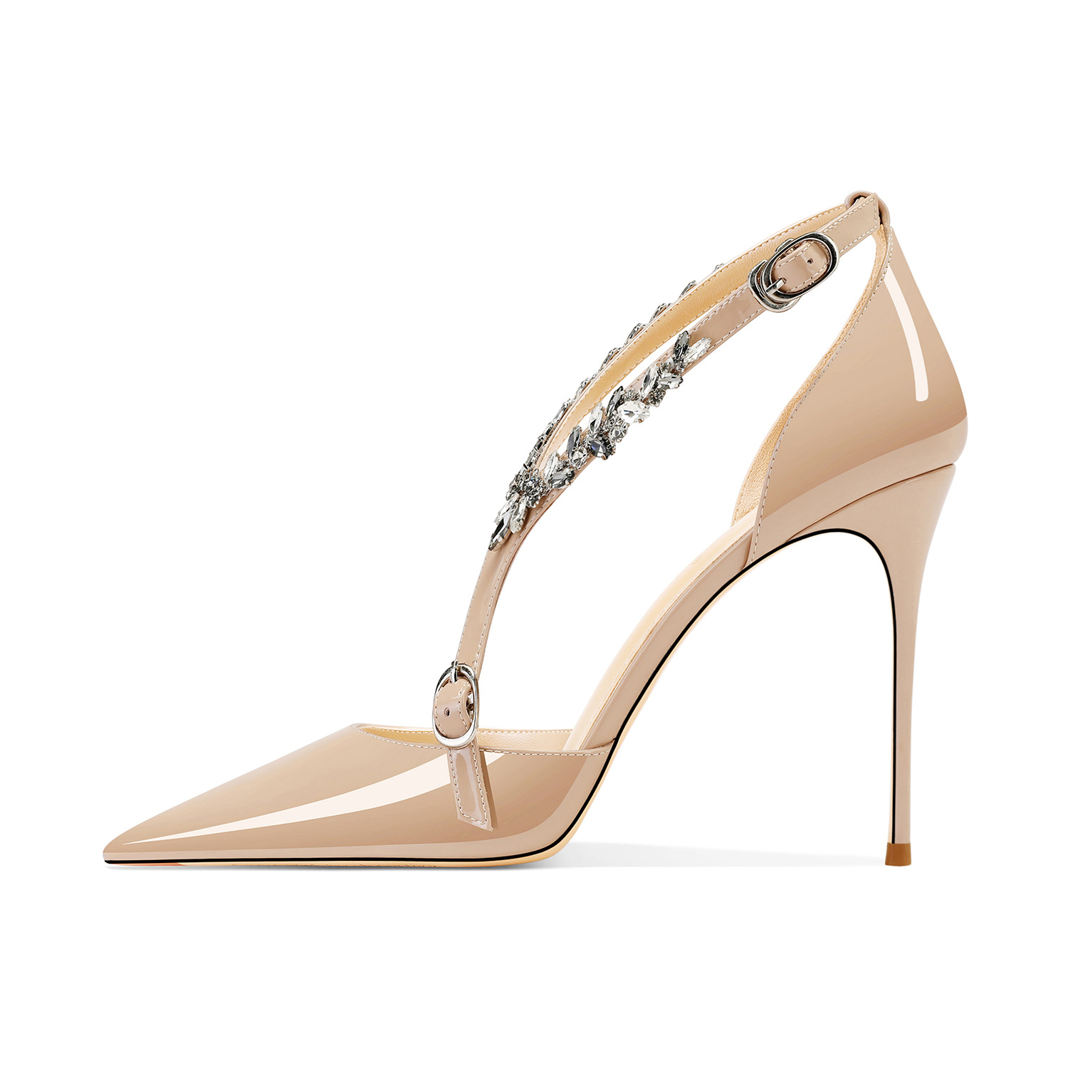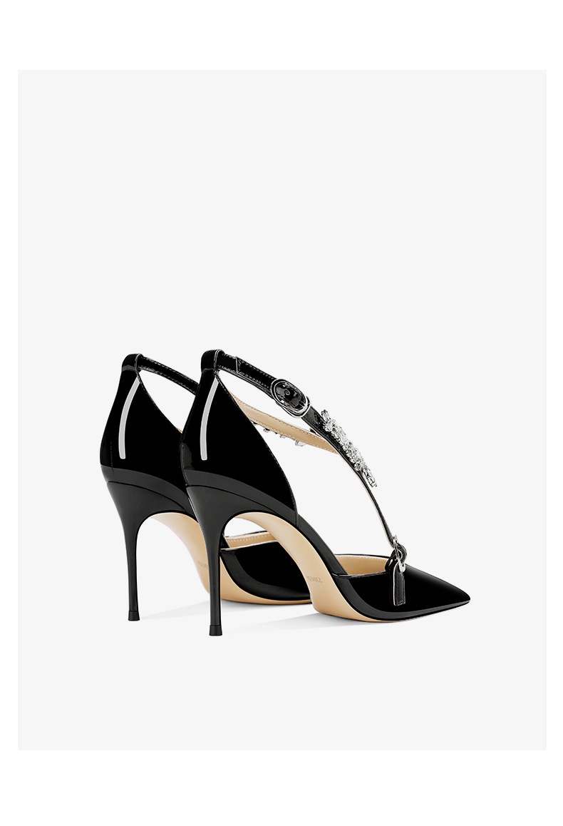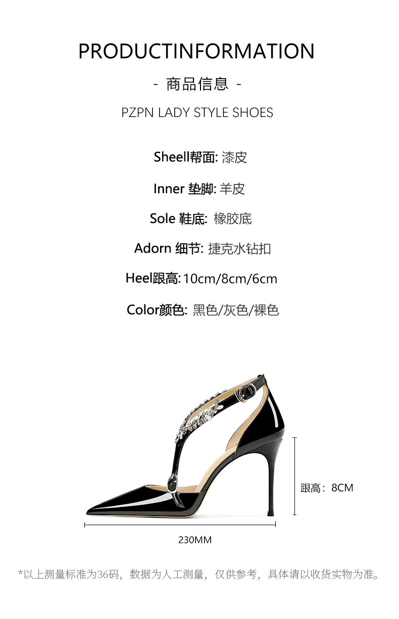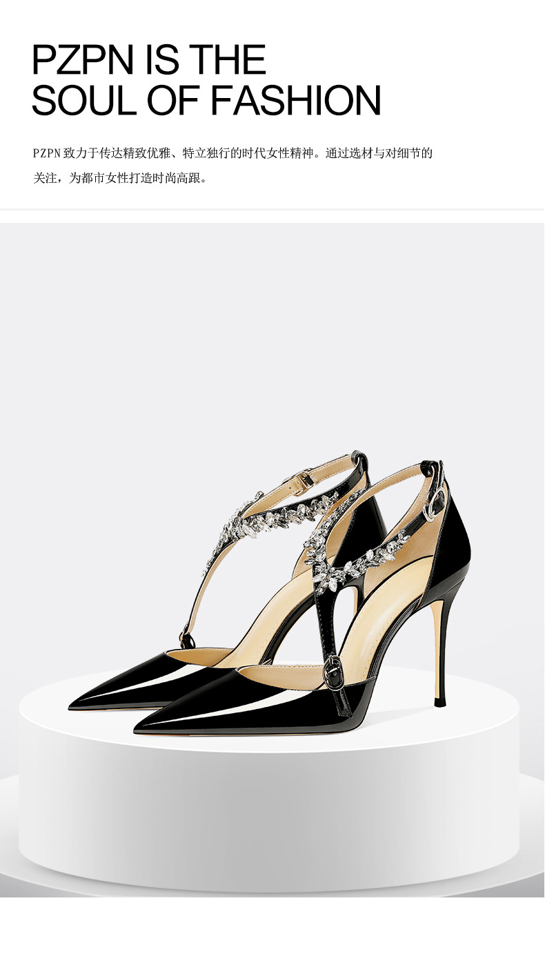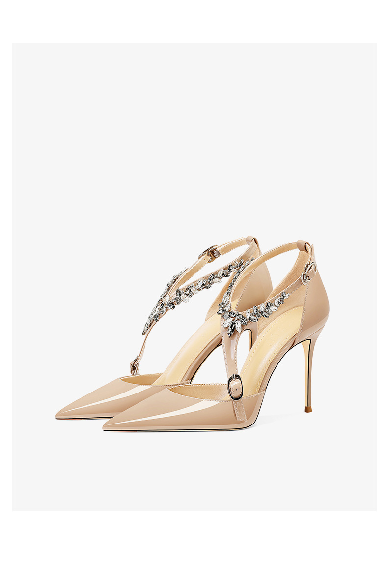 플러스 사이즈 정품 가죽 라인스톤 하이힐 슈즈 2024 새 여름 올매치 포인티드 스틸레토 힐 버클 스트랩 여성용 샌들스토어 가기
