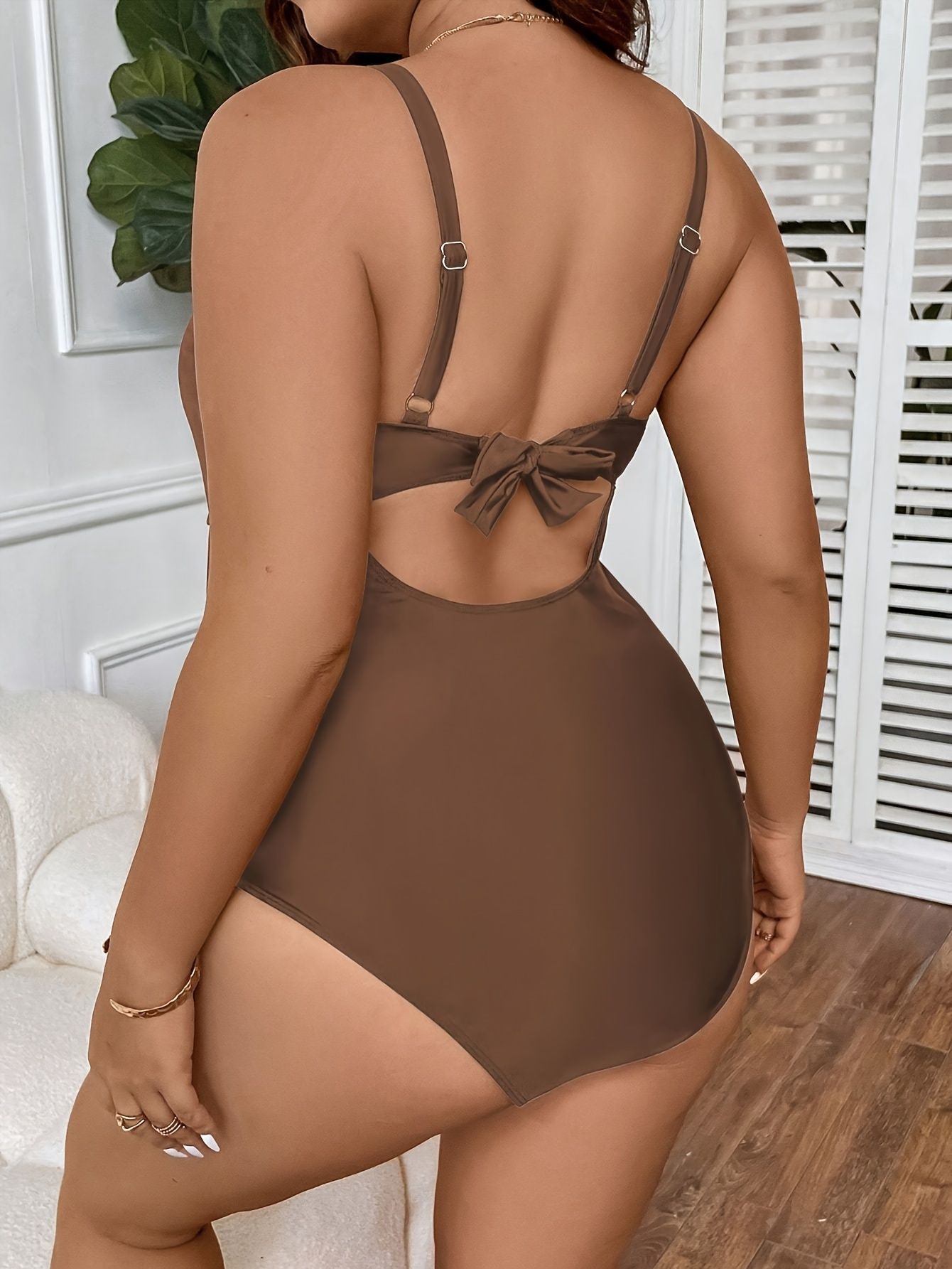 여자 플러스 사이즈 원피스 다크 브라운 주름진 금속 수영복 2024
