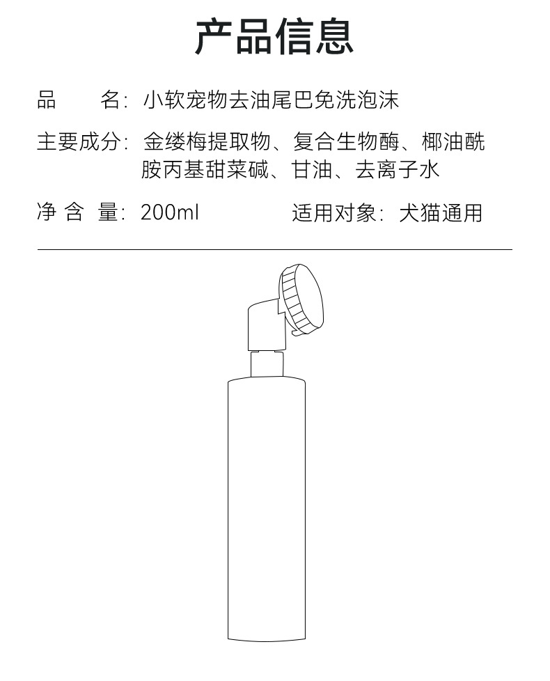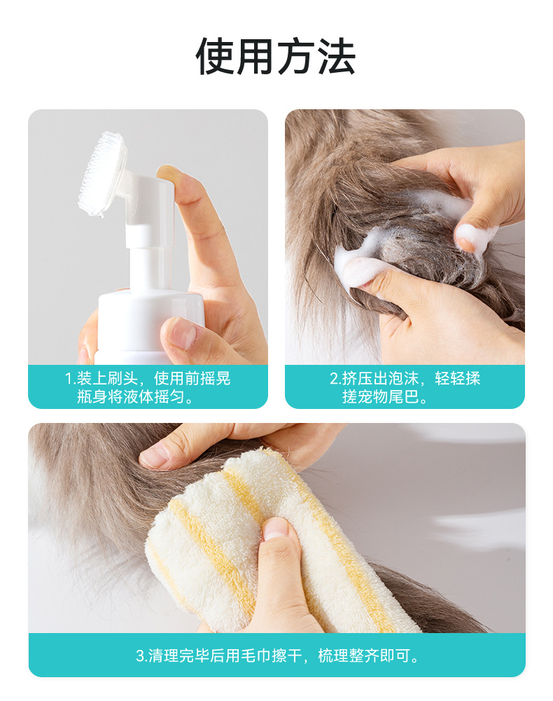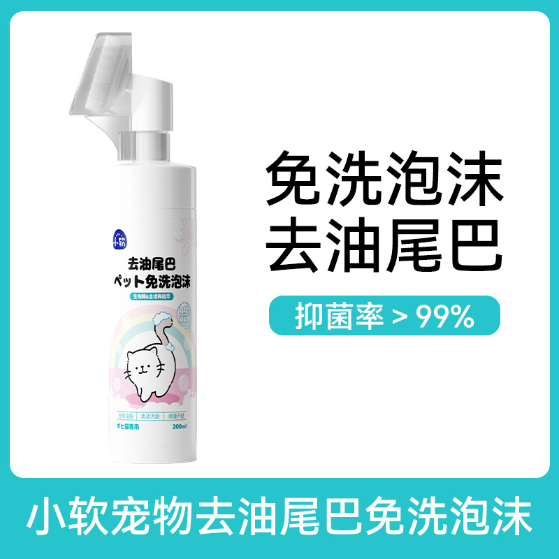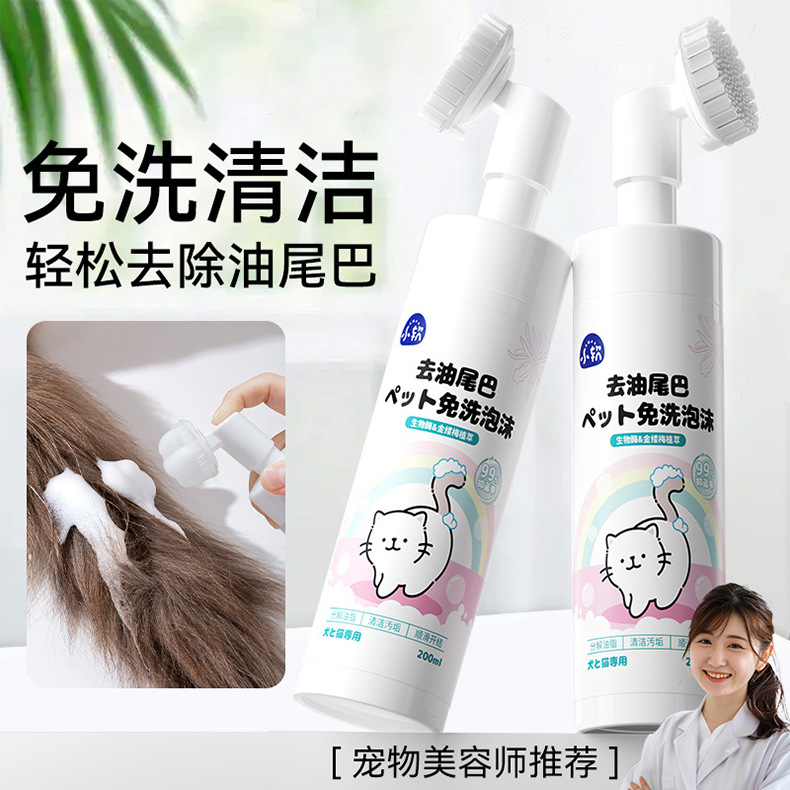 작은 부드러운 애완 동물 기름 꼬리 씻기없는 거품 200ml 고양이 청소 무스 목욕 무료 애완 동물 청소 용품