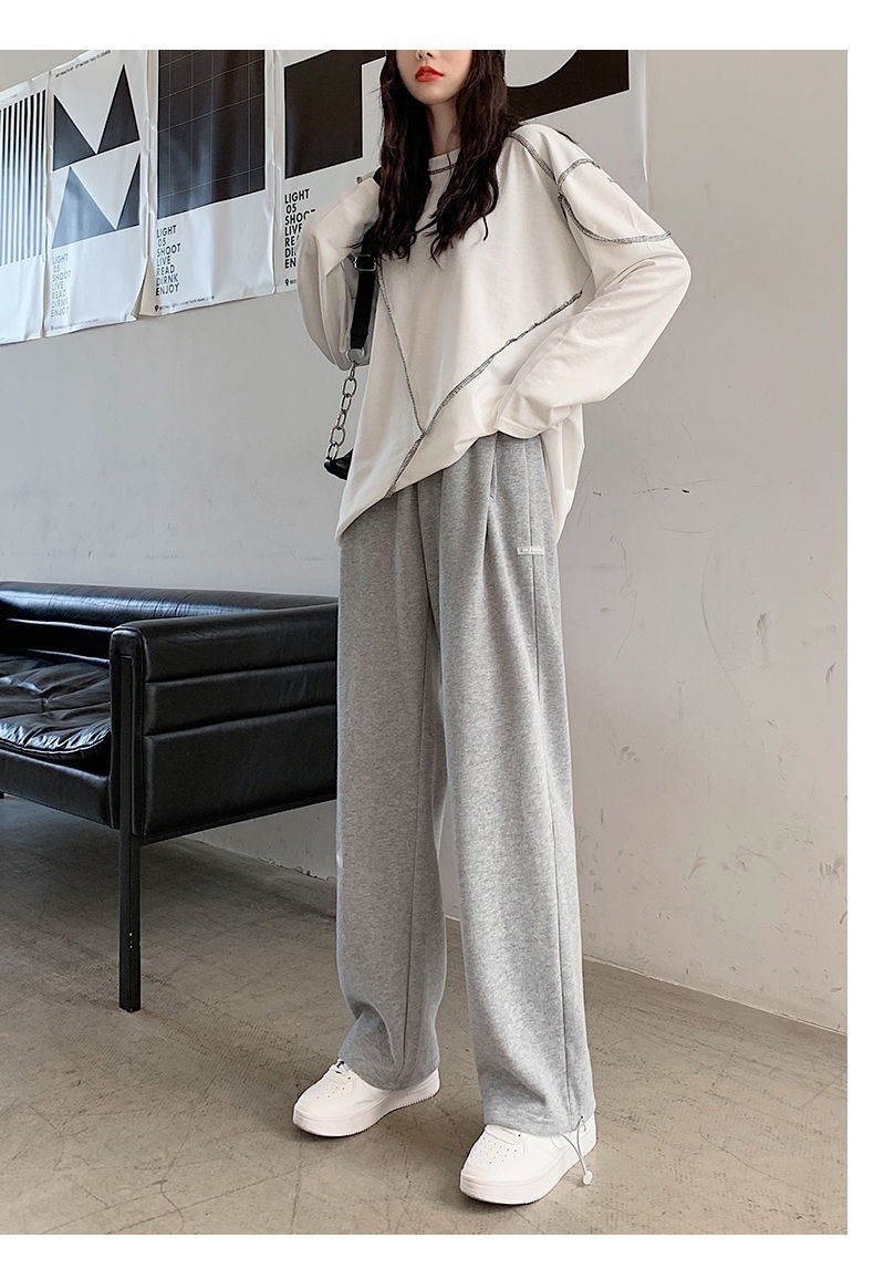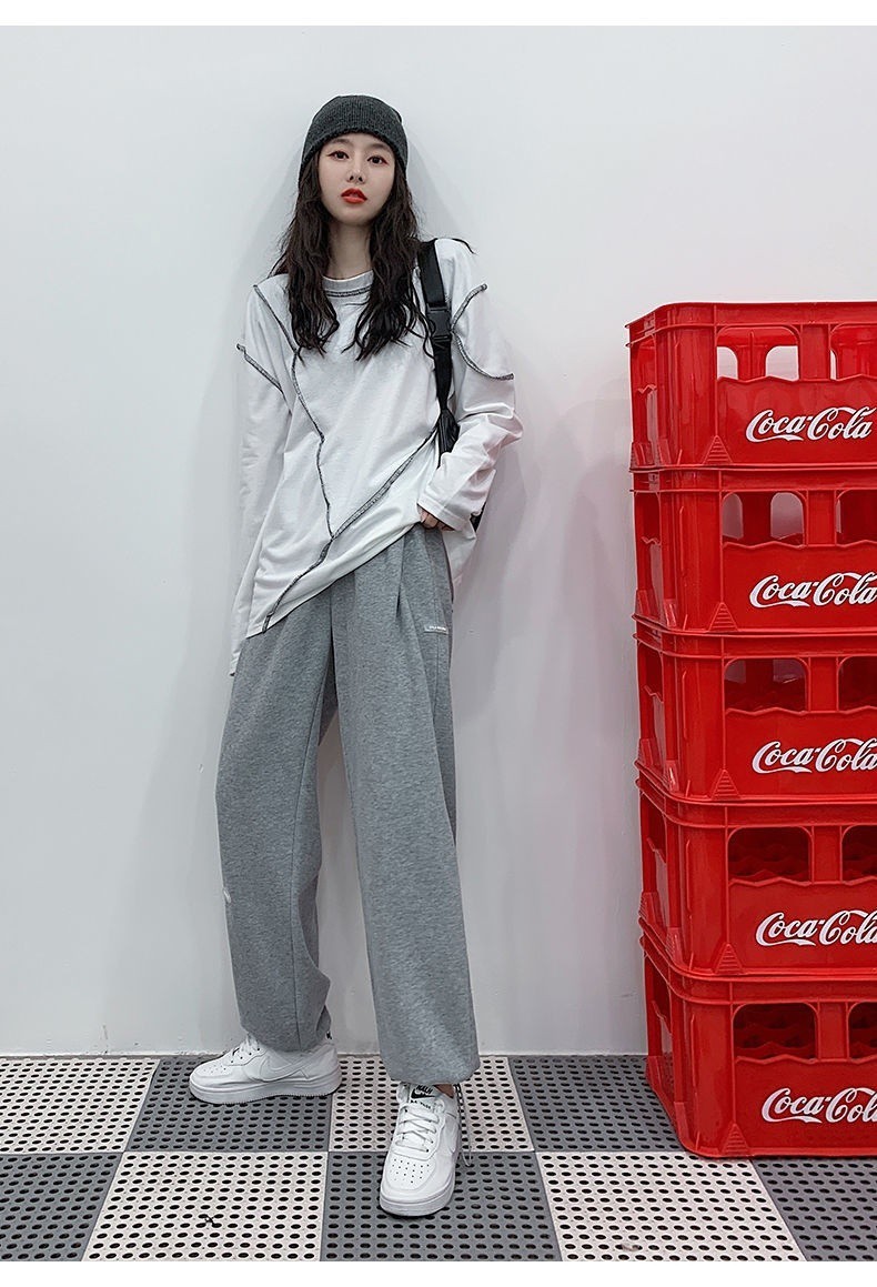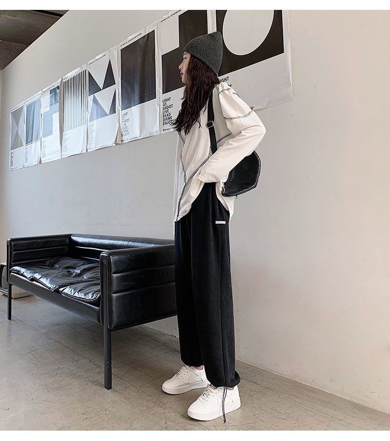 2024 봄과 여름 새로운 한국 스타일 여학생 얇은 높은 허리 느슨한 슬림 넓은 다리 스트레이트 다리 캐주얼 바지스토어 가기